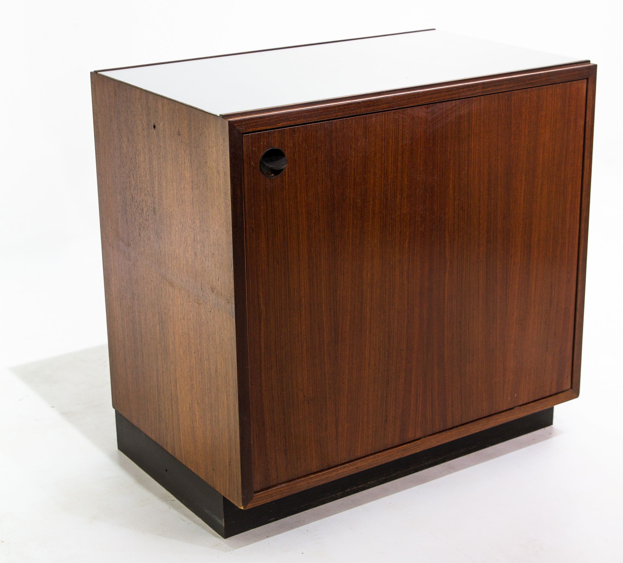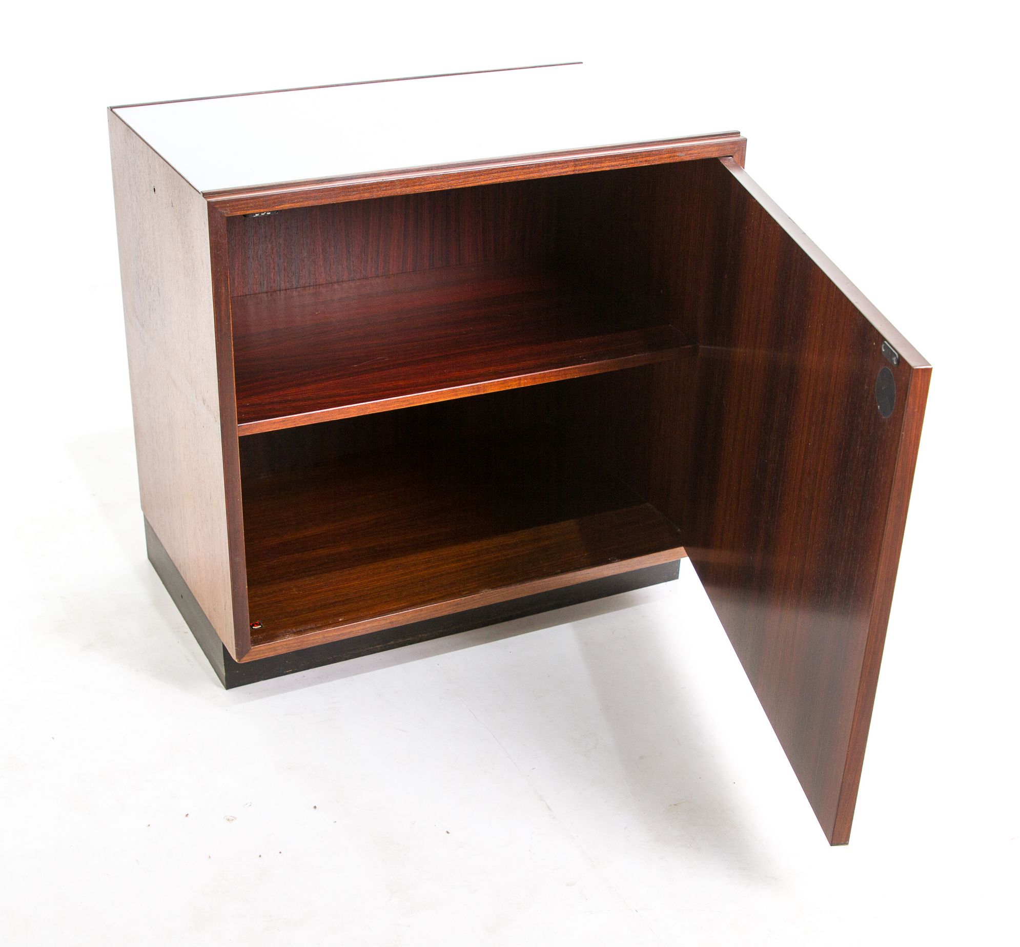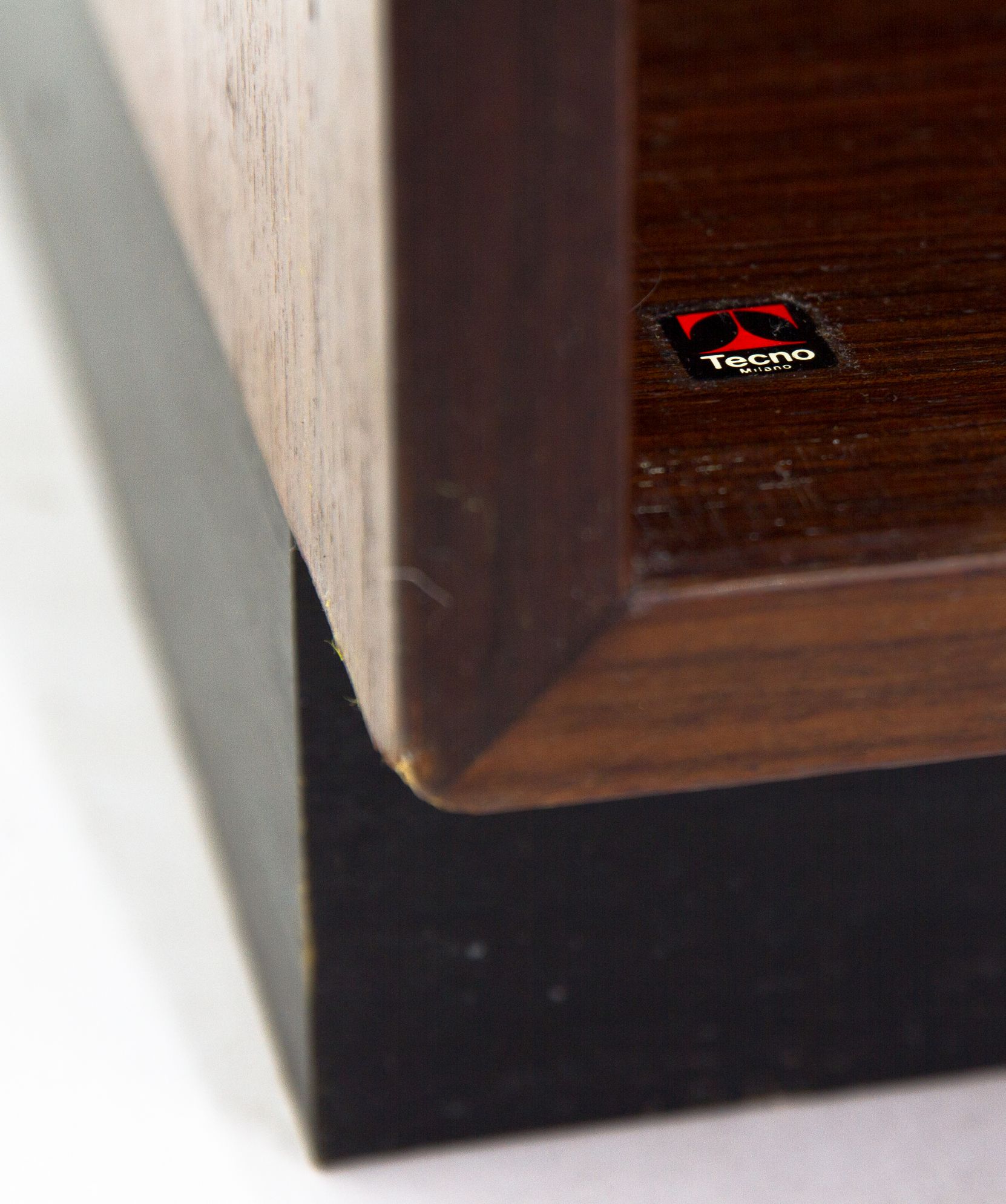 Tecno, dis. Osvaldo Borsani, serie E22, mobile contenitore impellicciato in palissandro, top in metallo. H cm 68x79x45