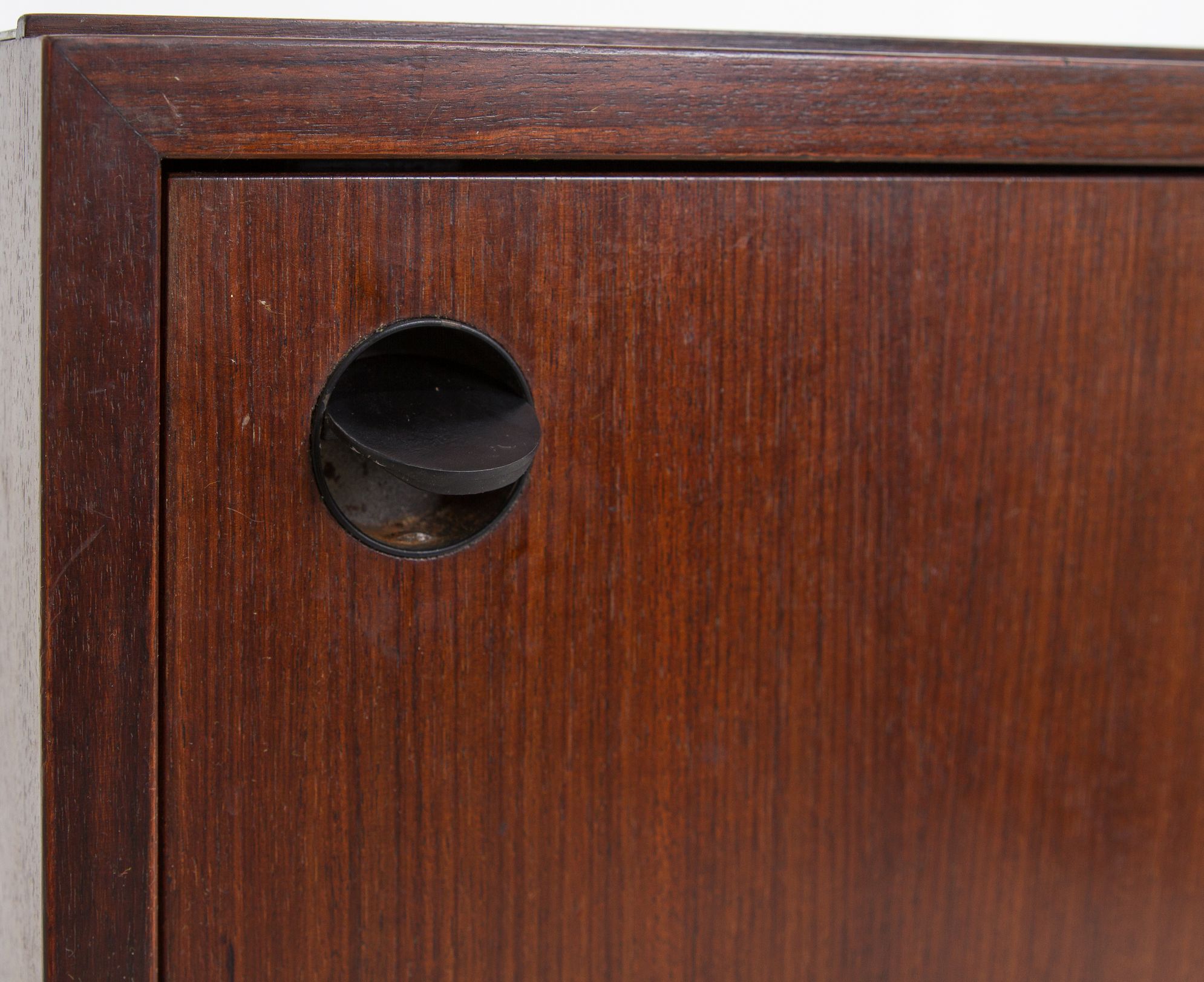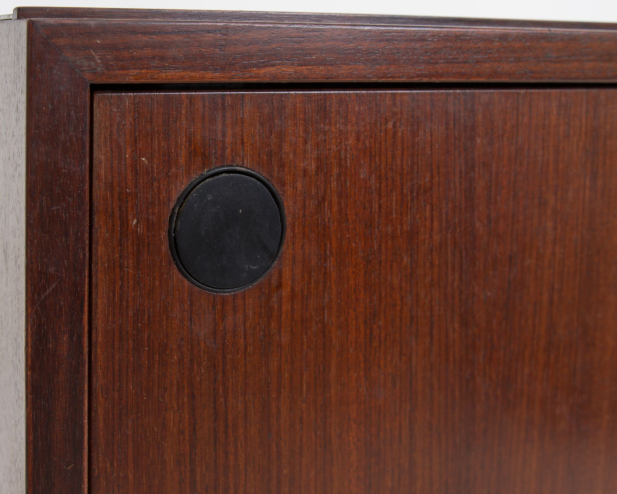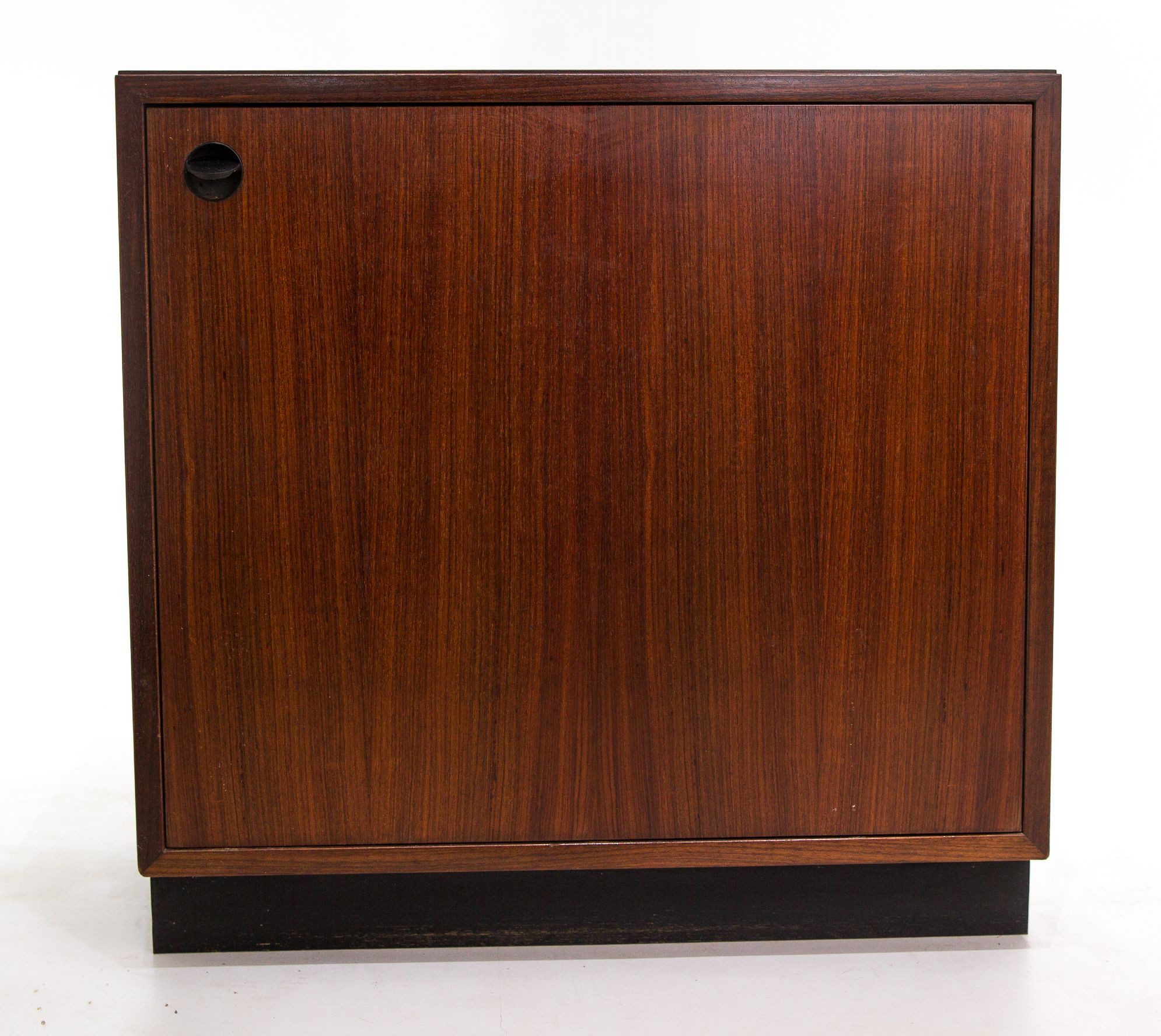 Tecno, dis. Osvaldo Borsani, serie E22, mobile contenitore impellicciato in palissandro, top in metallo. H cm 68x79x45