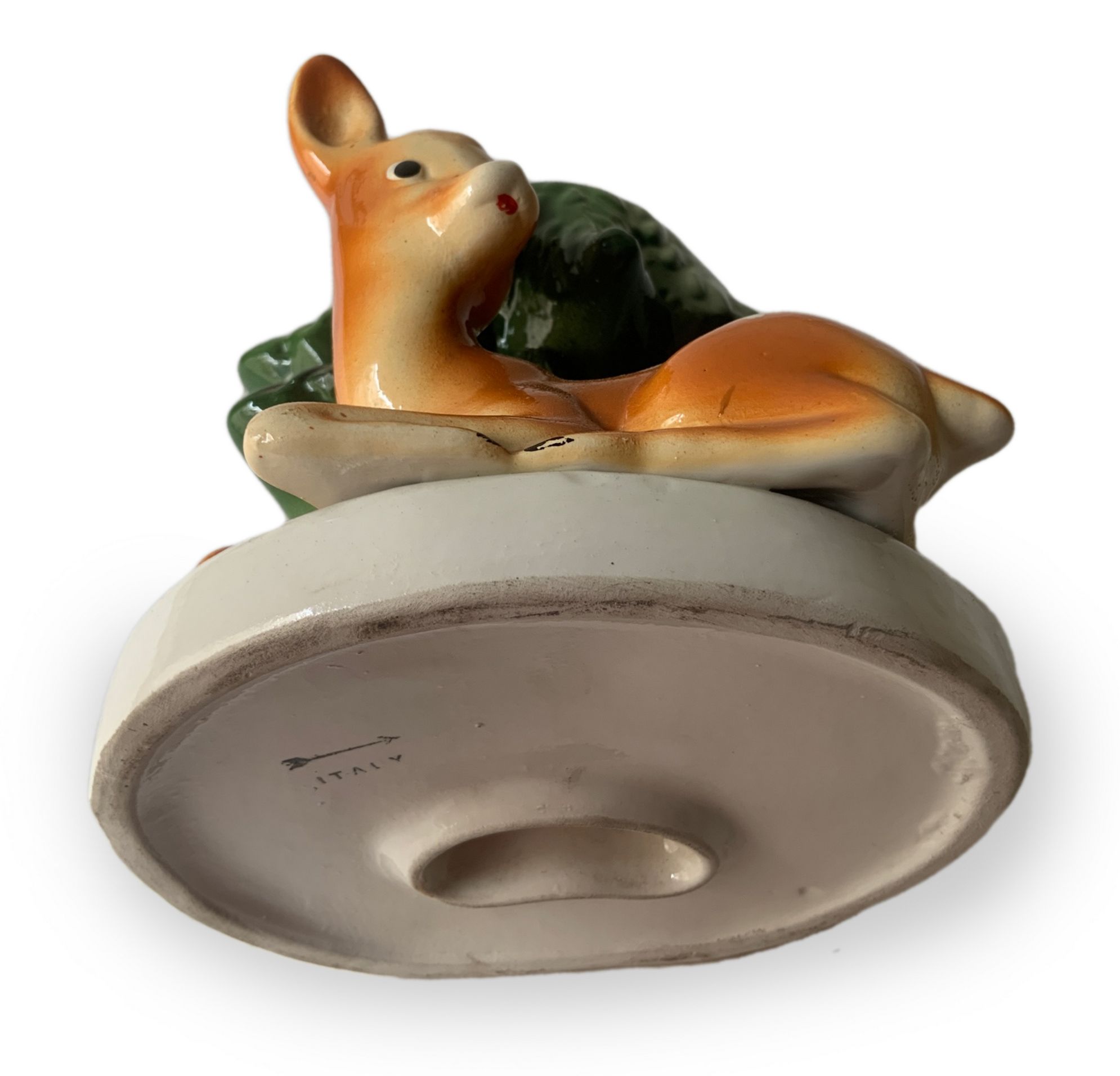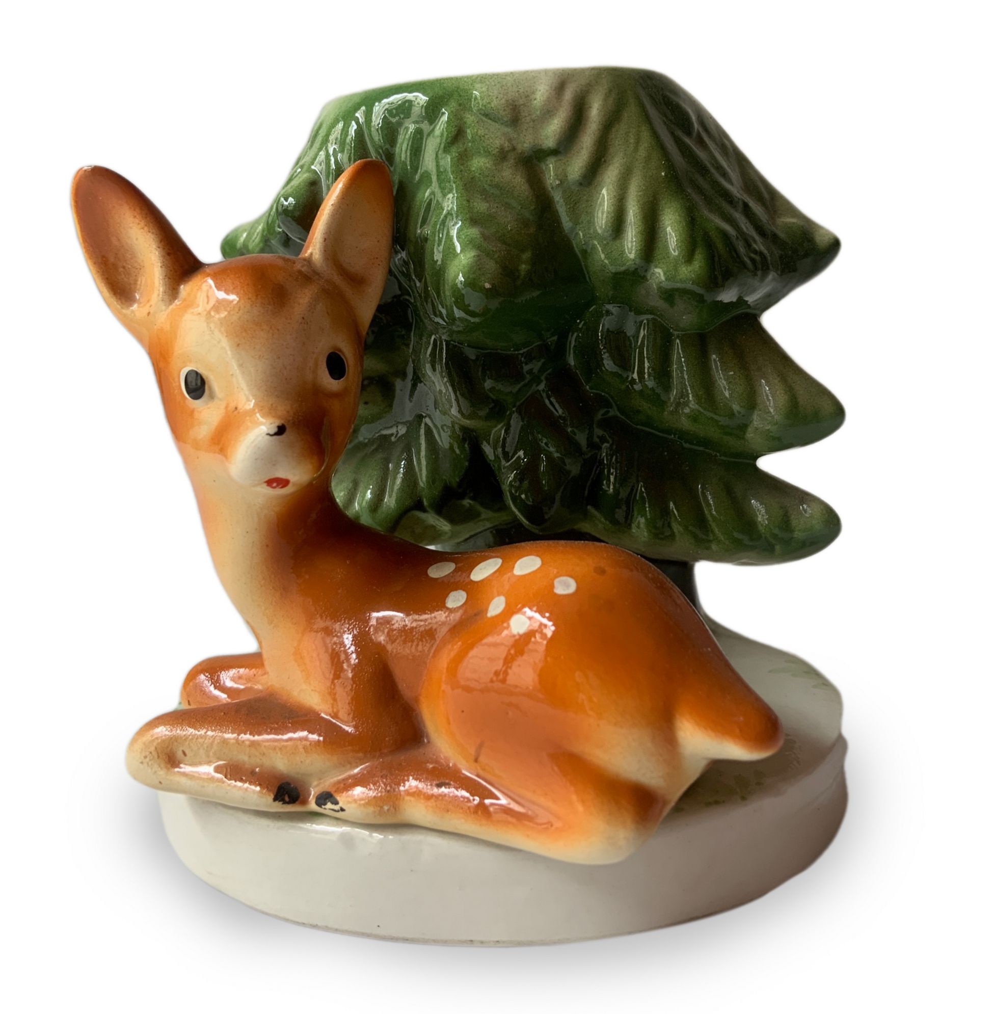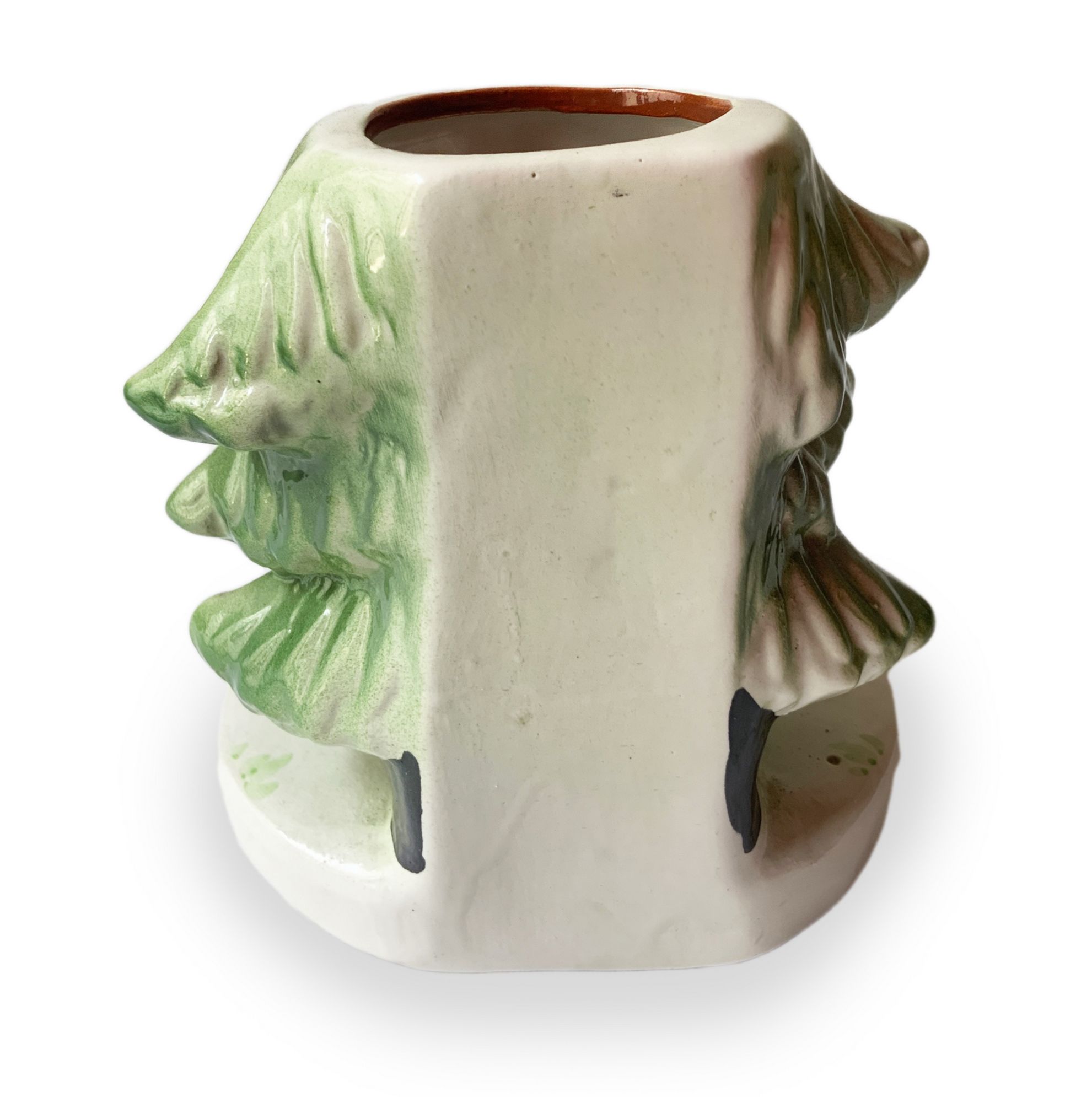Tosin Vicenza, portapenne in porcellana decorato in policromia raffigurante cervo con albero. Anni 40. Segni di uso. H cm 13X15.