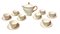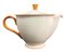 Lavenia, disegno Guido Andlovitz. Servizio da te in terraglia maiolicata composto da 8 tazzine e teiera, nei toni del crema con dettagli in arancione. Anni '30. Minime mancanze ed una incollatura
