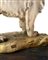 Guido Cacciapuoti, statua raffigurante leone, in ceramica maiolicata nei toni del bianco, presenza di filature. Anni 40. Cm 31x30x14