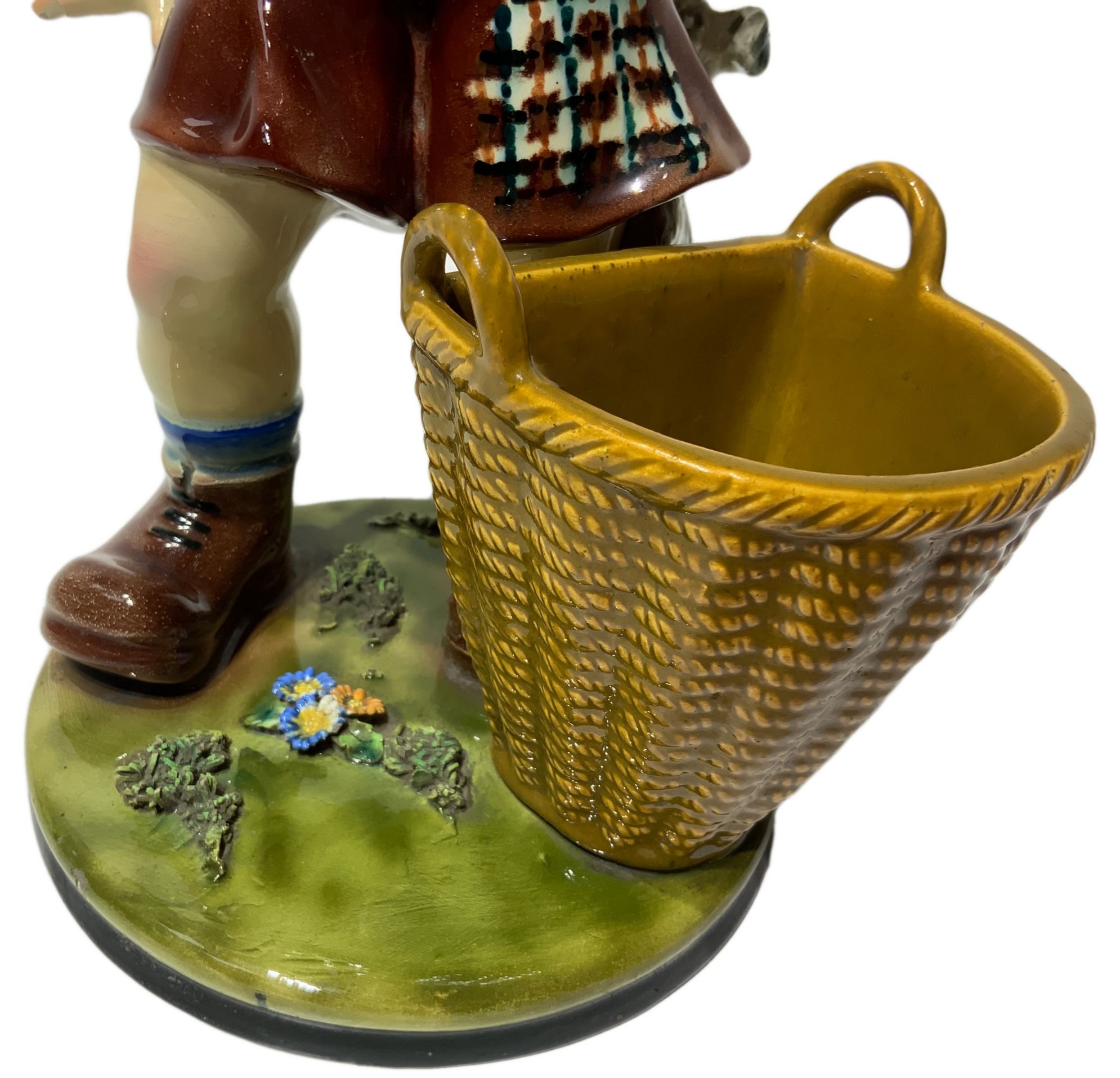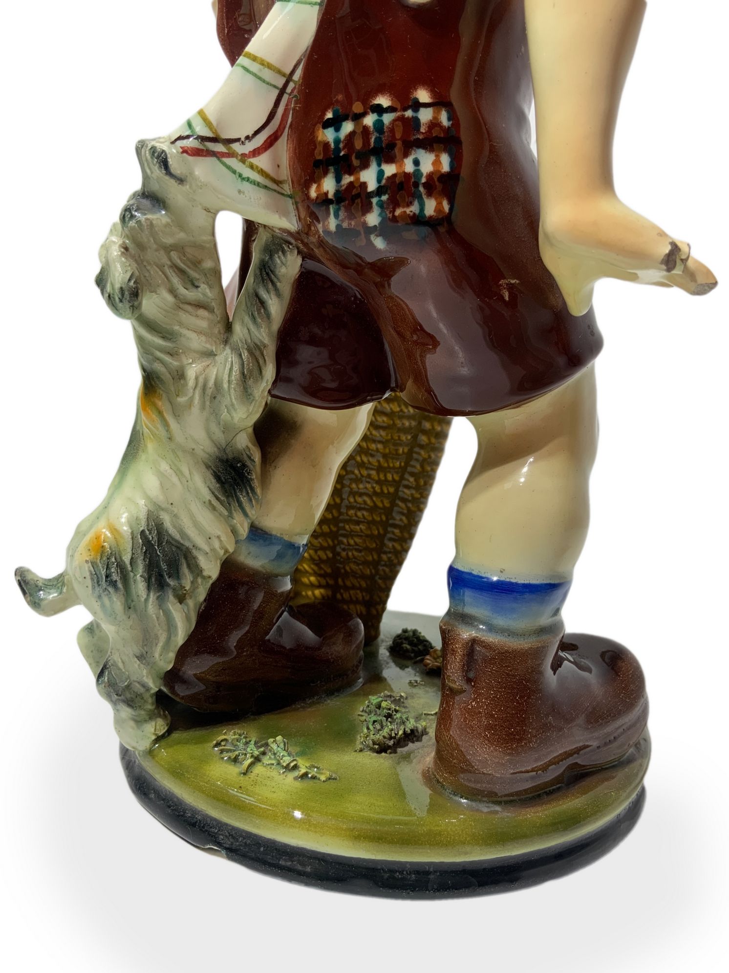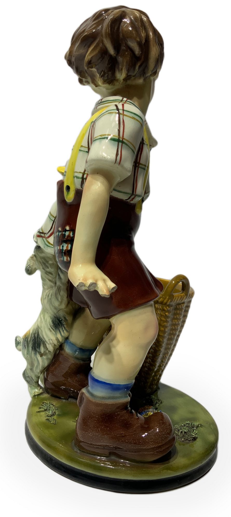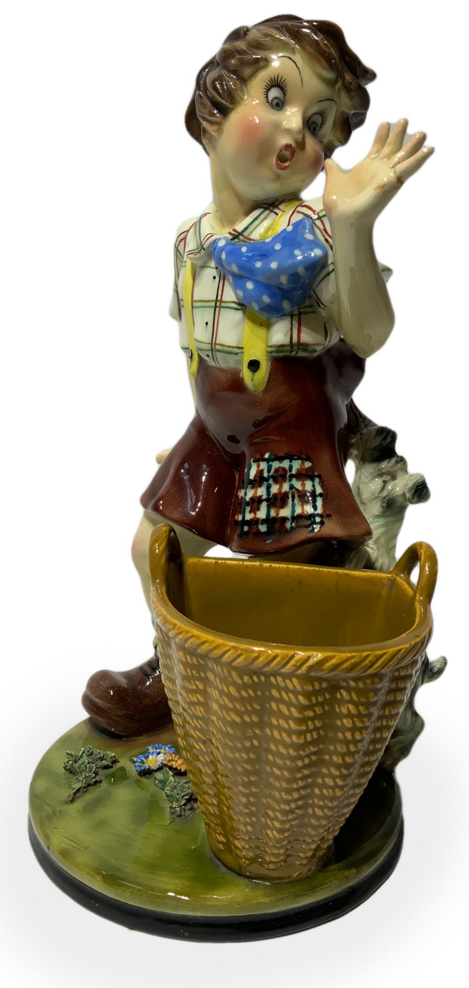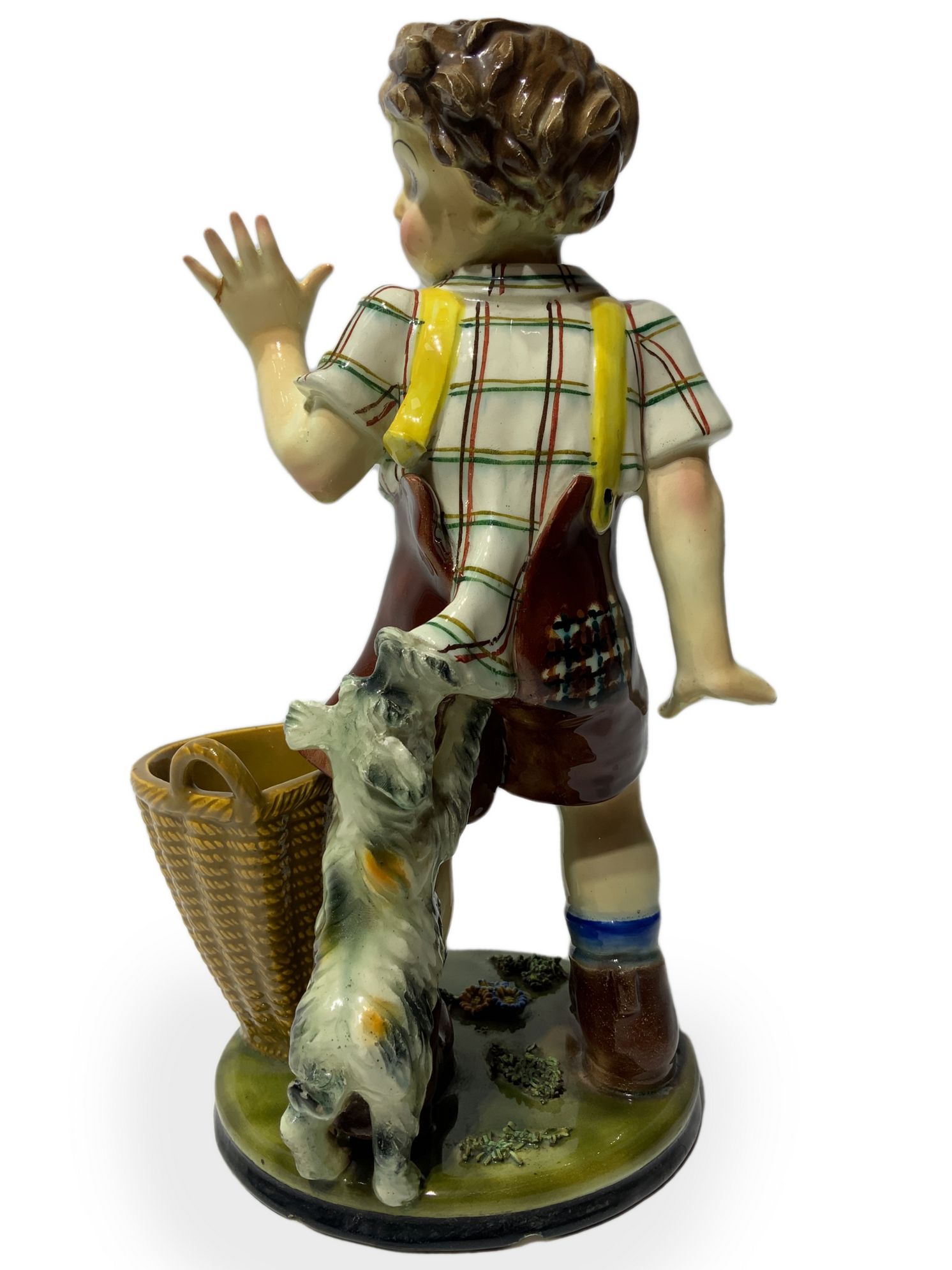 Lotto 331 | Scultura in terraglia raffigurante bambino con cane e cesto, inizi XX...