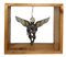 Bucci, piccola scultura in porcellana raffigurante angelo entro teca di legno. Decorata in policromia. Anni 80. Cm 21x21x7,5