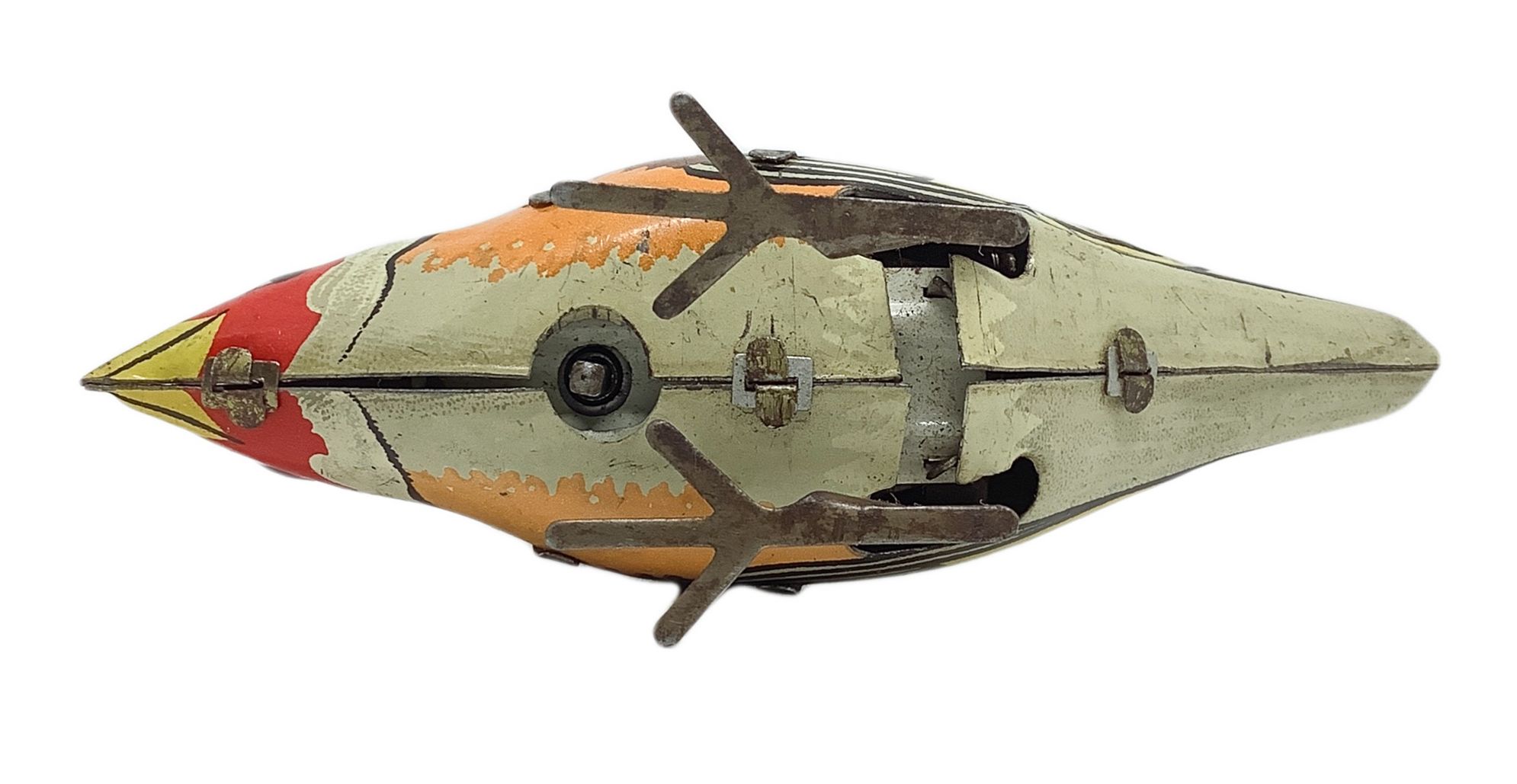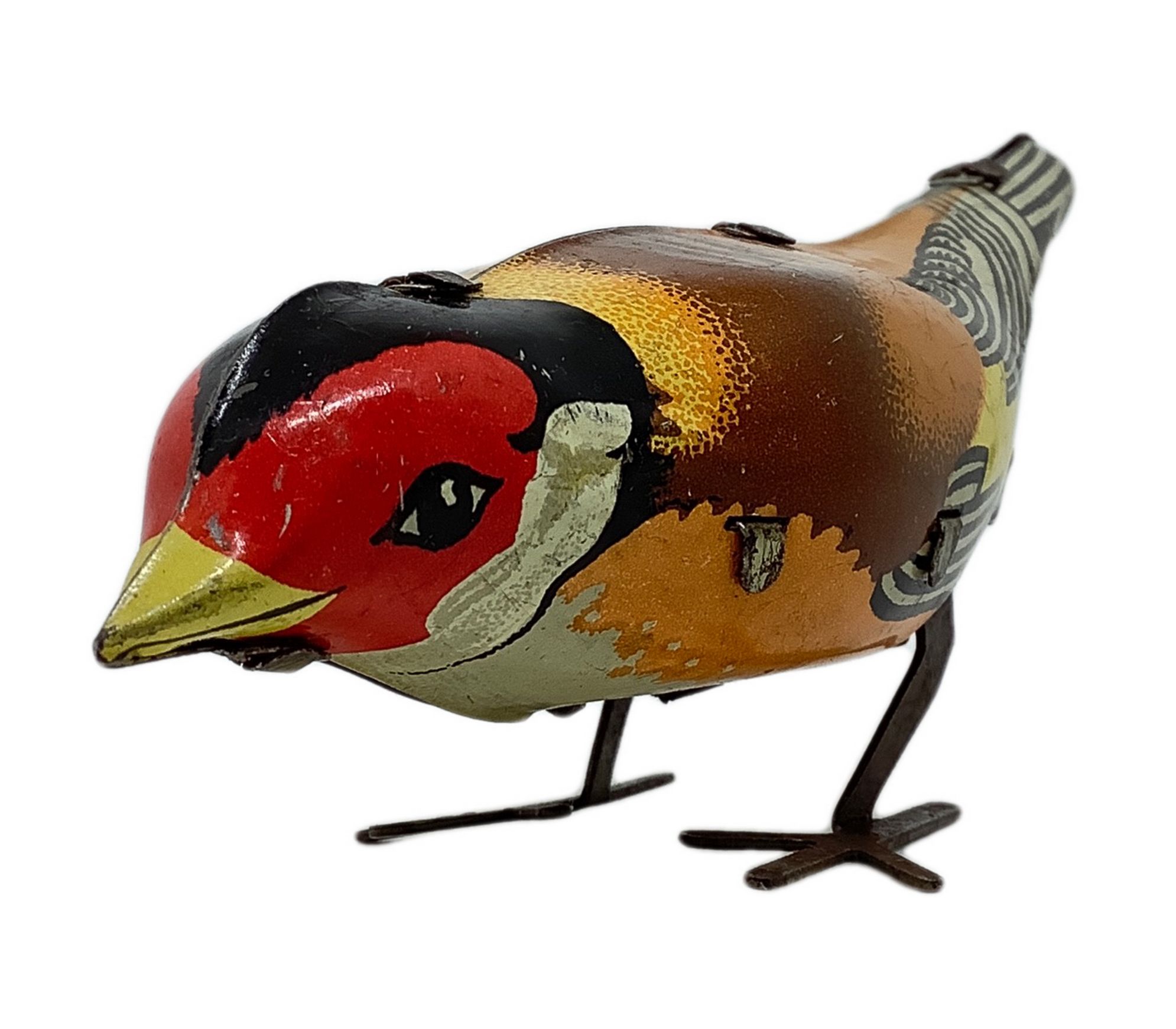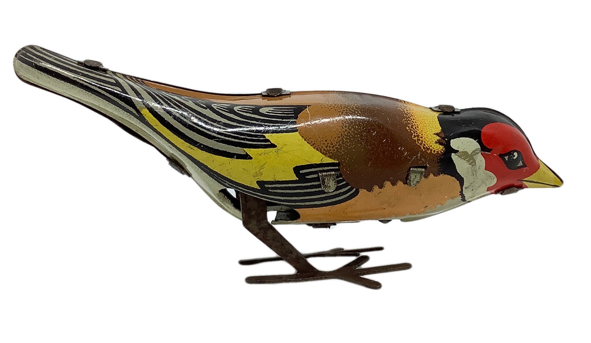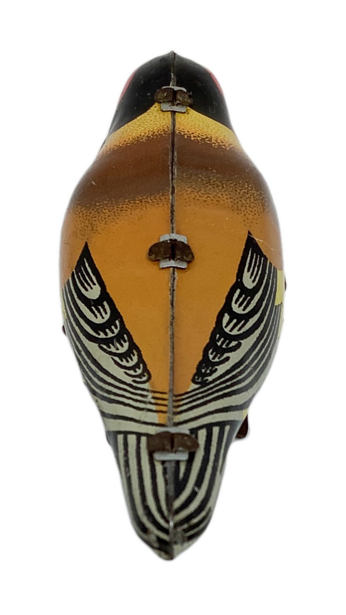 Giocattolo in latta, uccellino. Lunghezza cm 12.