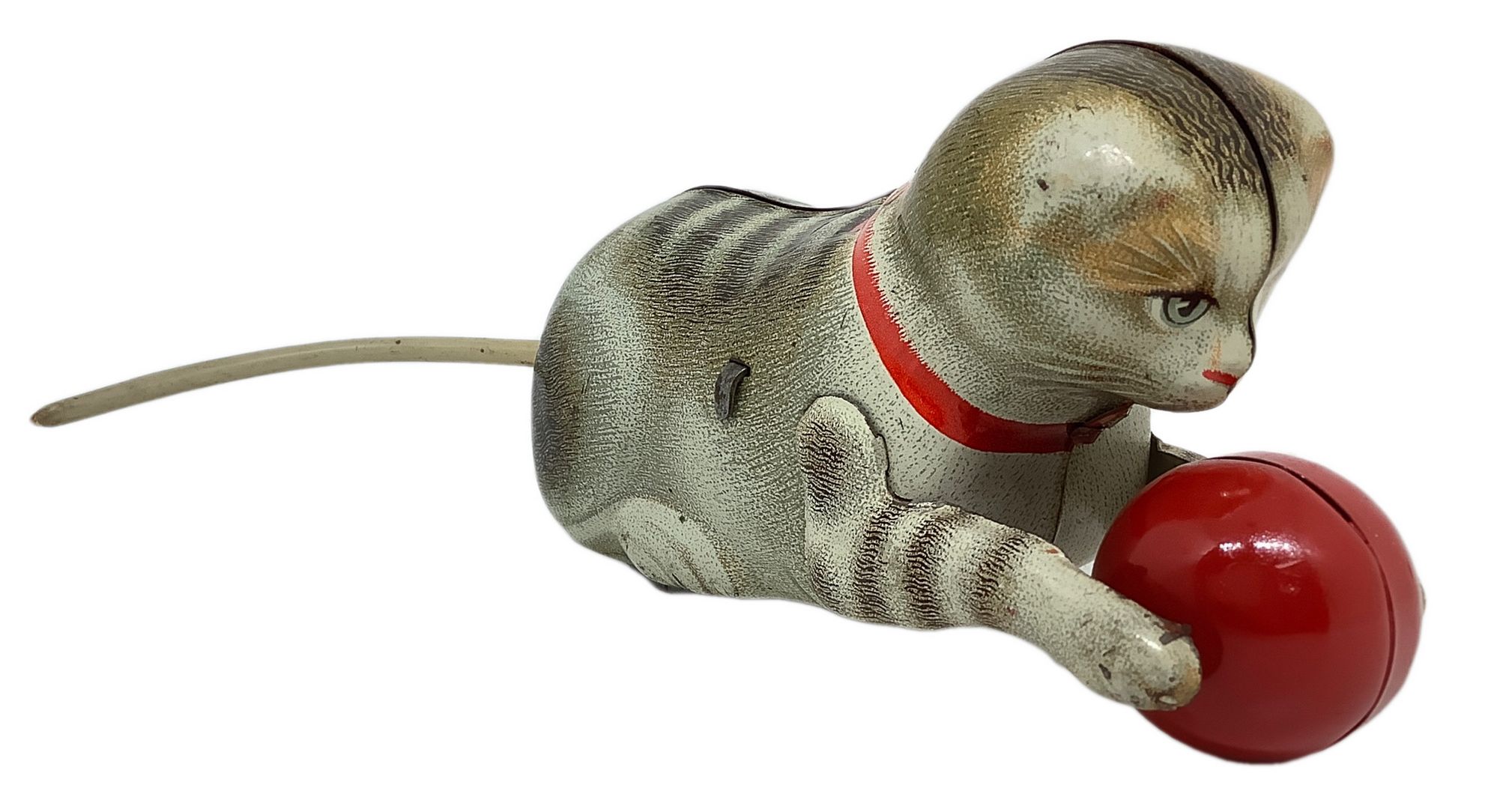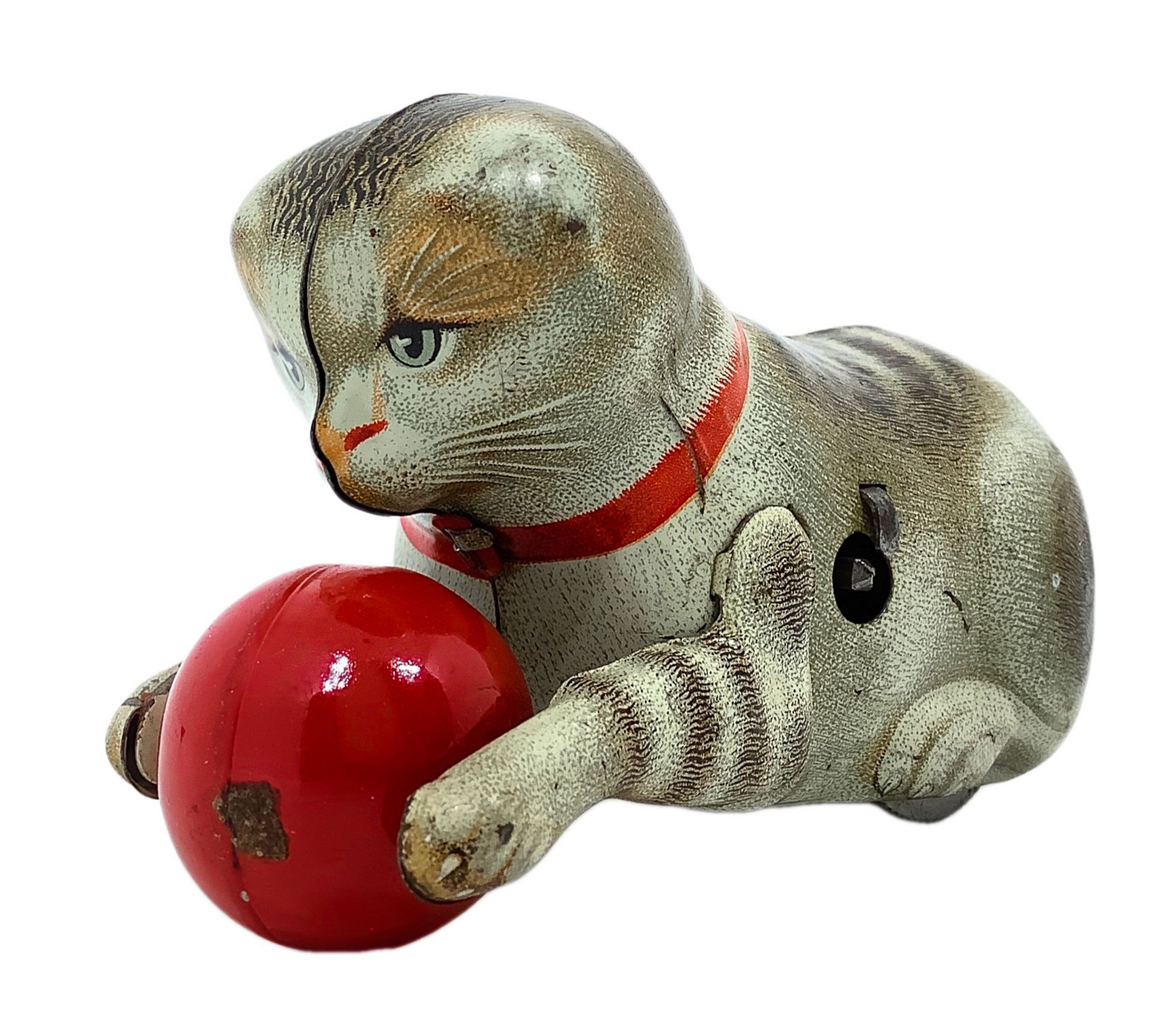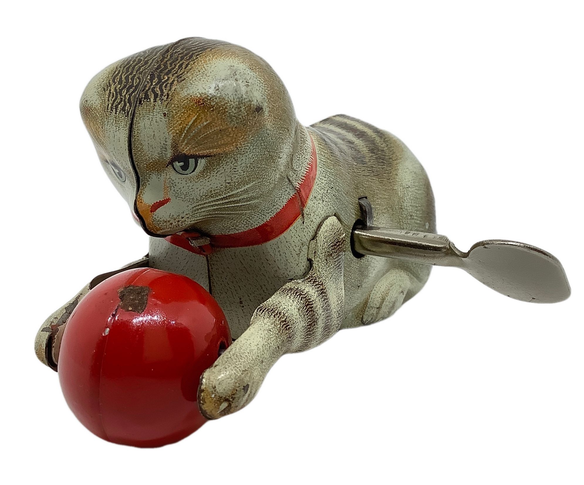 Giocattolo in latta, gattino con palla, Kohler, Germania. Non funzionante....
