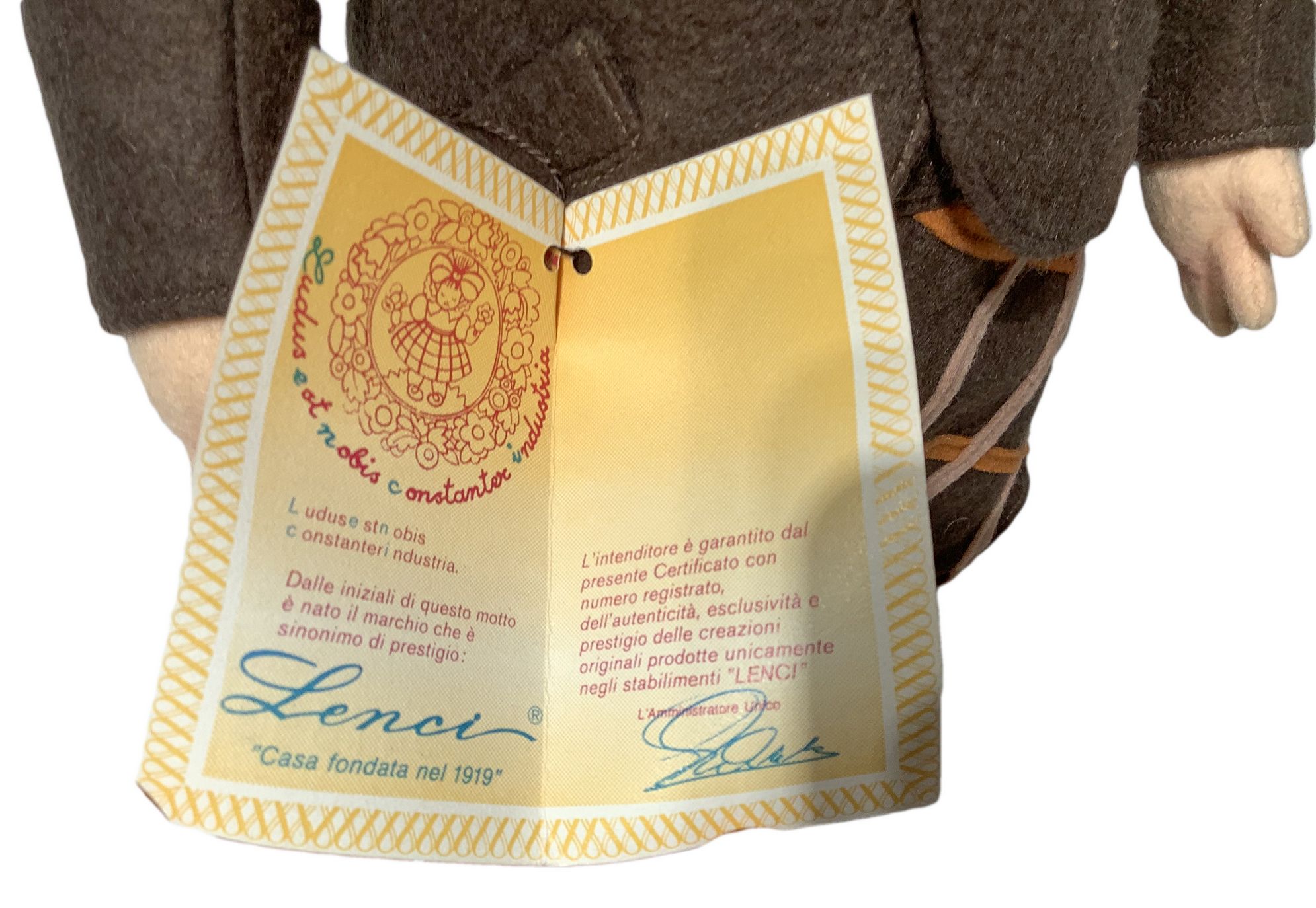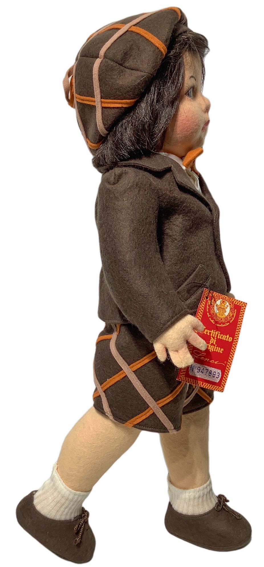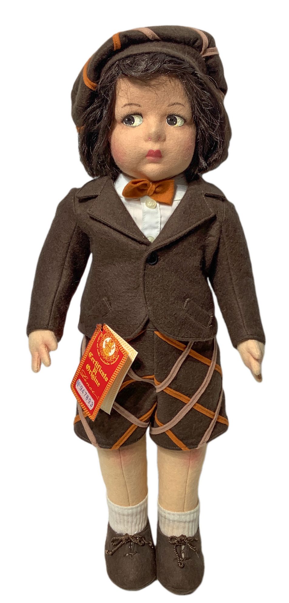 Bambola, Lenci Mario, Torino, Italia, 1979 c.ca. Fatta a mano con capelli mohair, occhi dipinti, arti rigidi, certificato. H cm 50