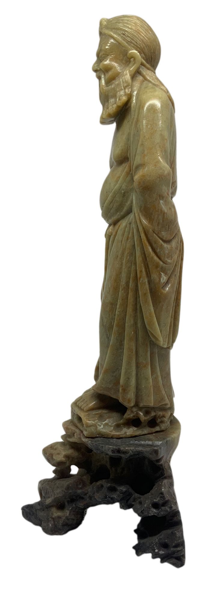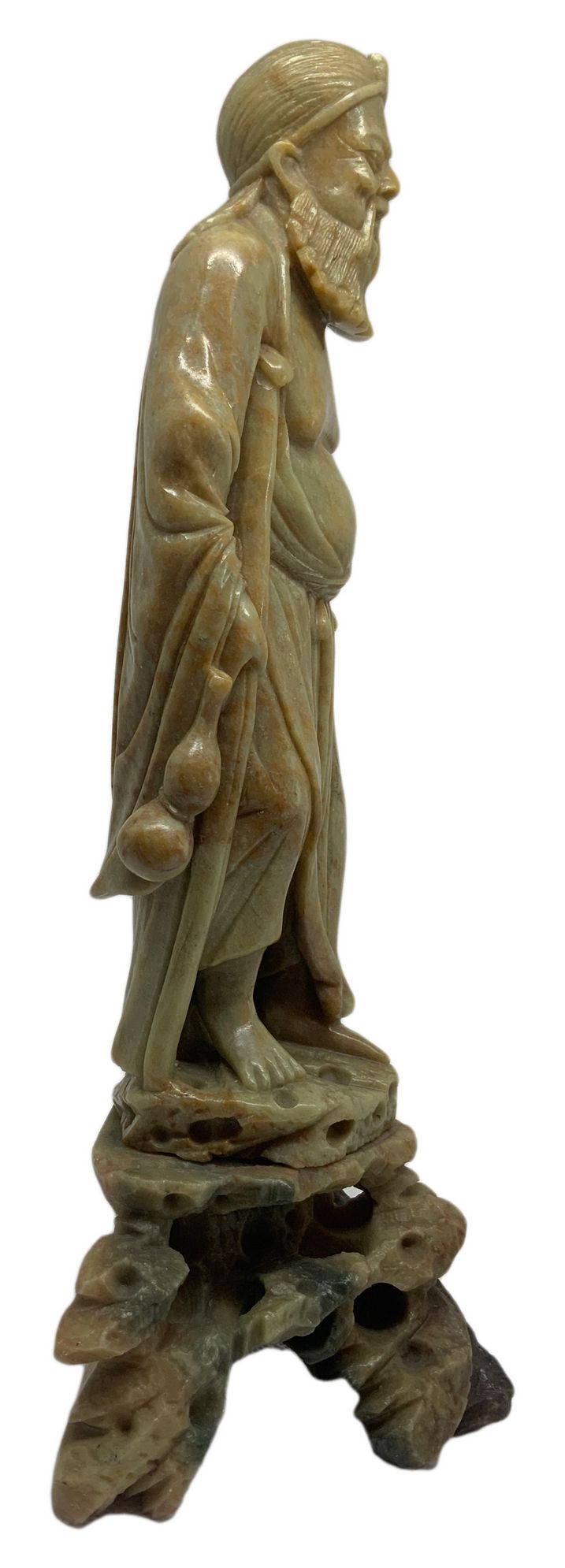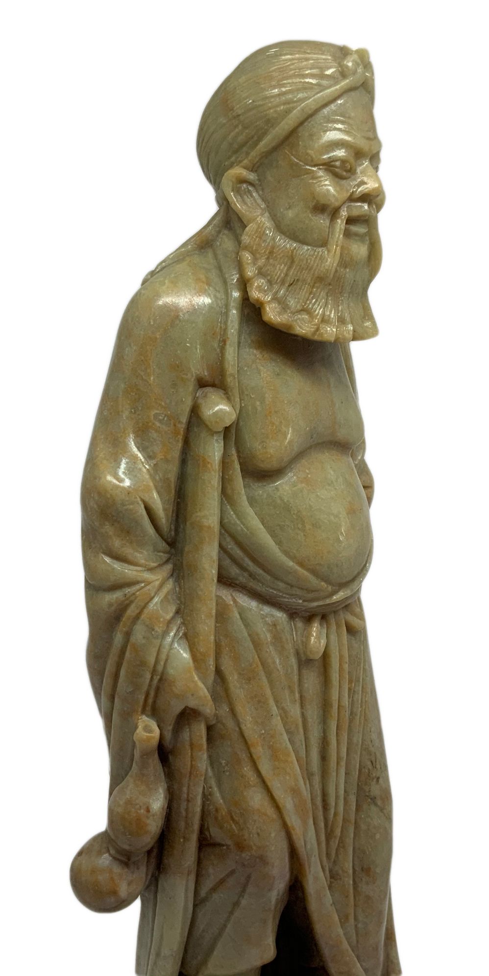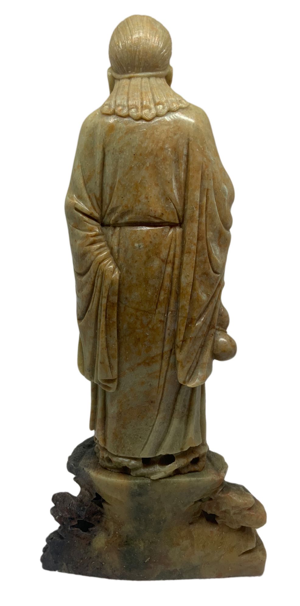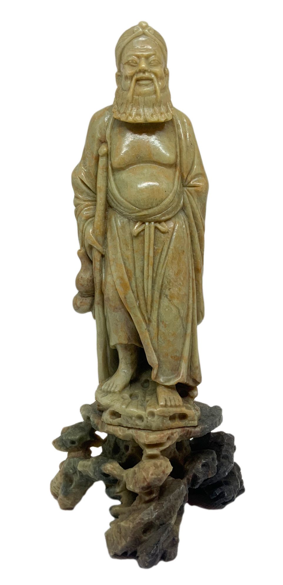 Statuetta in pietra saponarie raffigurante Jurojin dignità “Dio della vecchiaia” uno dei sette saggi. Provenienza Pechino Primi anni del ‘900. H cm 26. Larghezza cm 11.
