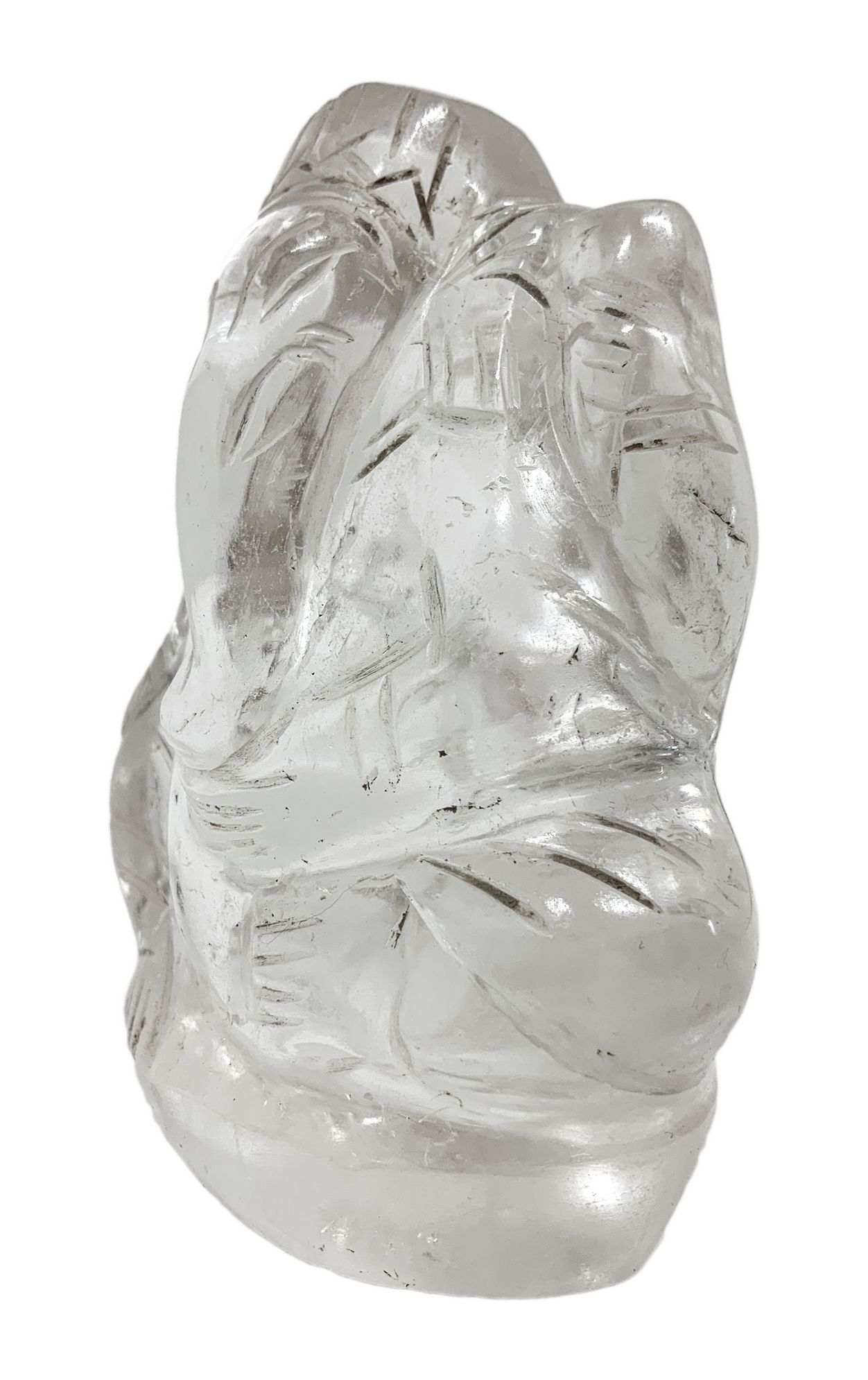 Statuetta in cristallo di rocca raffigurante “Ganesha” (Dio induista dell’amore universale). Provenienza India primi ‘900. H cm 8,5. Base cm 5.