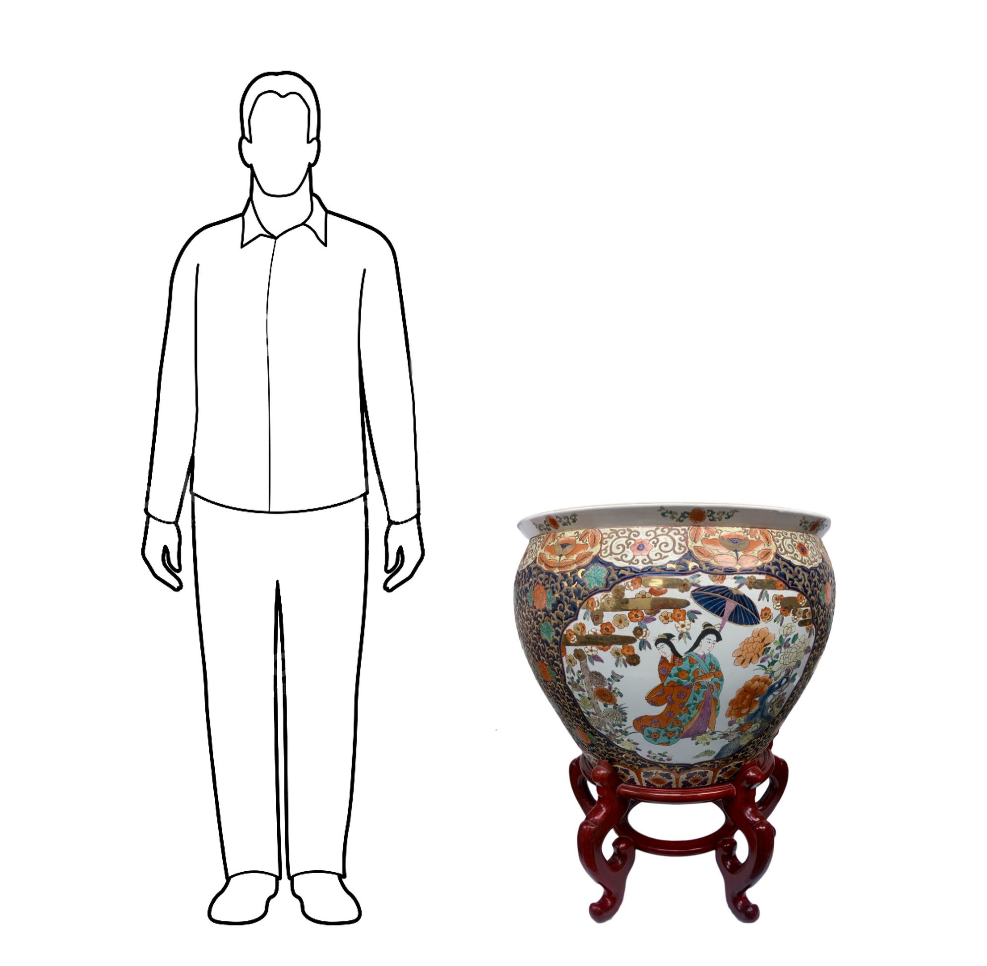 Cachepot in porcellana, Cina. H con base cm 80. H cm 50