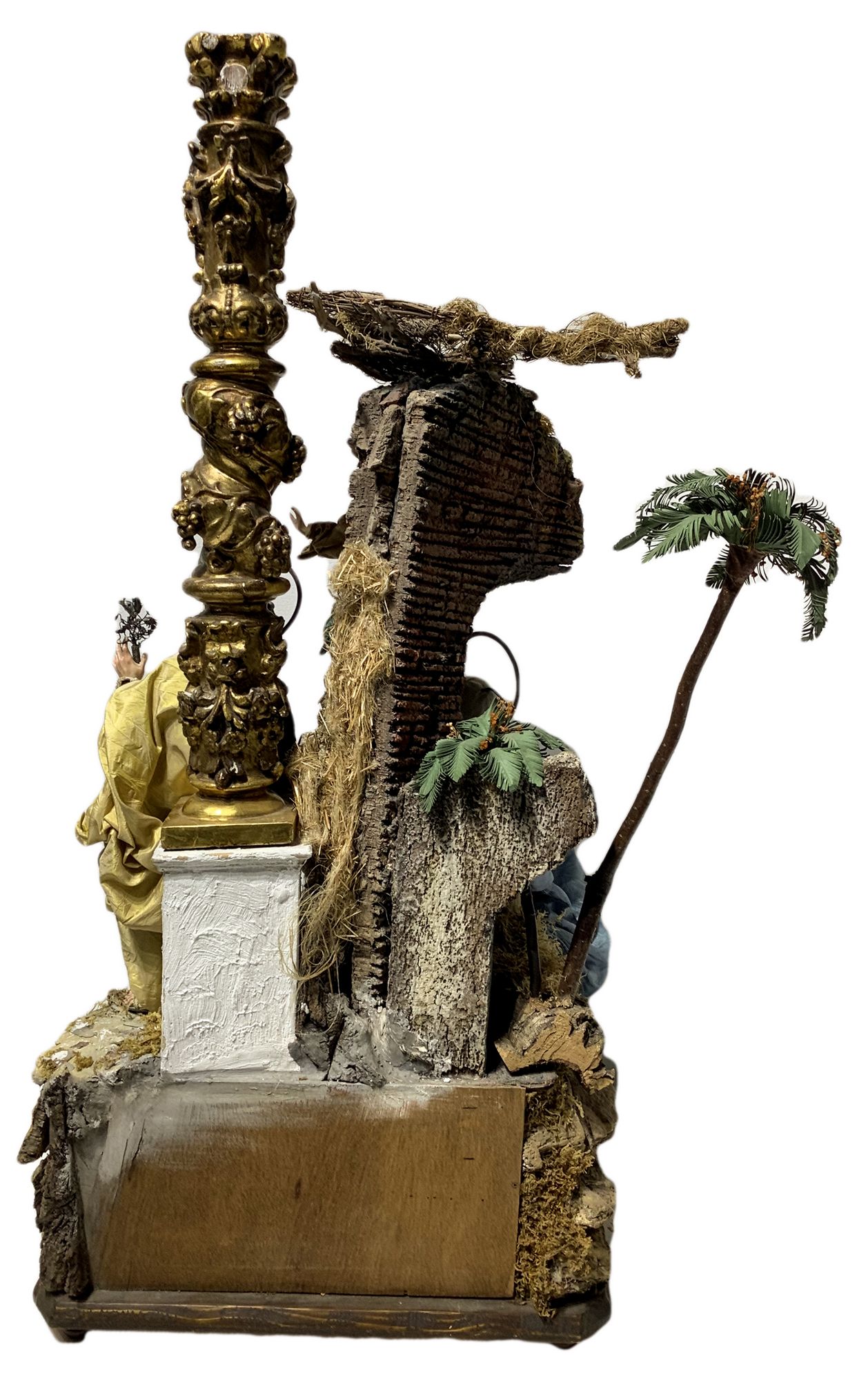 Presepe napoletano, XIX secolo, con colonna tortile, Salomonica in legno...