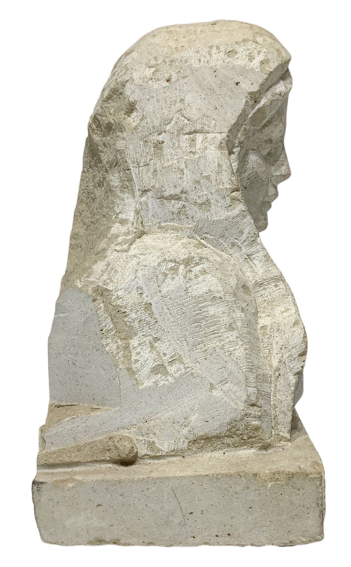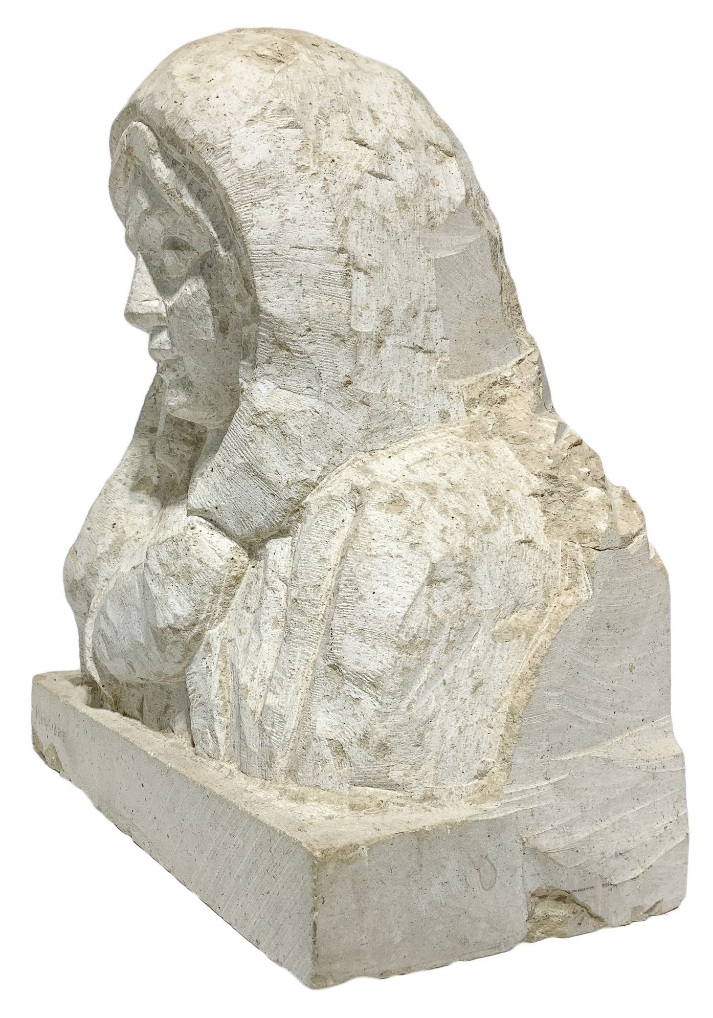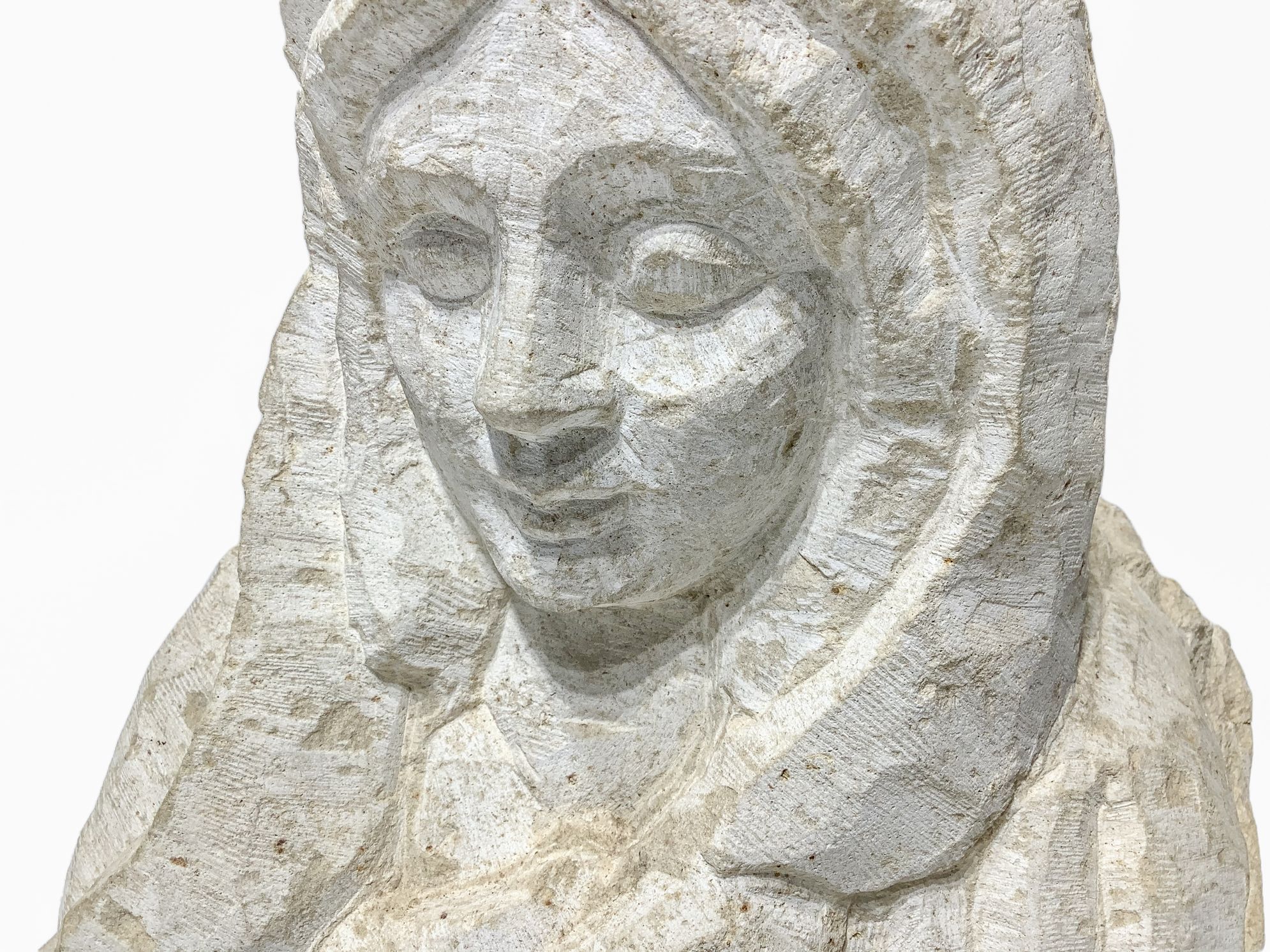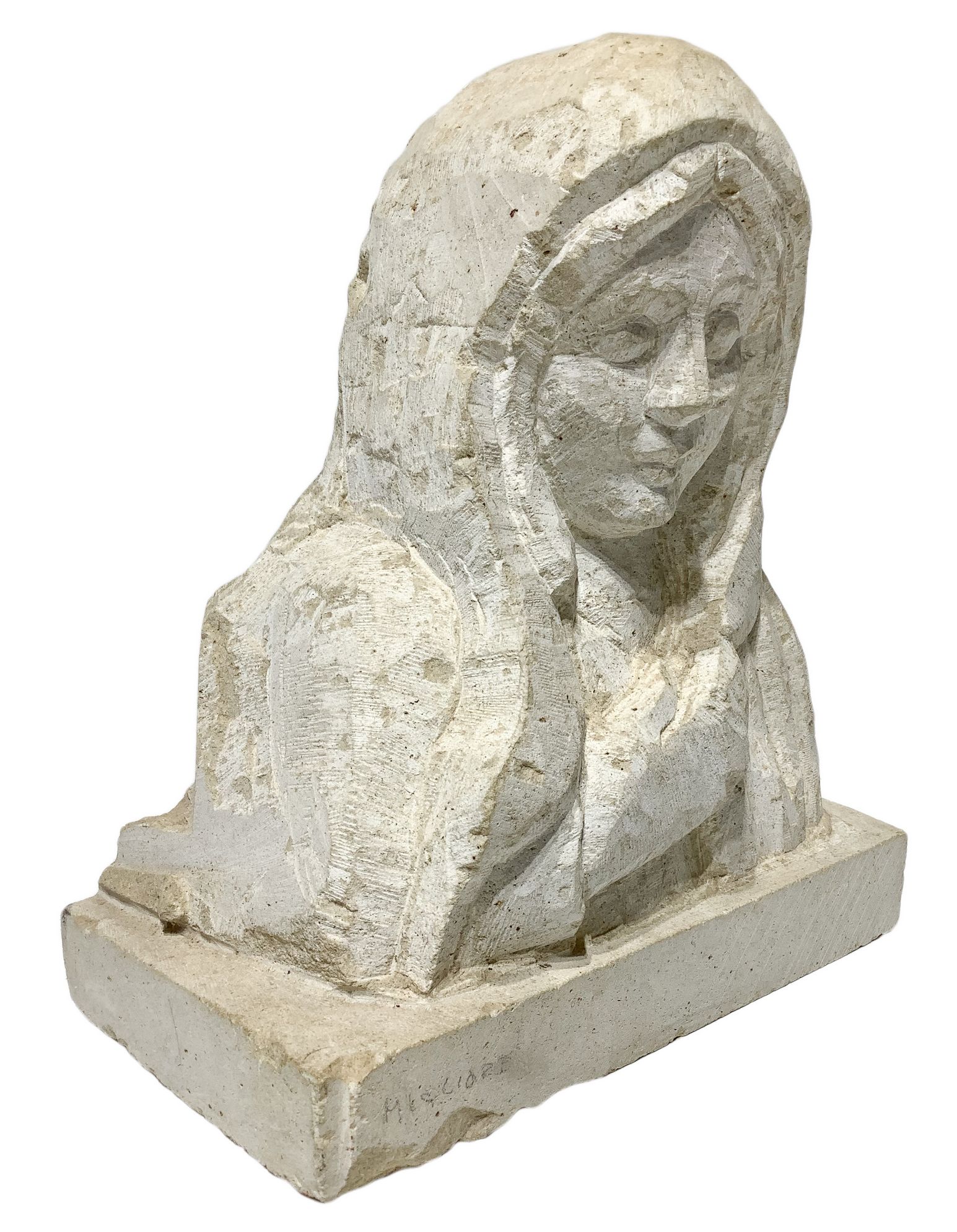 Scultura di Madonna in pietra modicana, XX secolo, scultore Migliore. H cm 30, base cm 27x16.