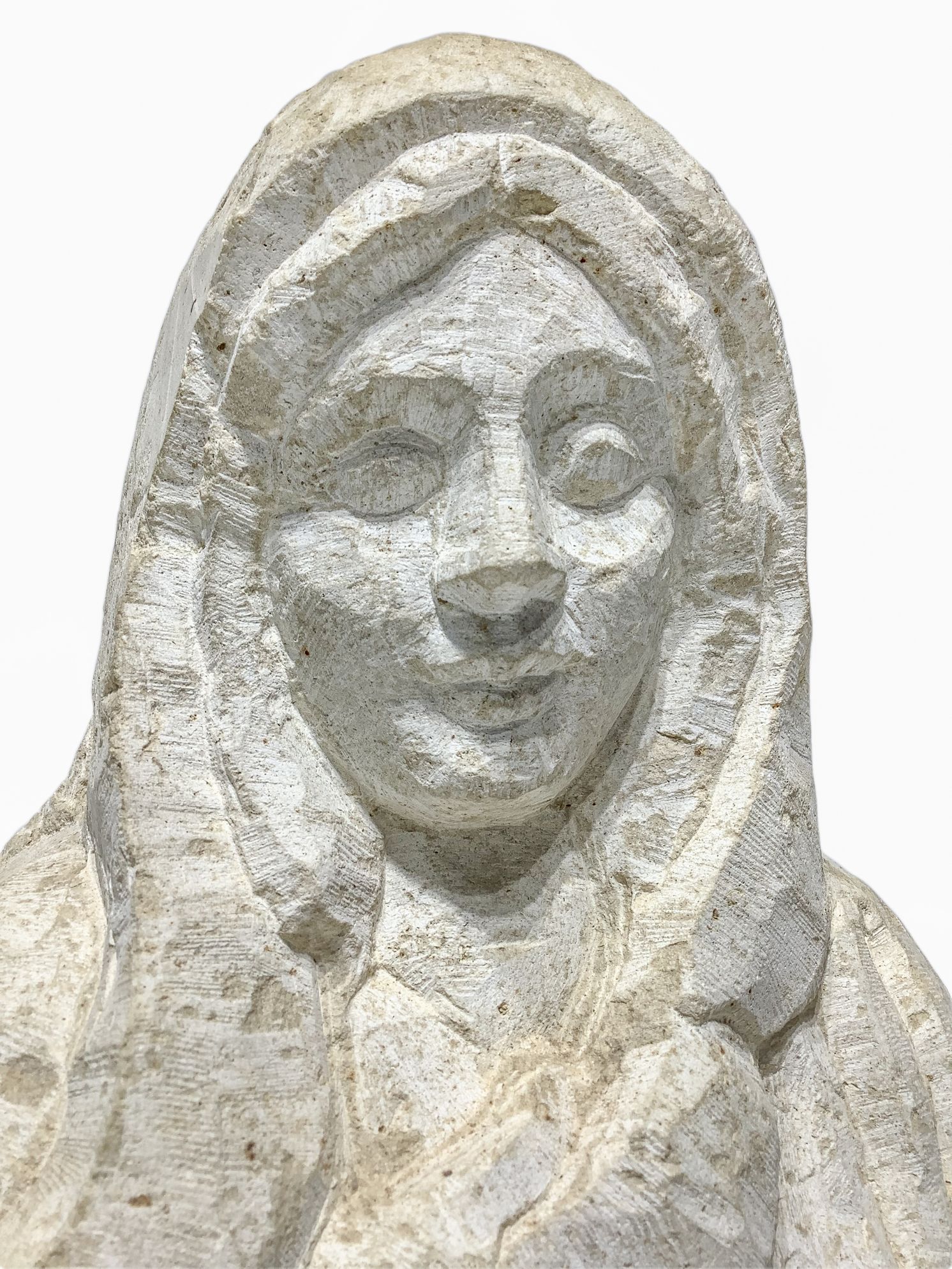 Scultura di Madonna in pietra modicana, XX secolo, scultore Migliore. H cm...