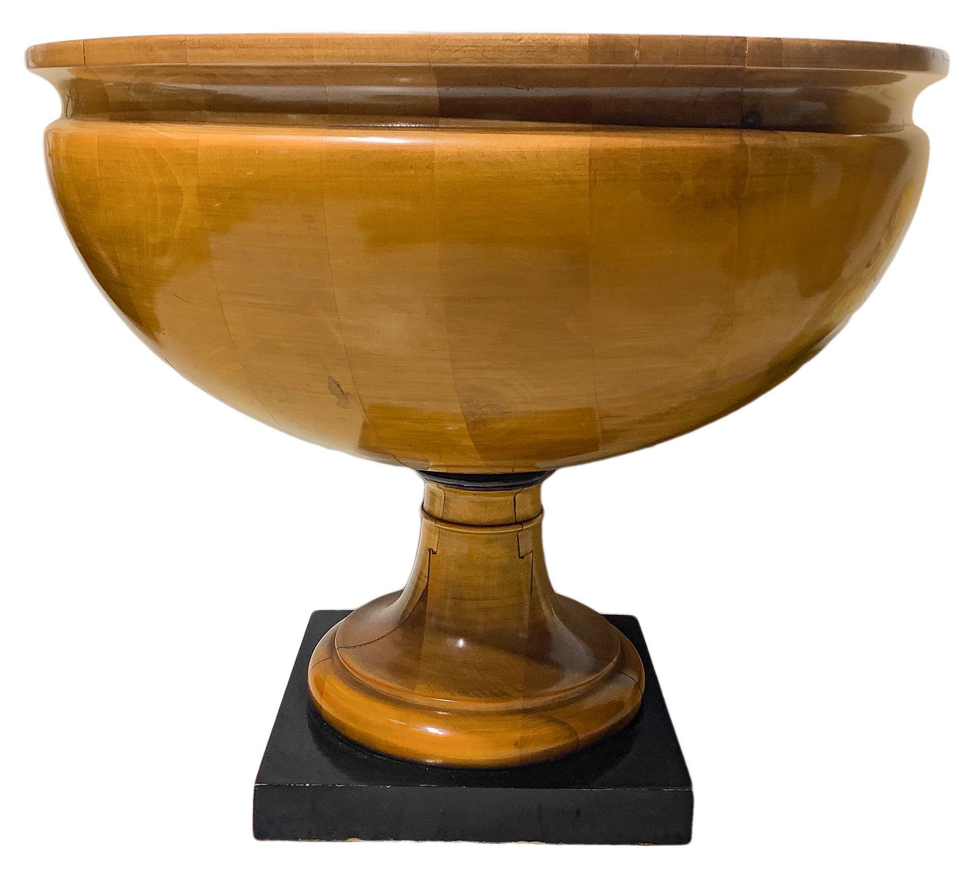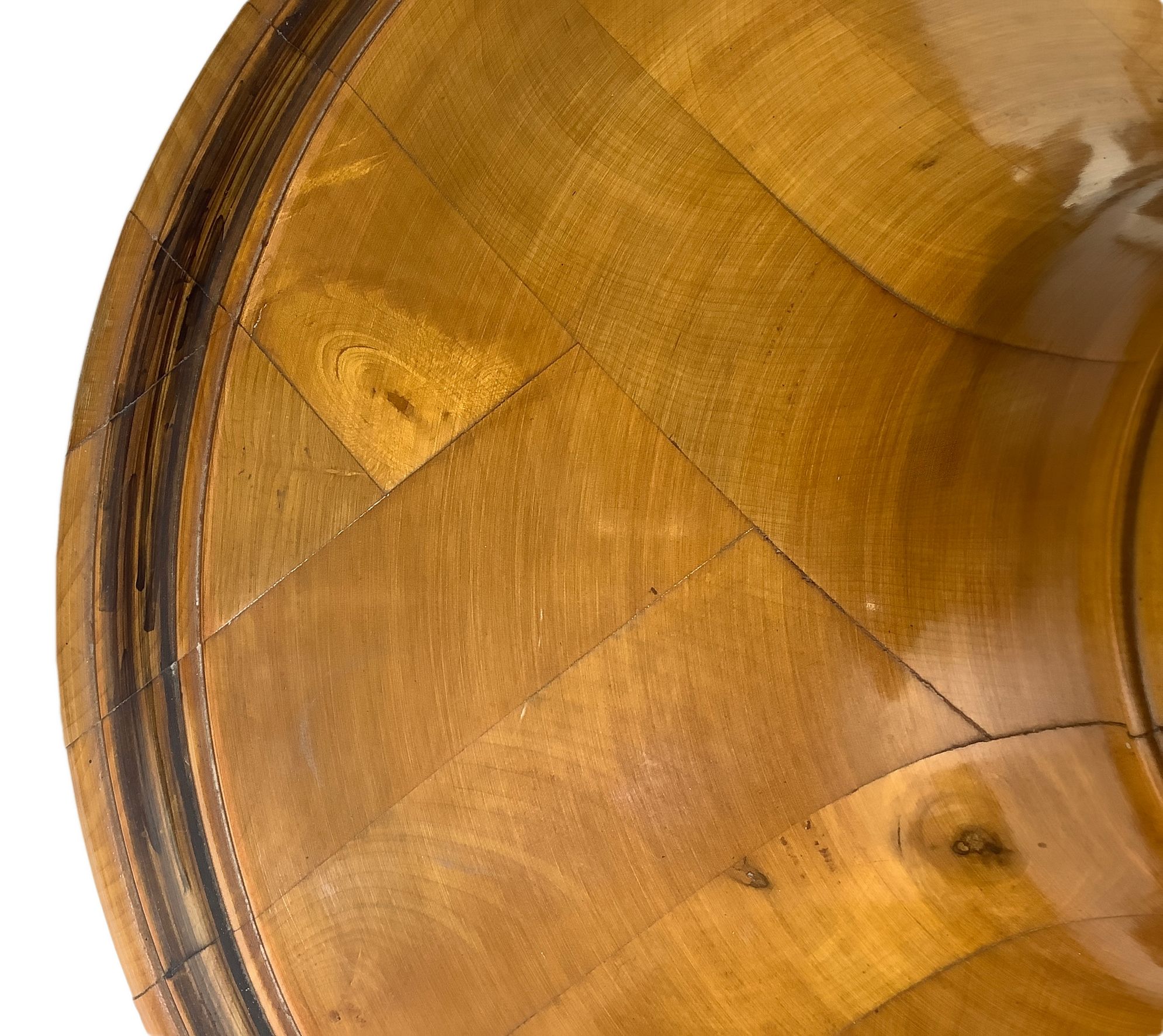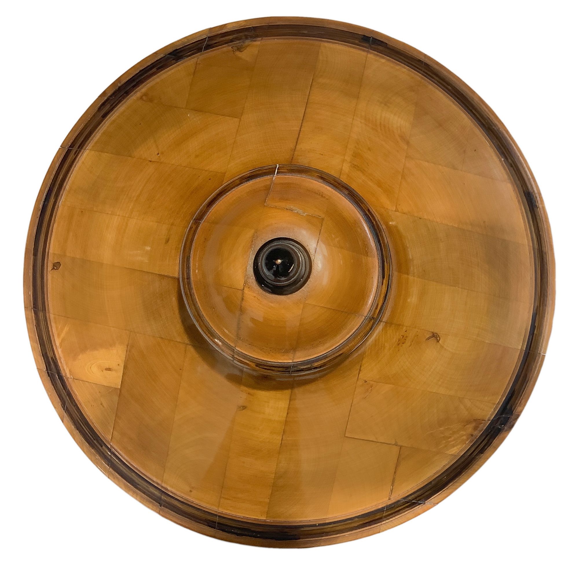 Coppia di potiche biedermeier in legni chiari con dettagli, pomo e base...