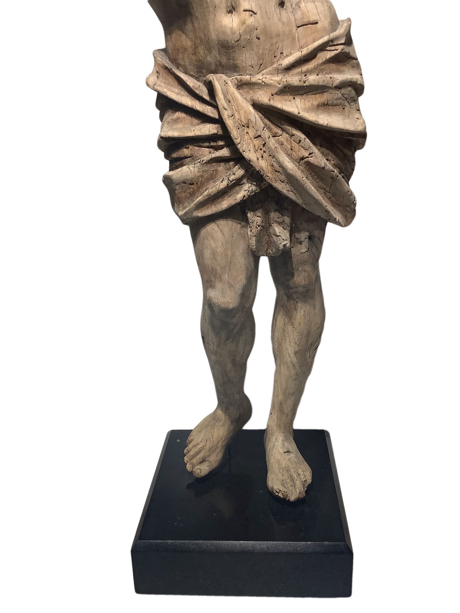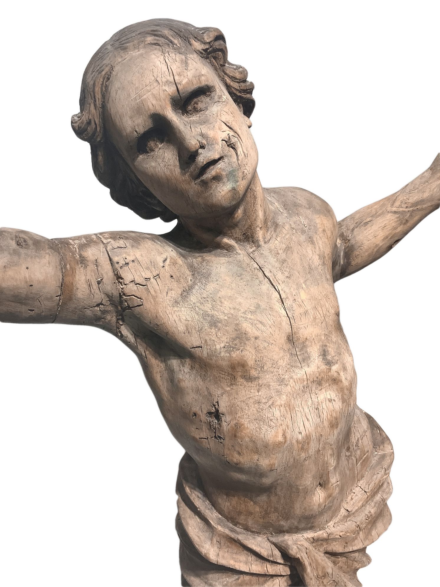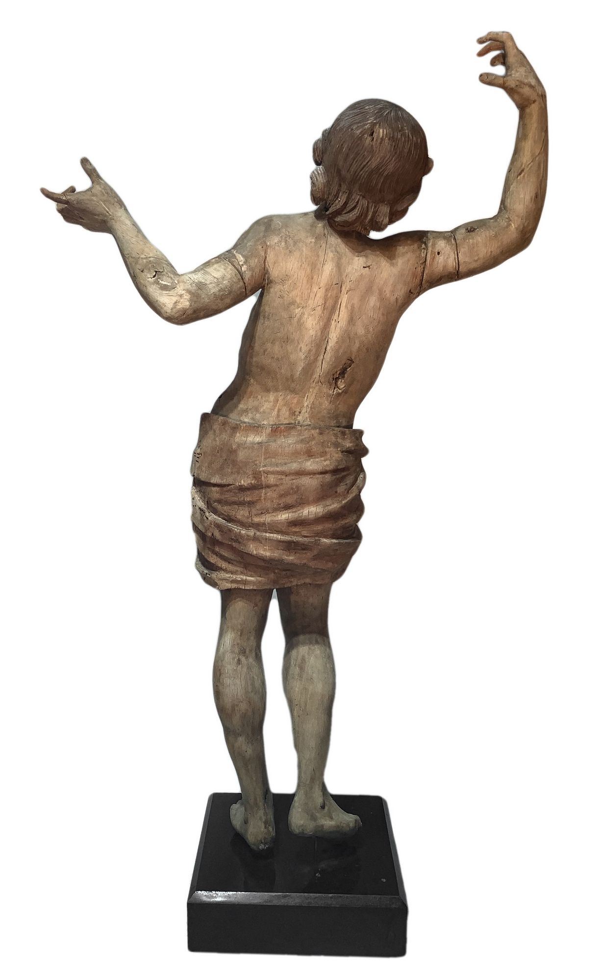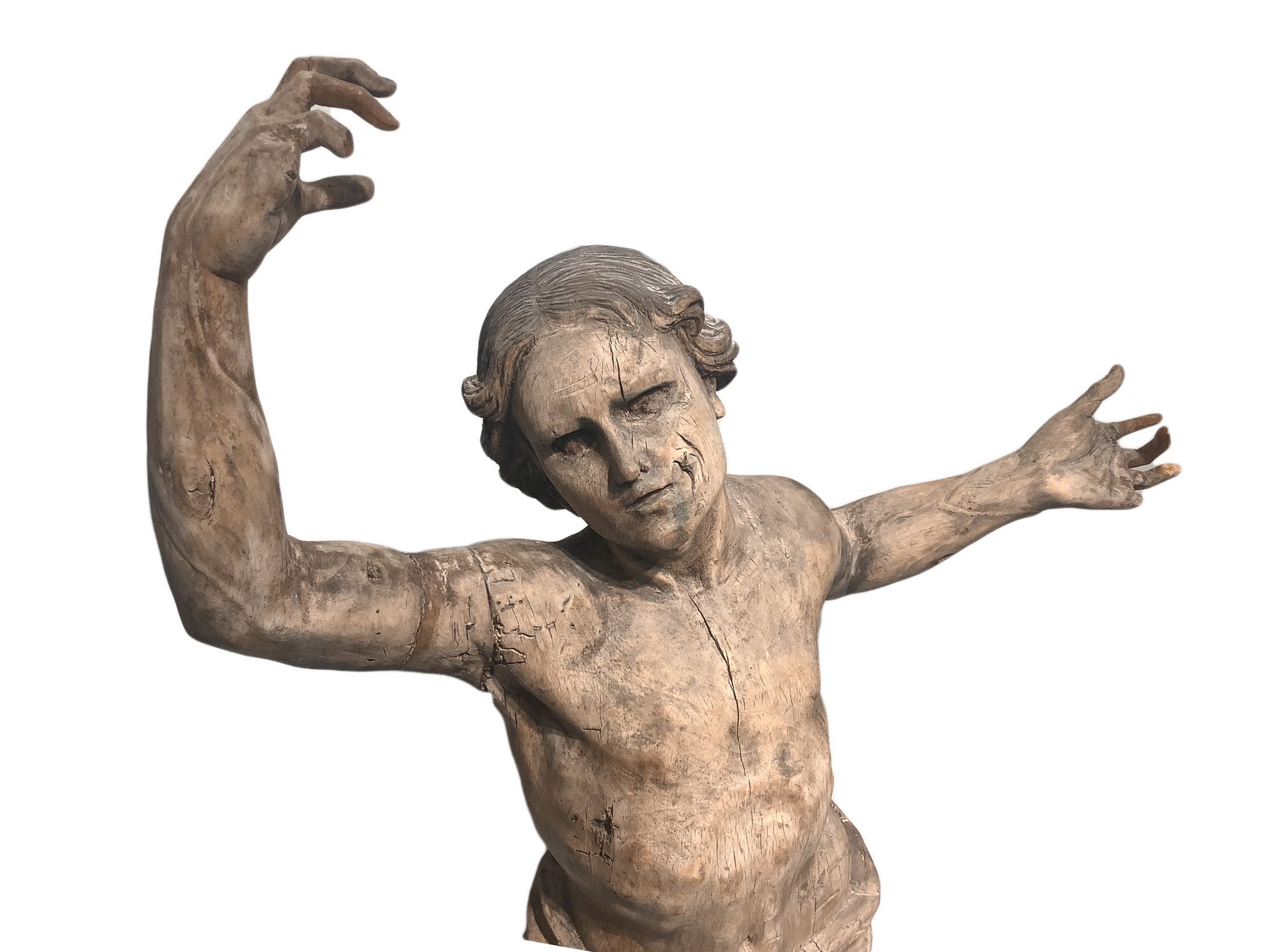 Statua lignea raffigurante San Sebastiano, XVI secolo. H cm 108. Base in marmo. H totale cm 119. Piccole mancanze.