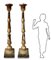 Coppia di torcieri in legno laccato, finitura finto porfido e dorati con...