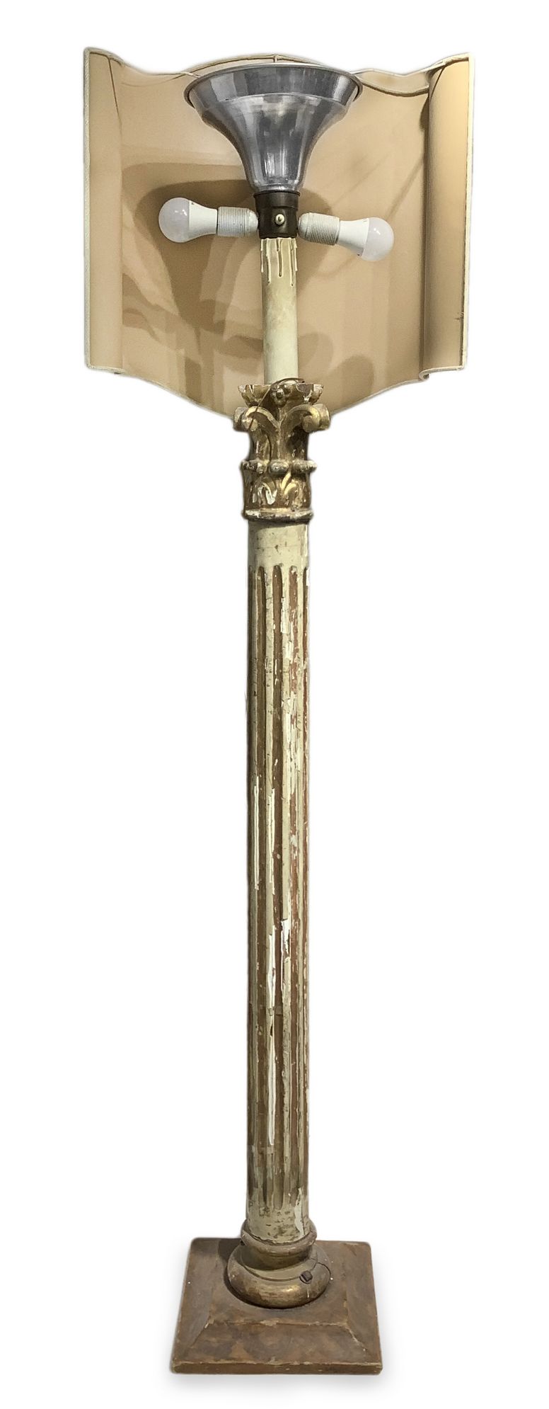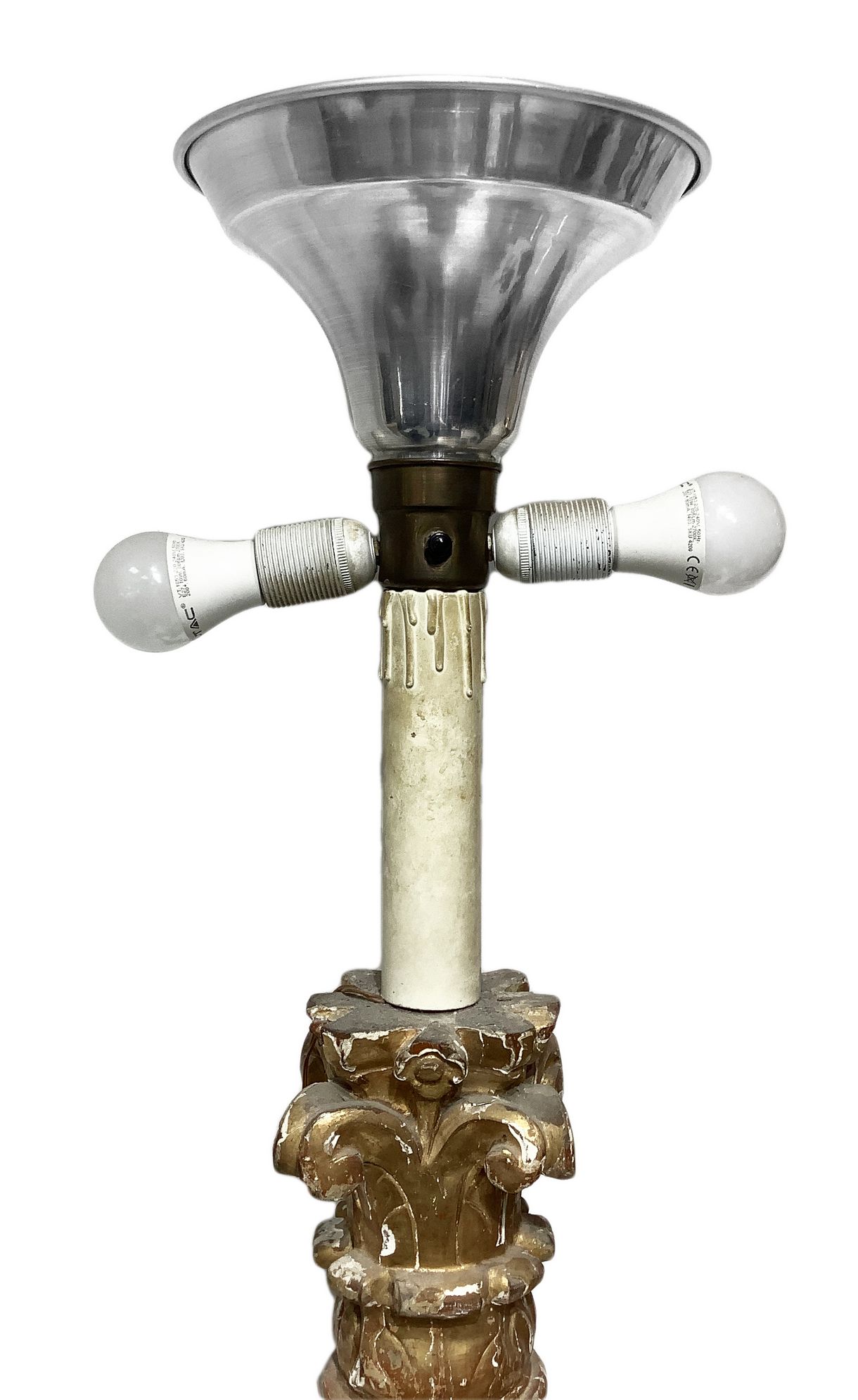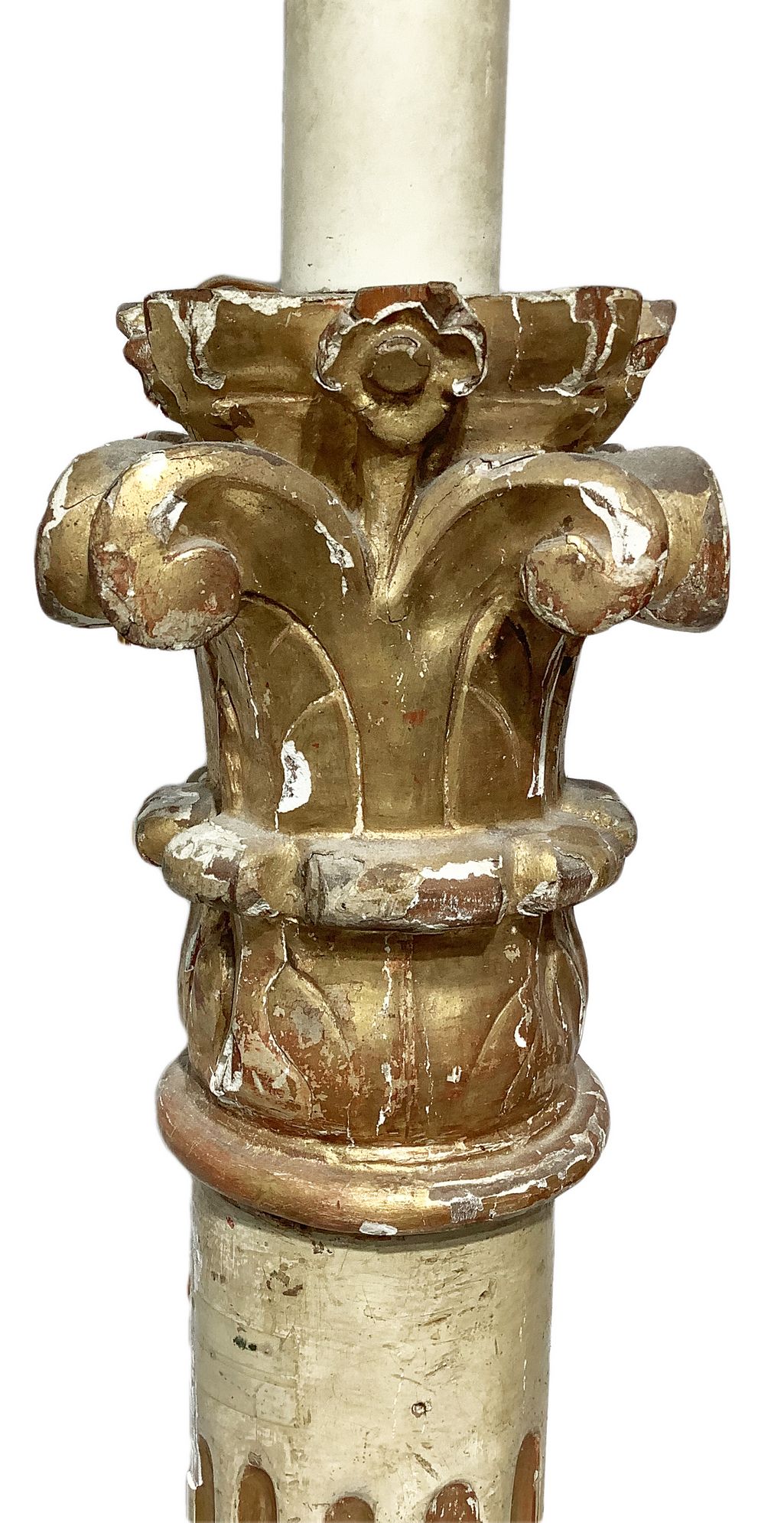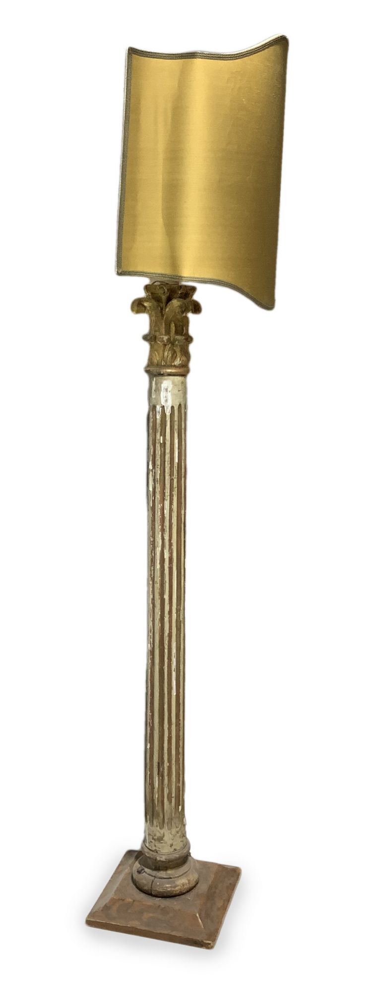Torciere a colonna scanalata in lacca e oro, Impero ,primi XIX secolo. Capitello a foglie d'acanto dorate. H cm 153. Base quadrata cm 32x32.