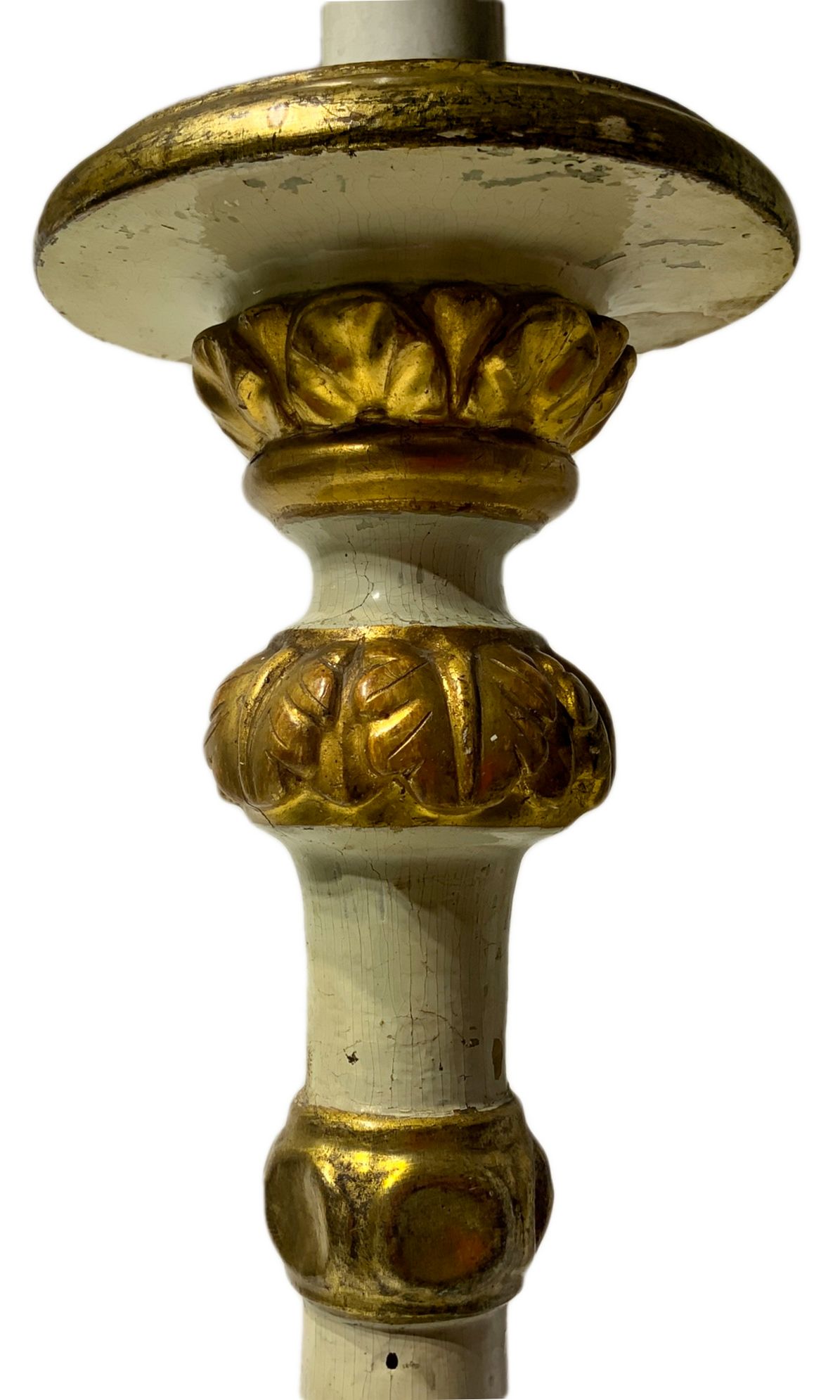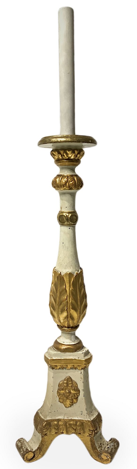 Candeliere laccato e dorato, XIX secolo. H cm 88