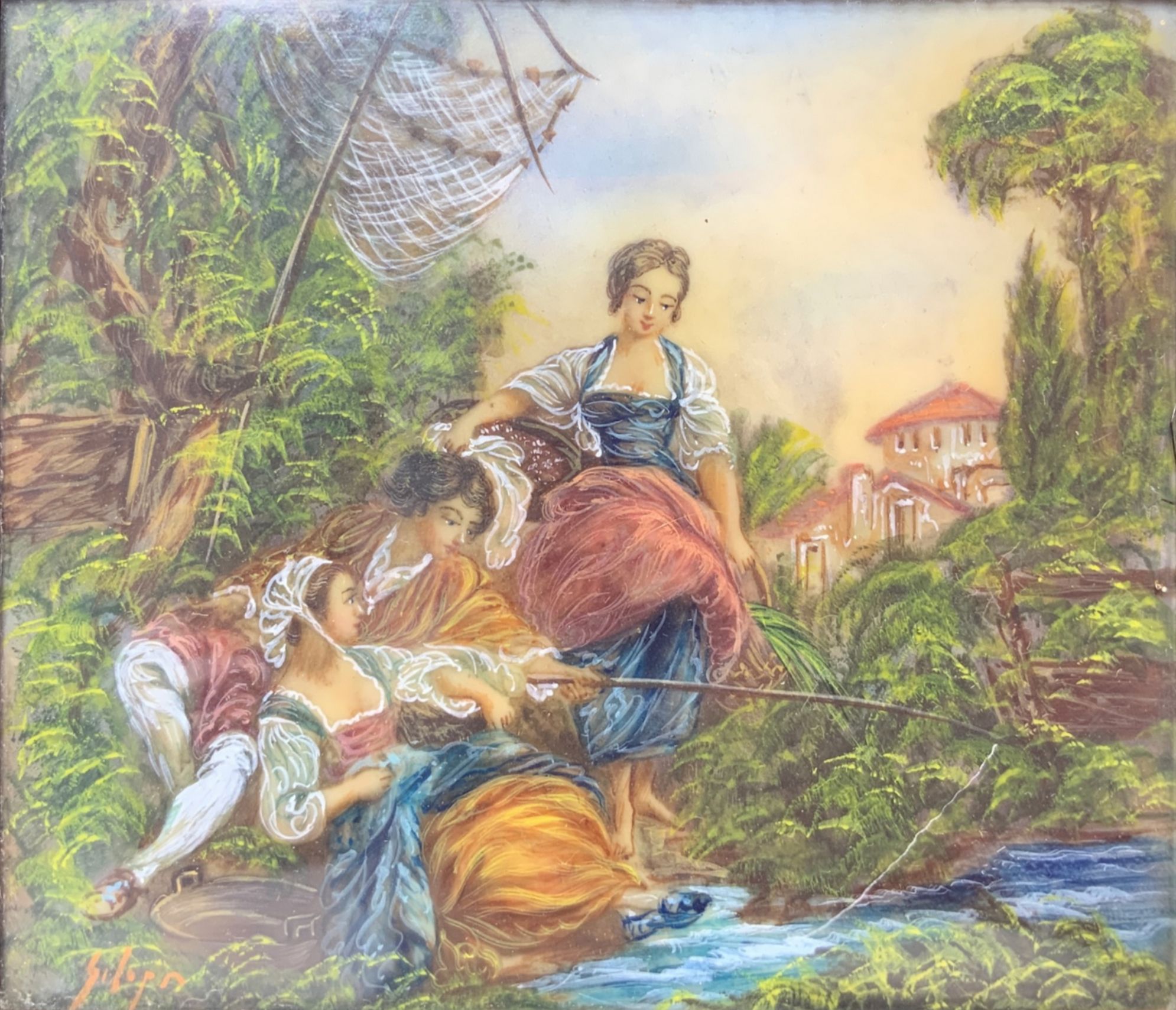 Gruppo di n.3 miniature su avoriolina raffiguranti scene di genere, XIX...