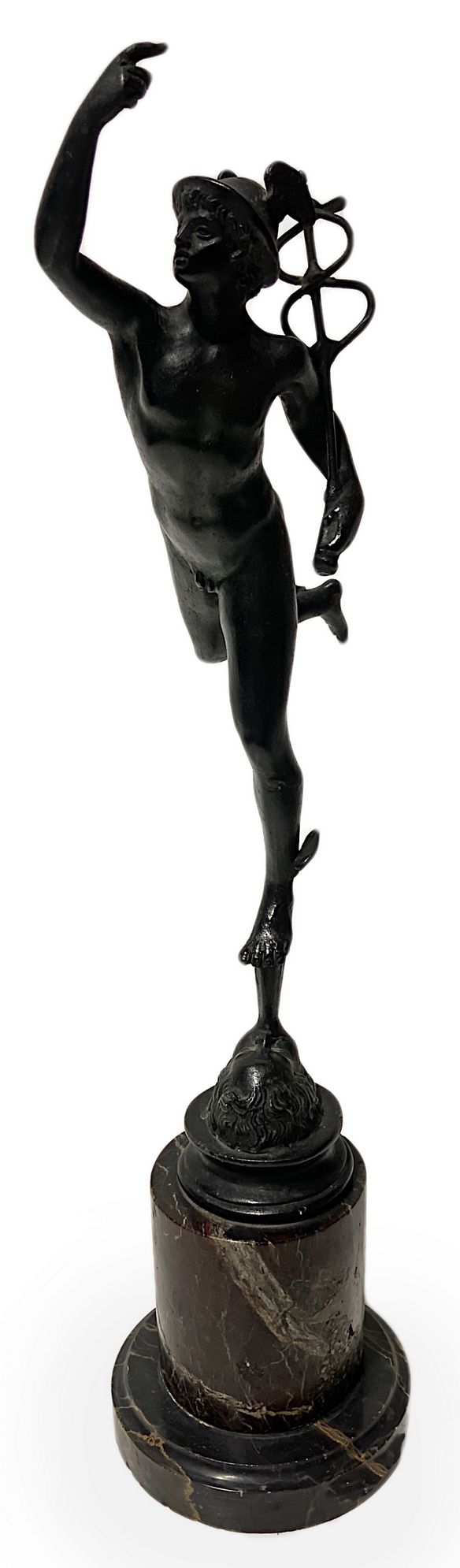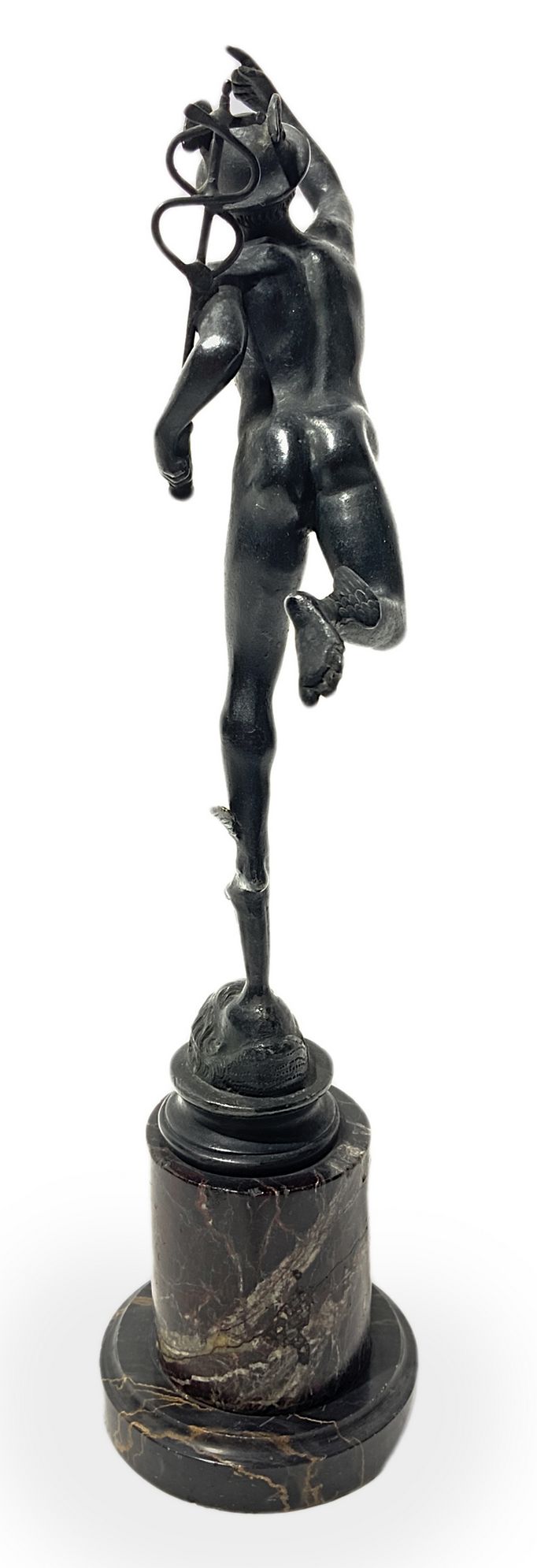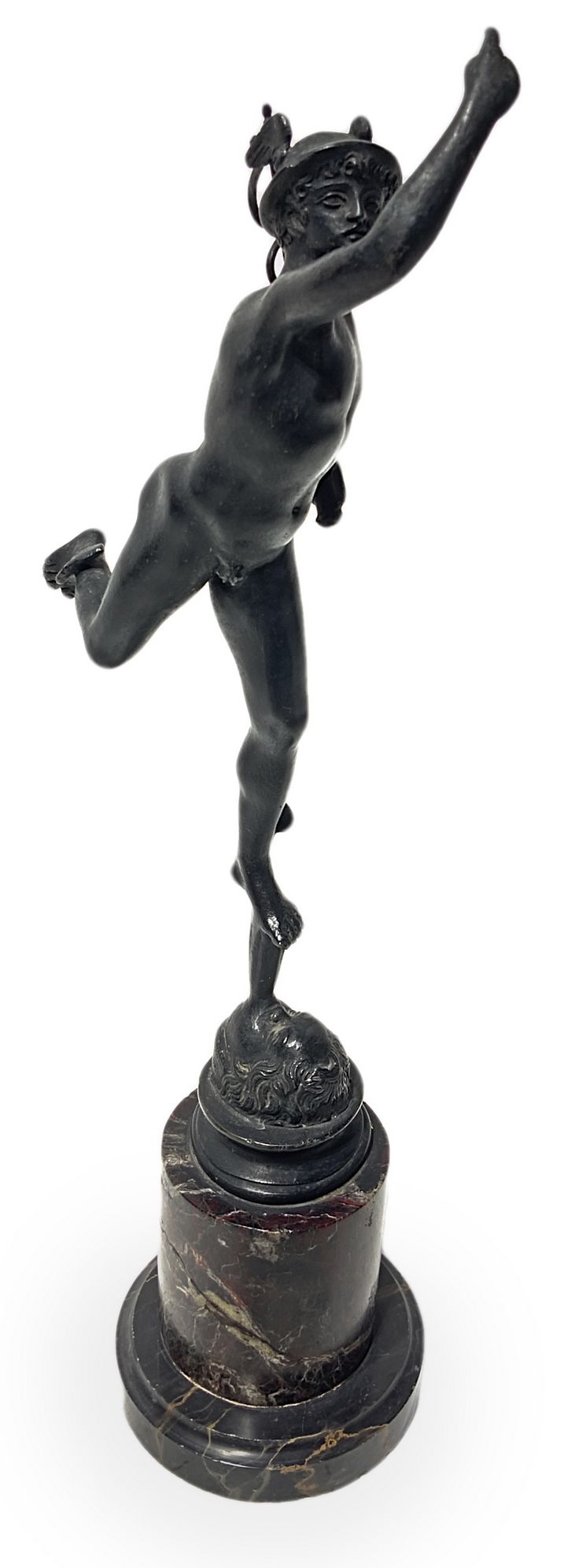 Bronzo raffigurante Mercurio volante da Giambologna, secolo XIX secolo. H cm 40. Con base in marmo cm 9,5