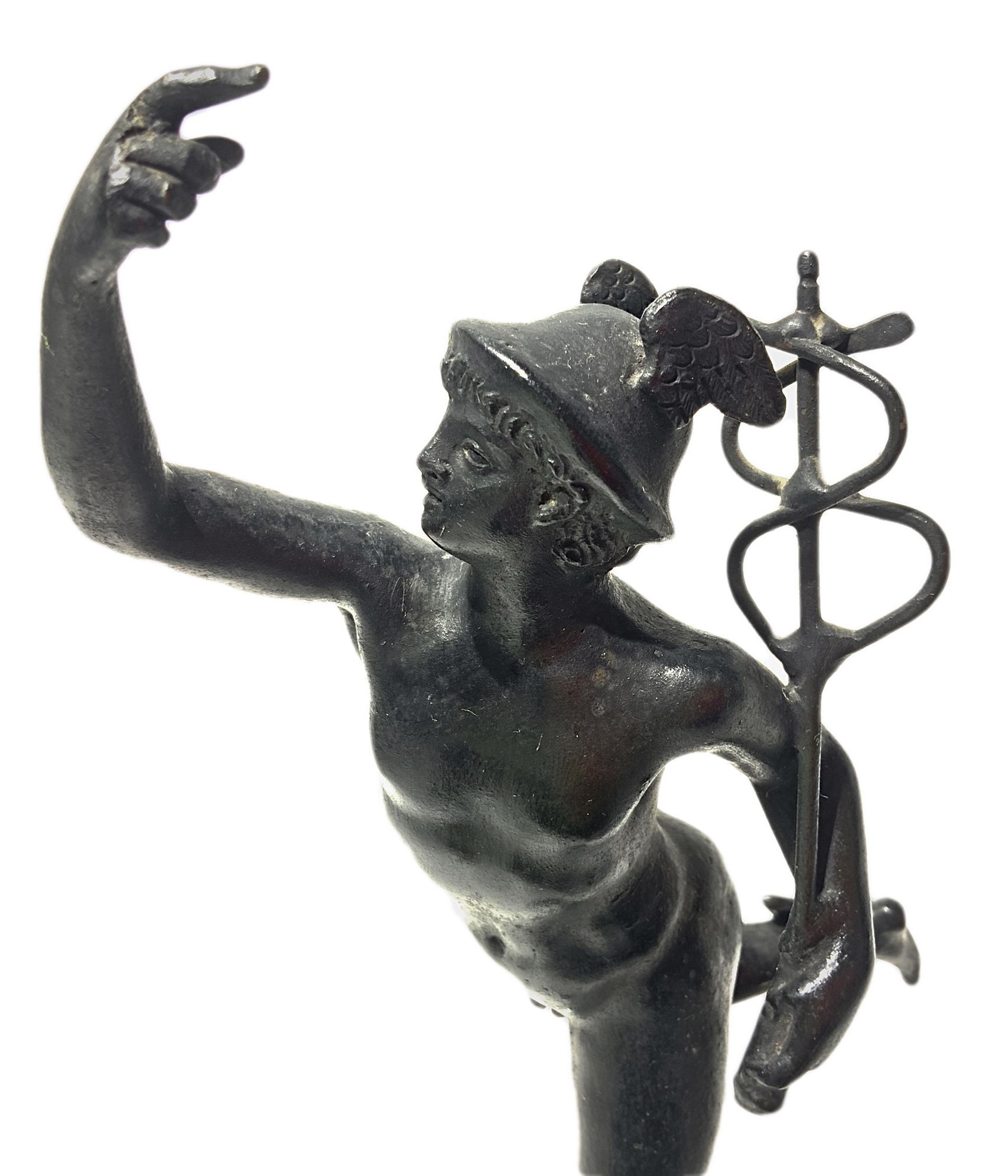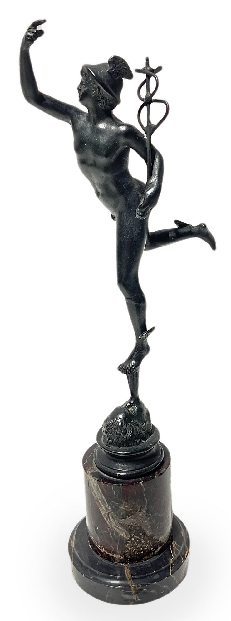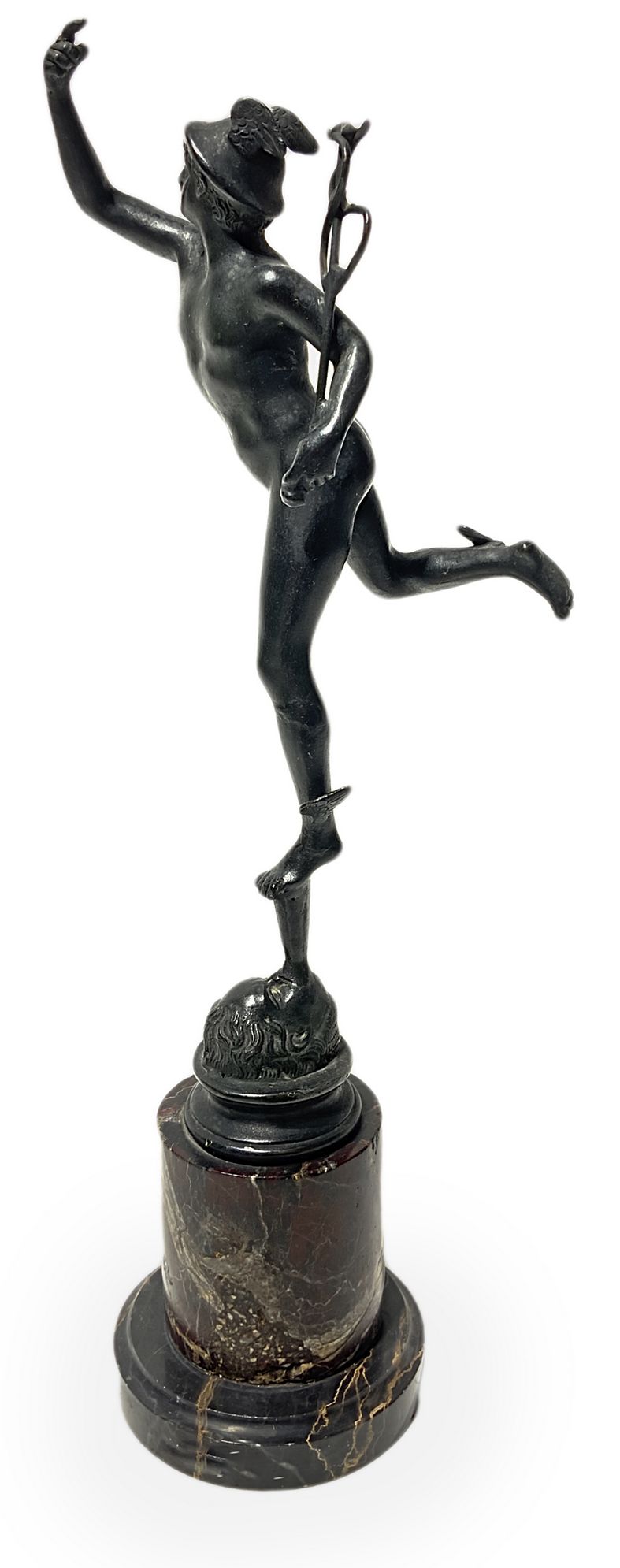 Bronzo raffigurante Mercurio volante da Giambologna, secolo XIX secolo. H cm 40. Con base in marmo cm 9,5