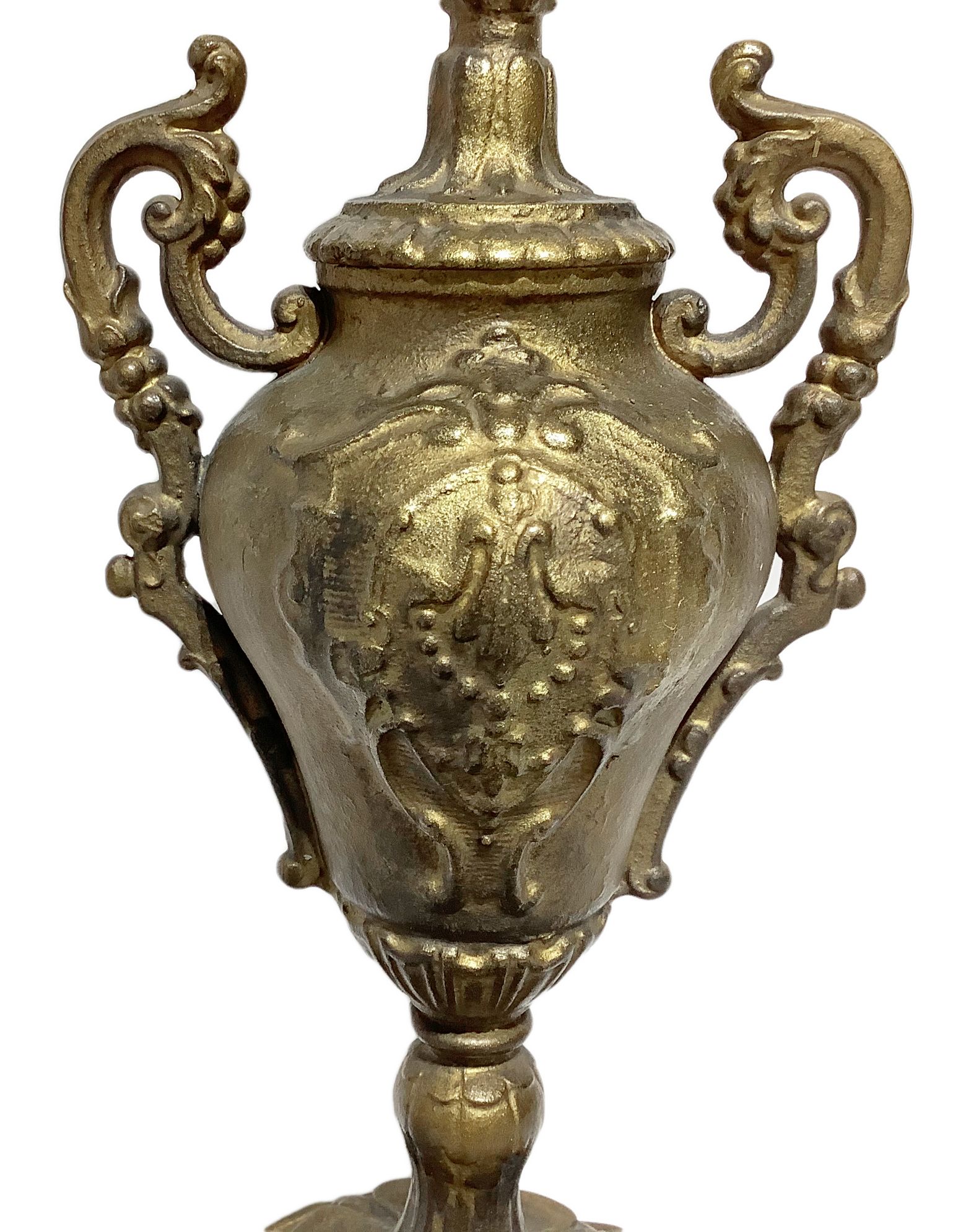 Coppia candelieri in bronzo dorato a tre luci, XIX secolo. H cm 52.