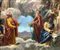 Dipinto ad olio su tela raffigurante celebrazione della Madonna in Cielo tra...