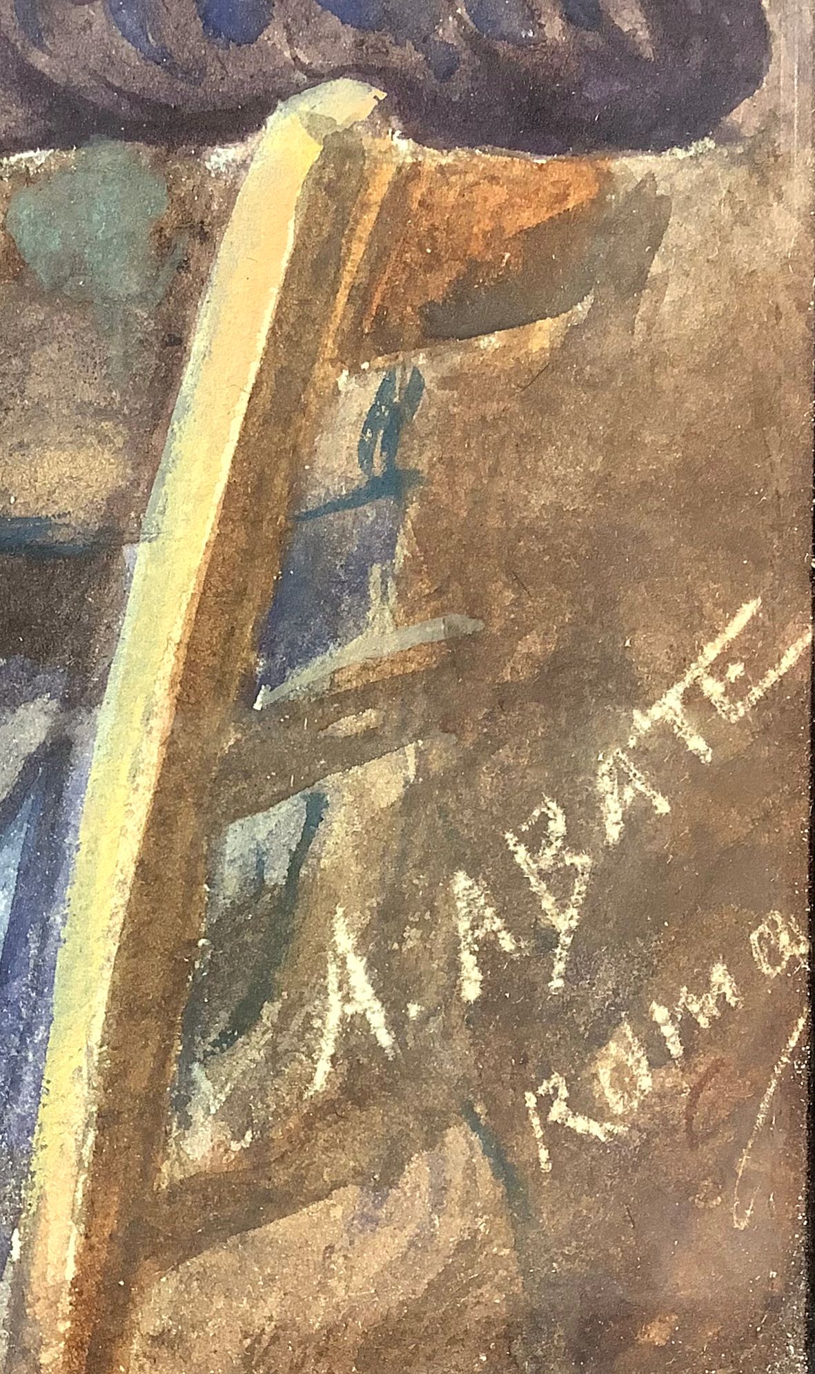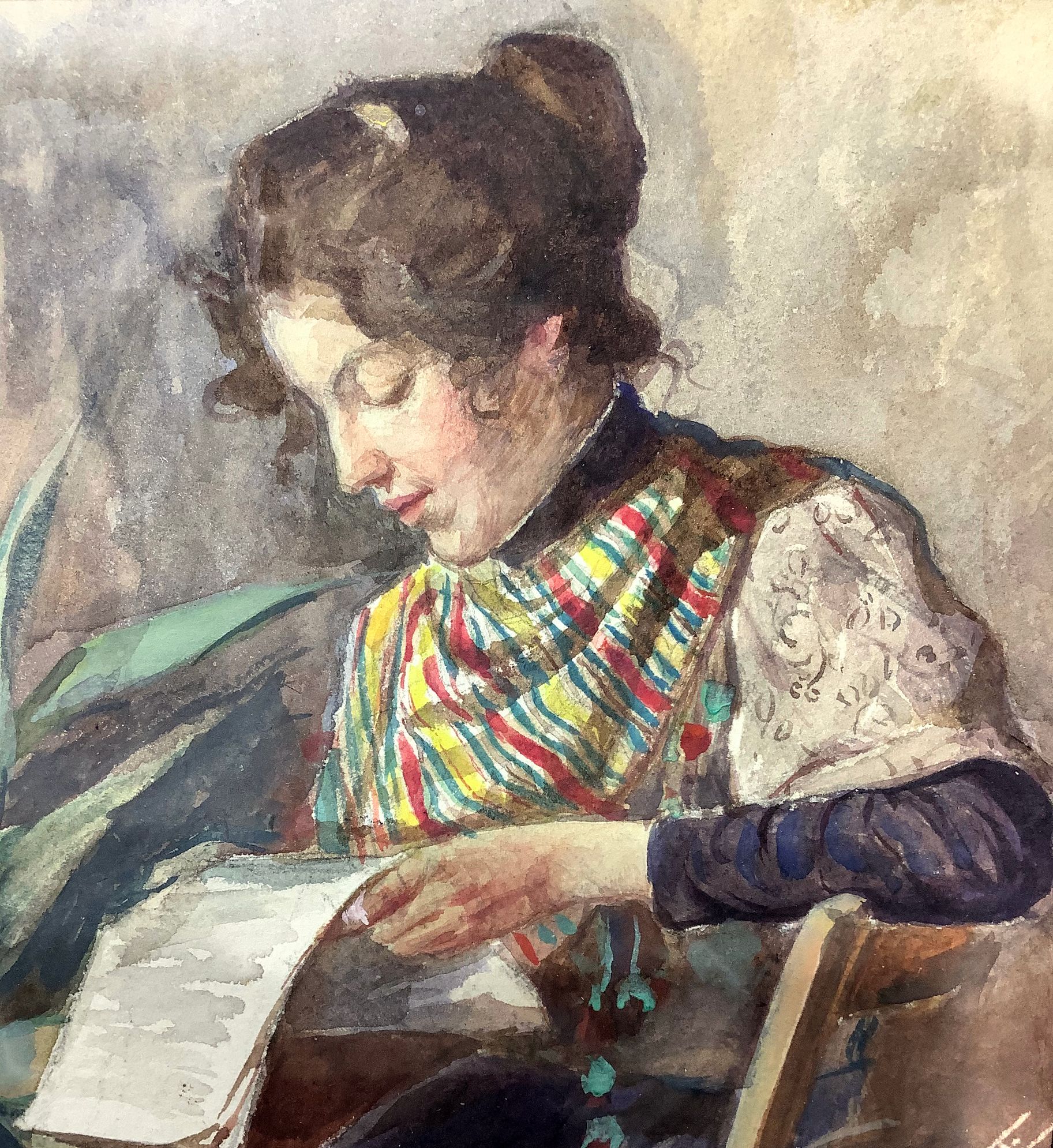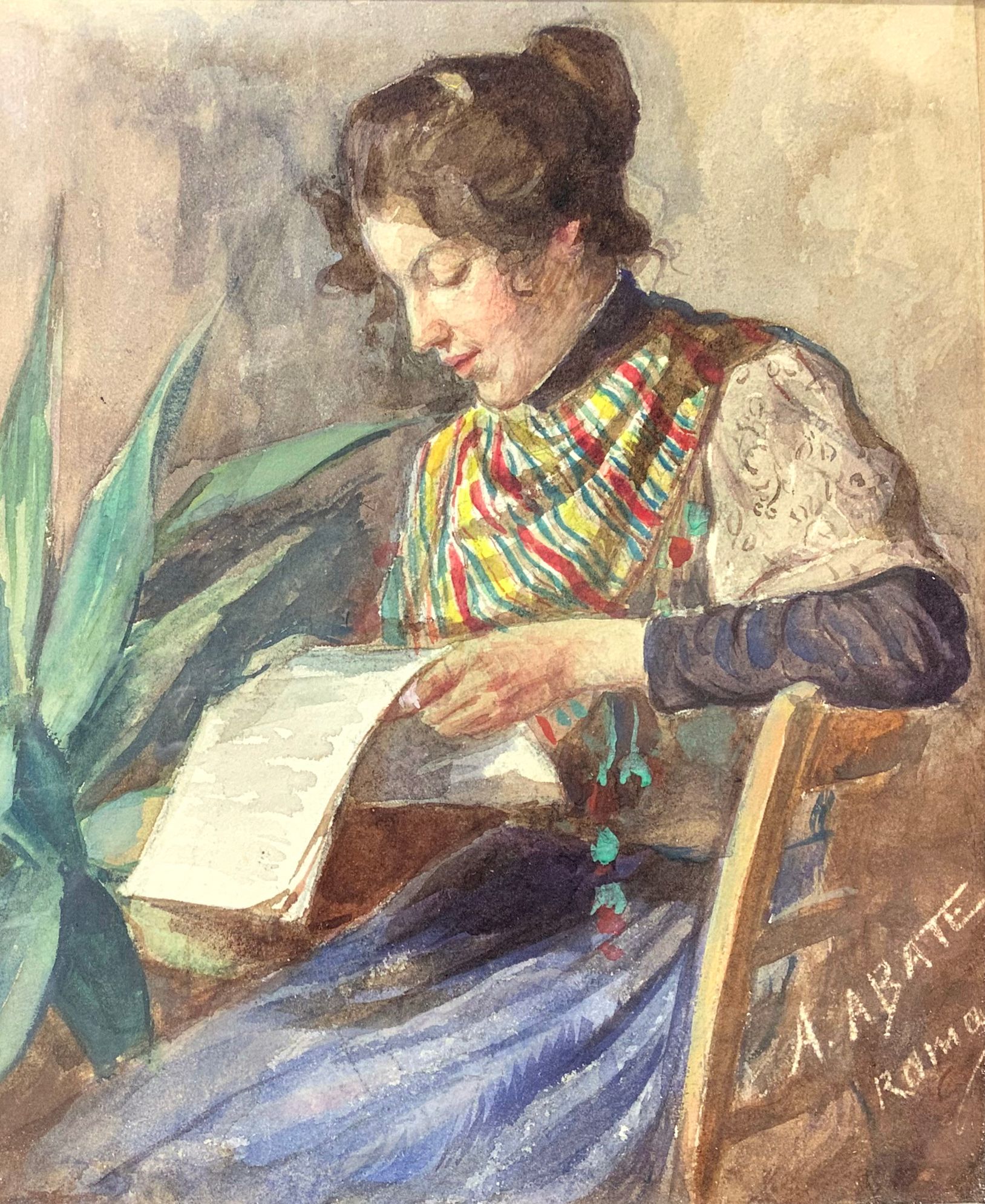 Gouache raffigurante giovane donna che legge. A. Abate (Roma, 1946 – Roma,...