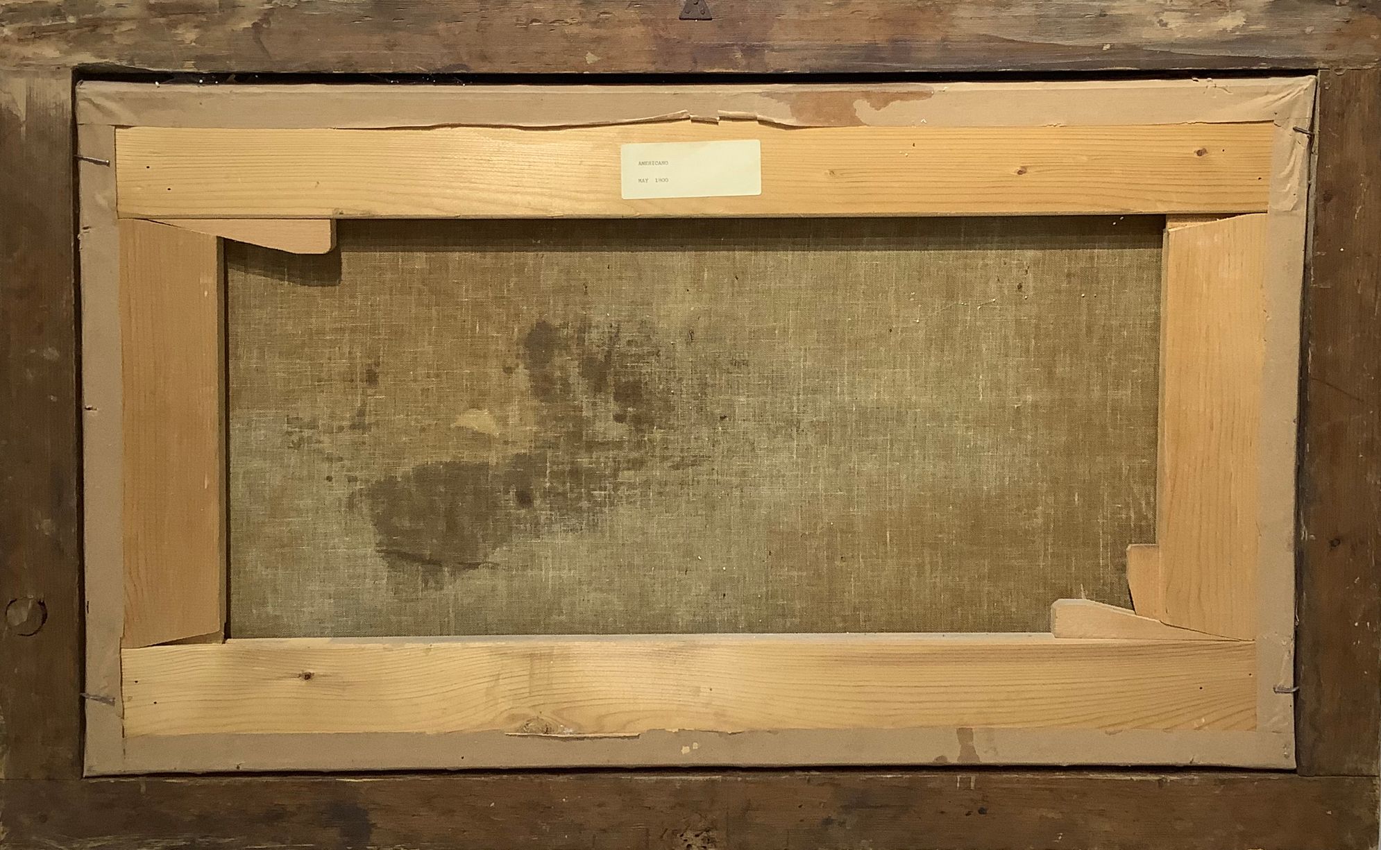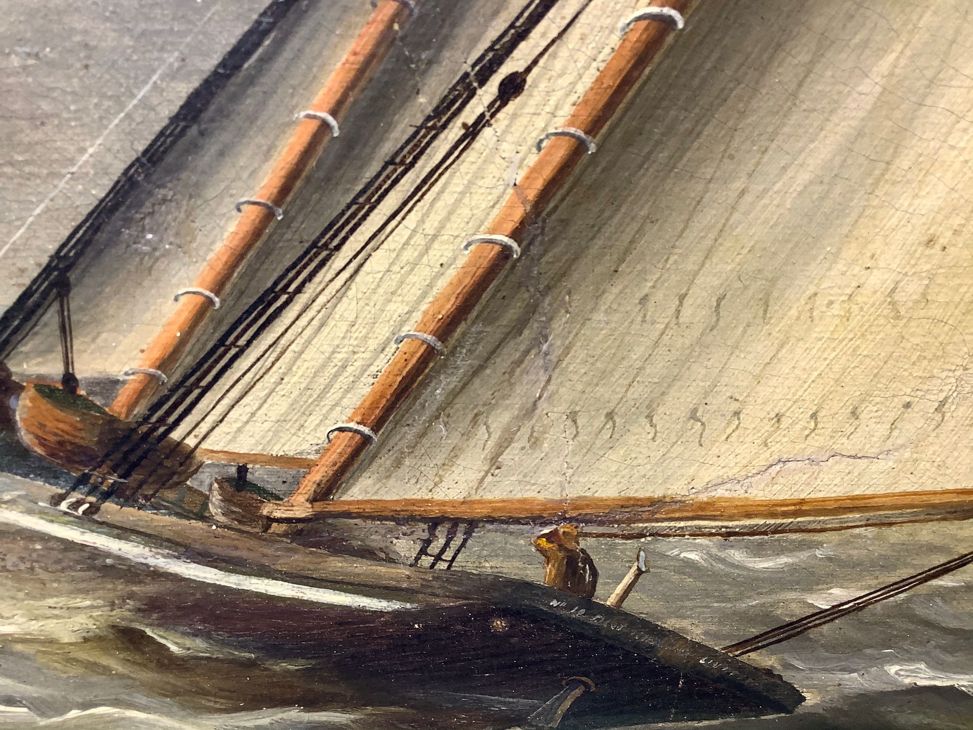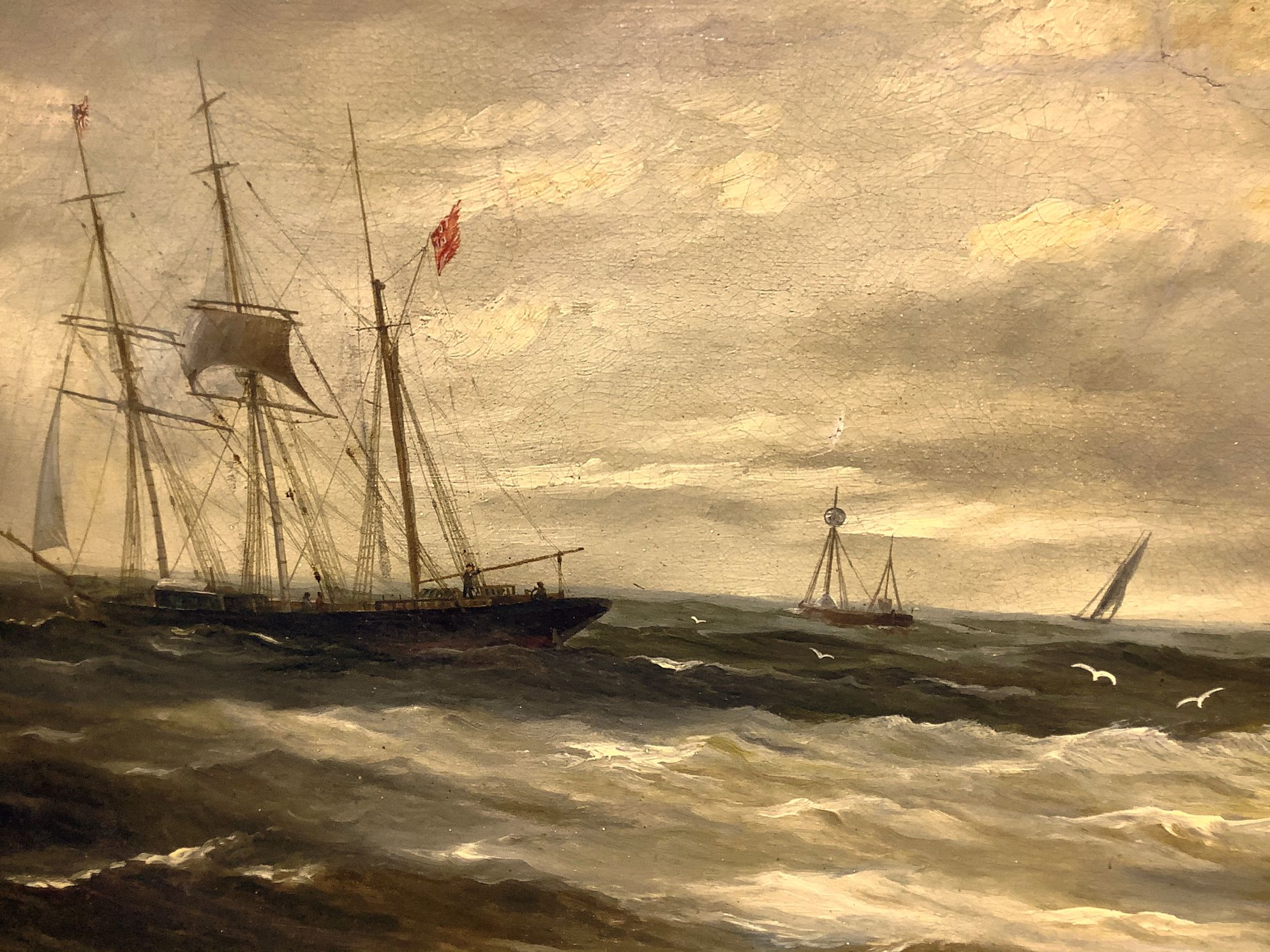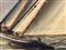 Dipinto ad olio su tela raffigurante barche in mare, XIX secolo. Cm 45x77.