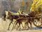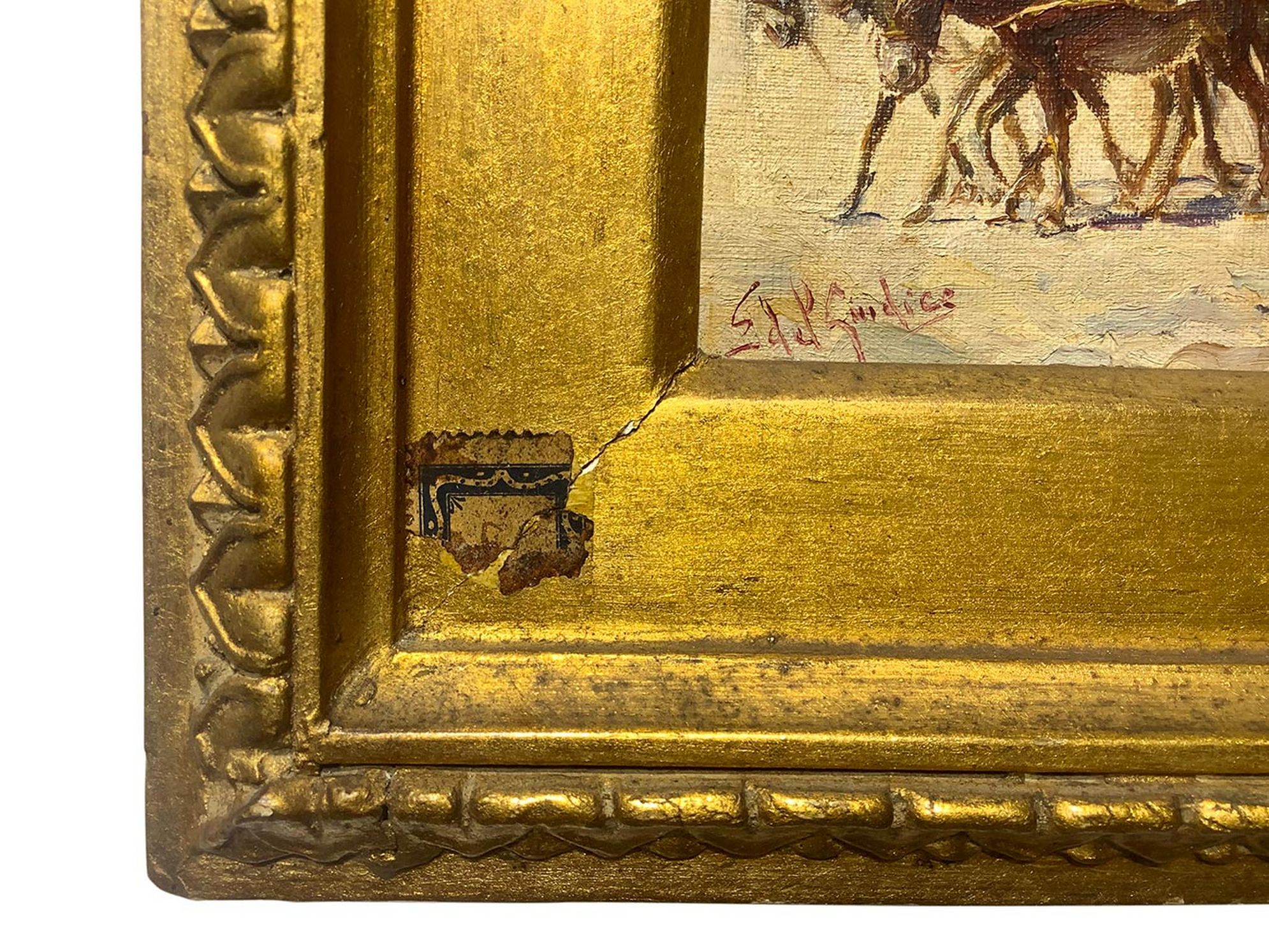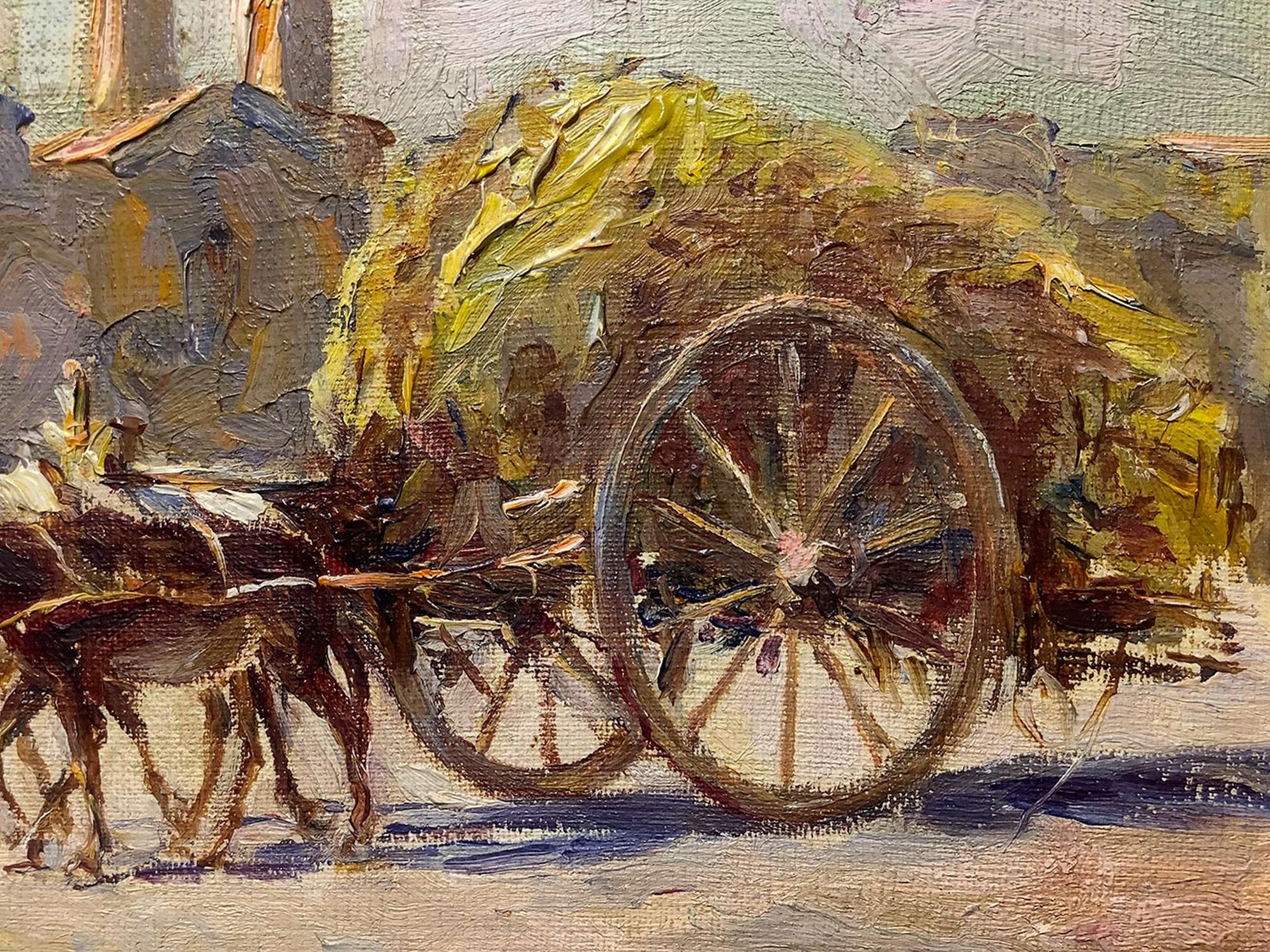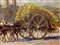 Dipinto ad olio su tela raffigurante asini e carro, Elvira Del Giudice. Cm 10x14. Firmato in basso a sinistra.