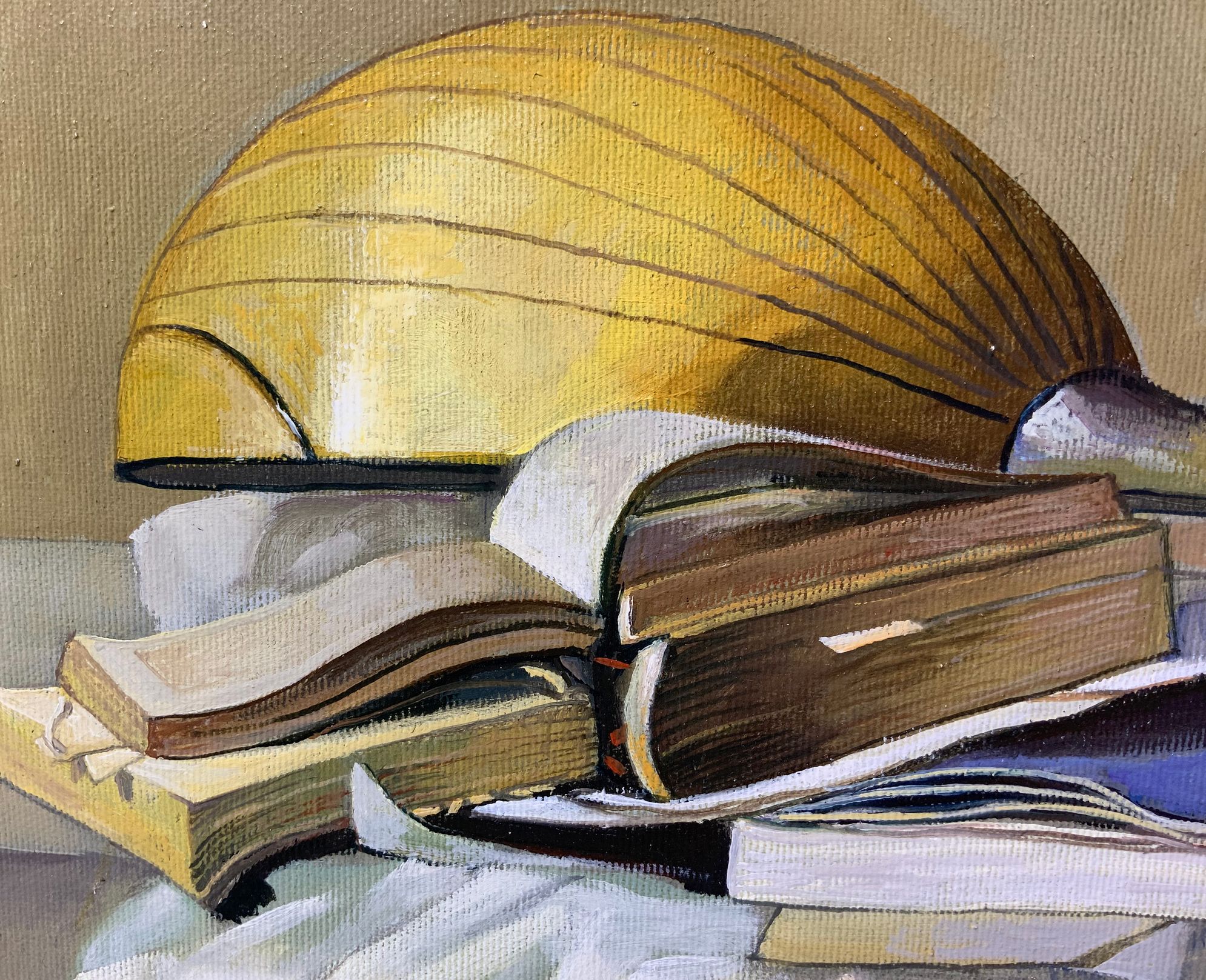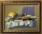 Dipinto ad olio su tela raffigurante mandolino e spartiti, Saro Tricomi...