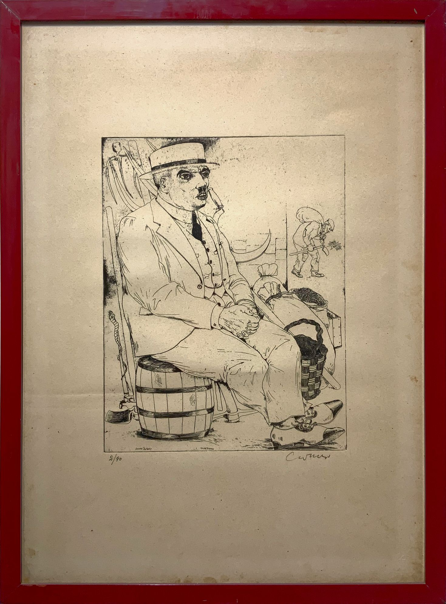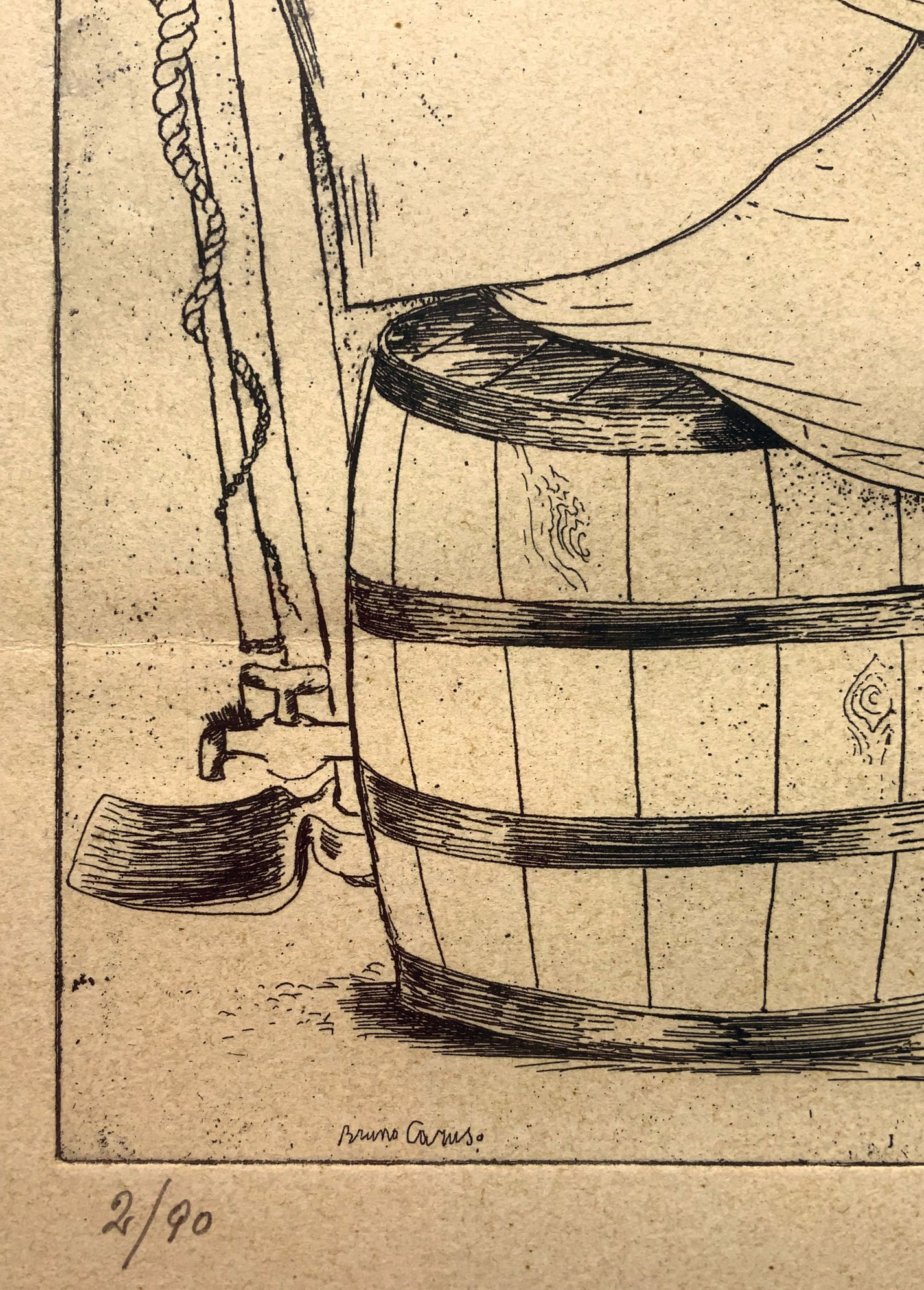 Incisione raffigurante figura maschile, Bruno Caruso (Palermo, 1927 – Roma, 2018). Cm 70x50. Firmata in basso a destra