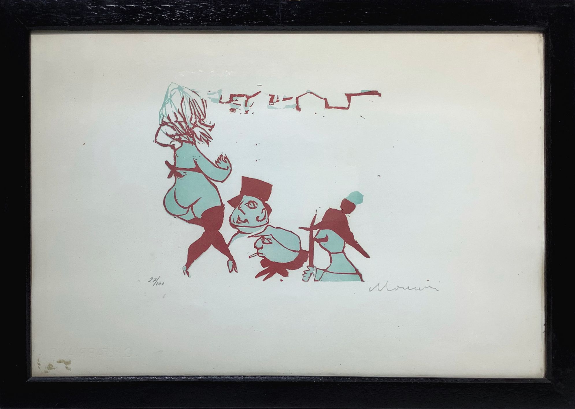 Litografia raffigurante scena amorosa, Mino Maccari (Siena,1898 – Roma,1989), 27/100. Firmato in basso a destra. Cm 50x35.
