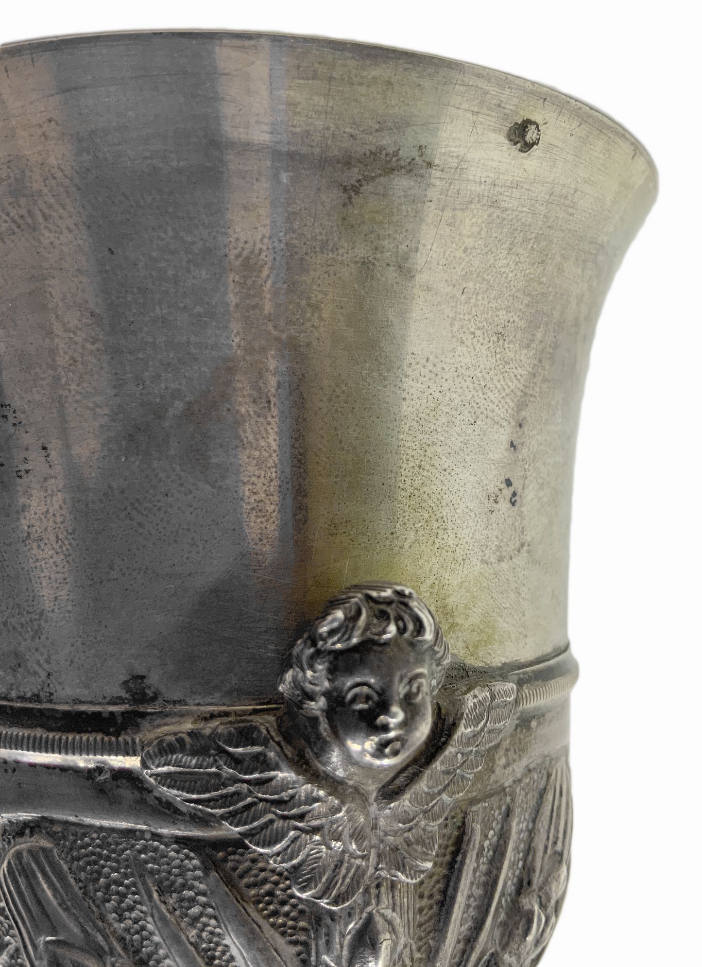 Calice in argento cesellato e sbalzato con cherubini. Punzone alla base e...