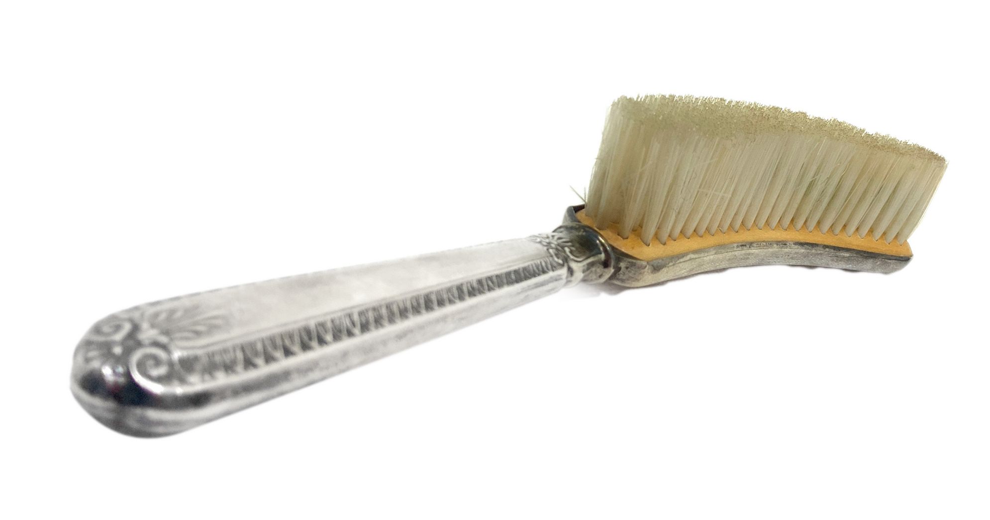 Raccogli briciole in argento 800, con spazzola, XX secolo. Peso gr 150.
