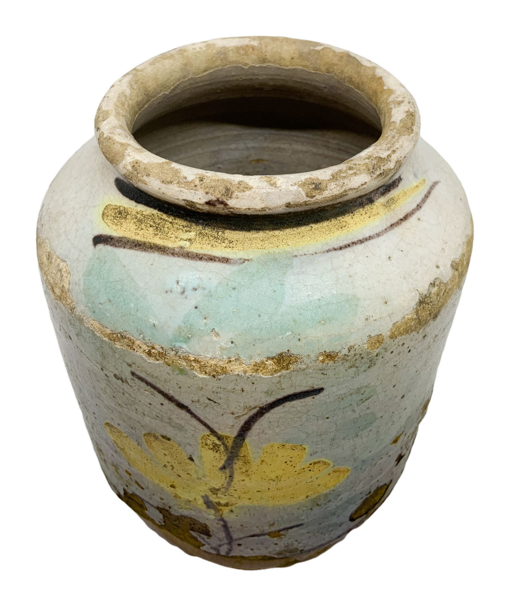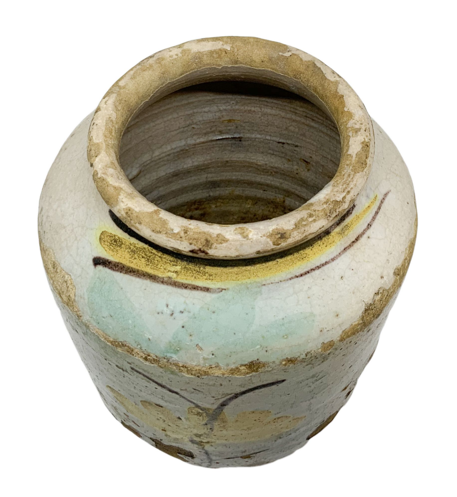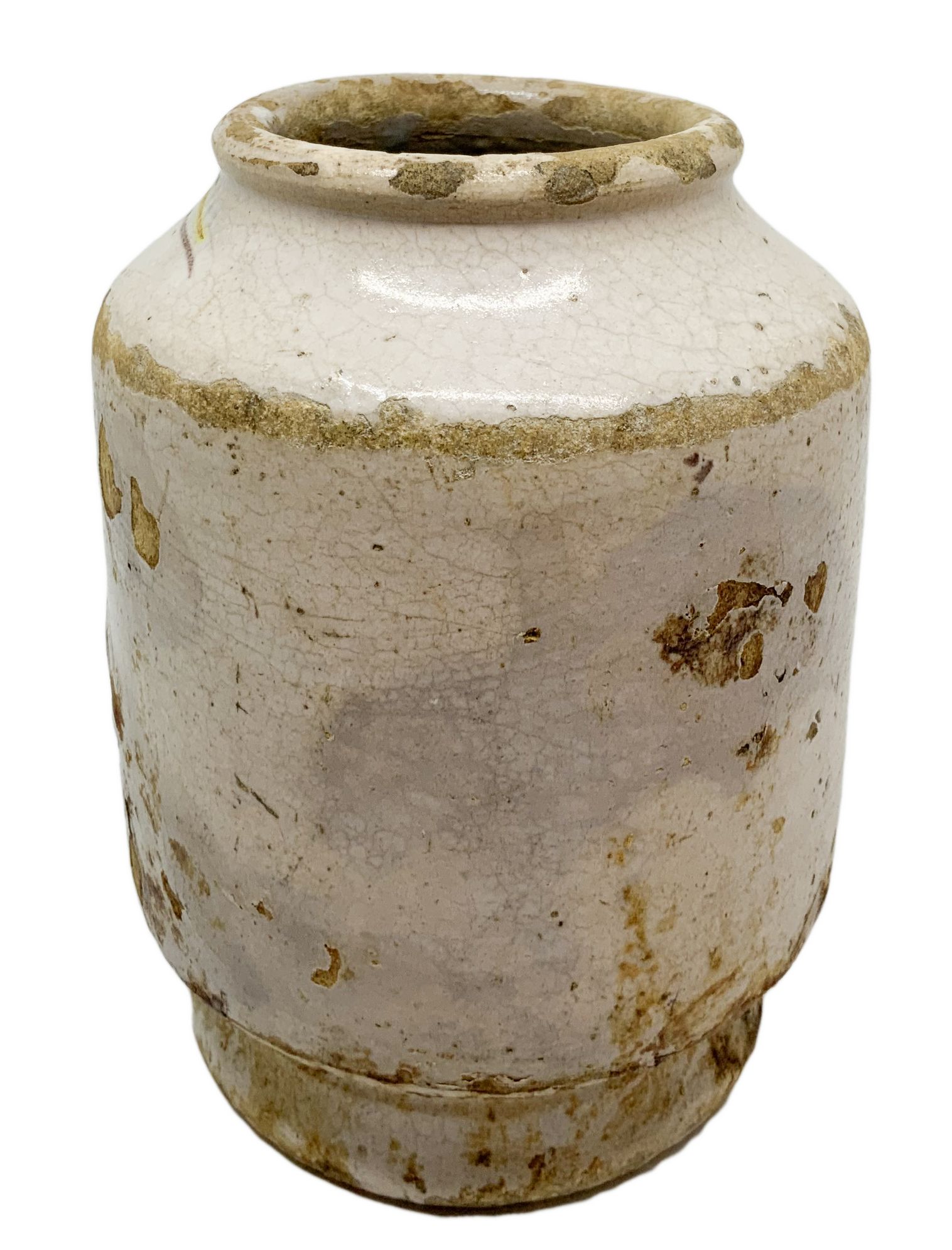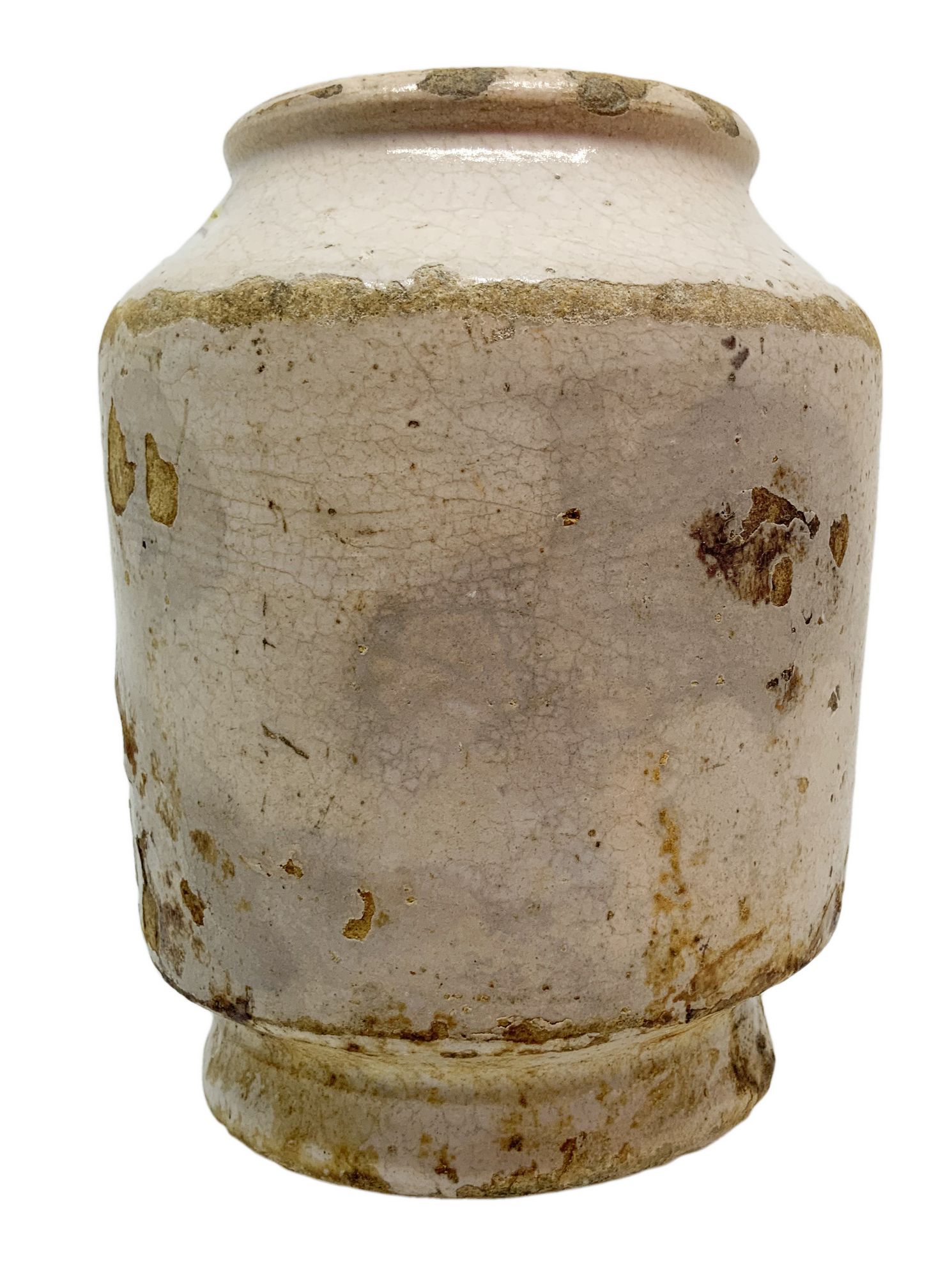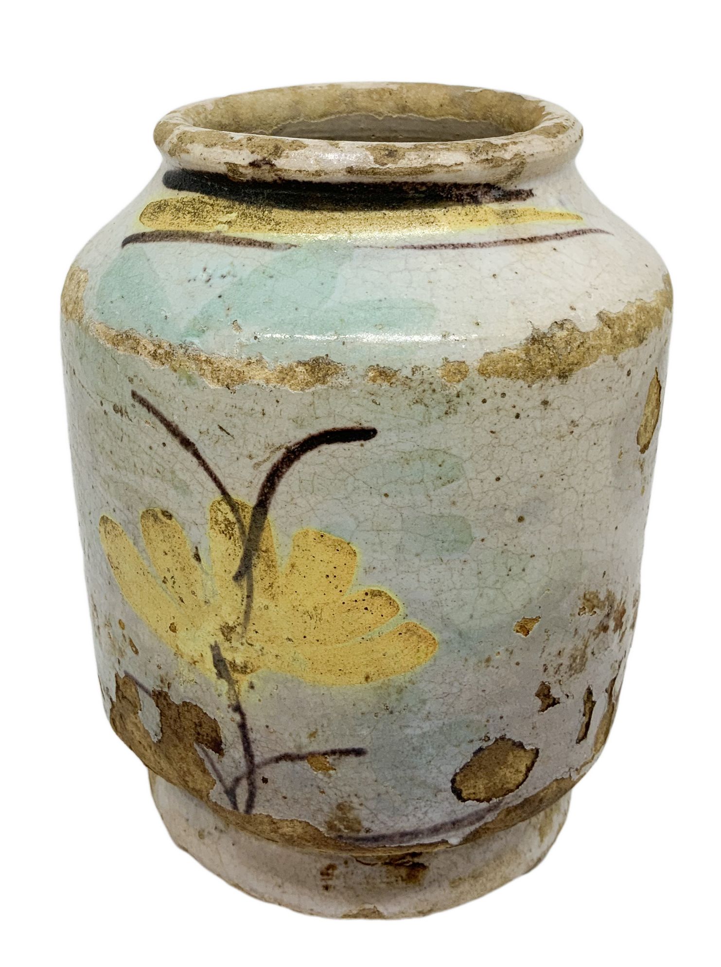 Cilindro in pasta bianca decori floreali gialli sul fondo bianco, Inizi XIX secolo. H cm 14.