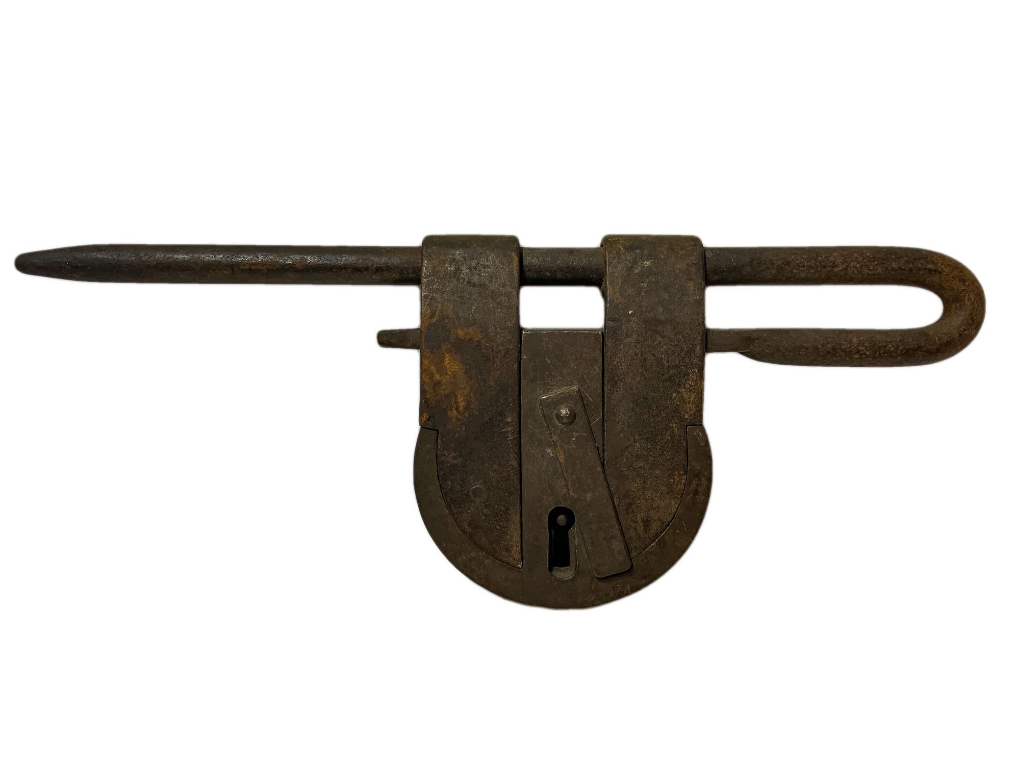 Antica serratura in ferro con chiavi, fine del XIX secolo, inizi XX secolo, Sicilia. Cm 45 circa