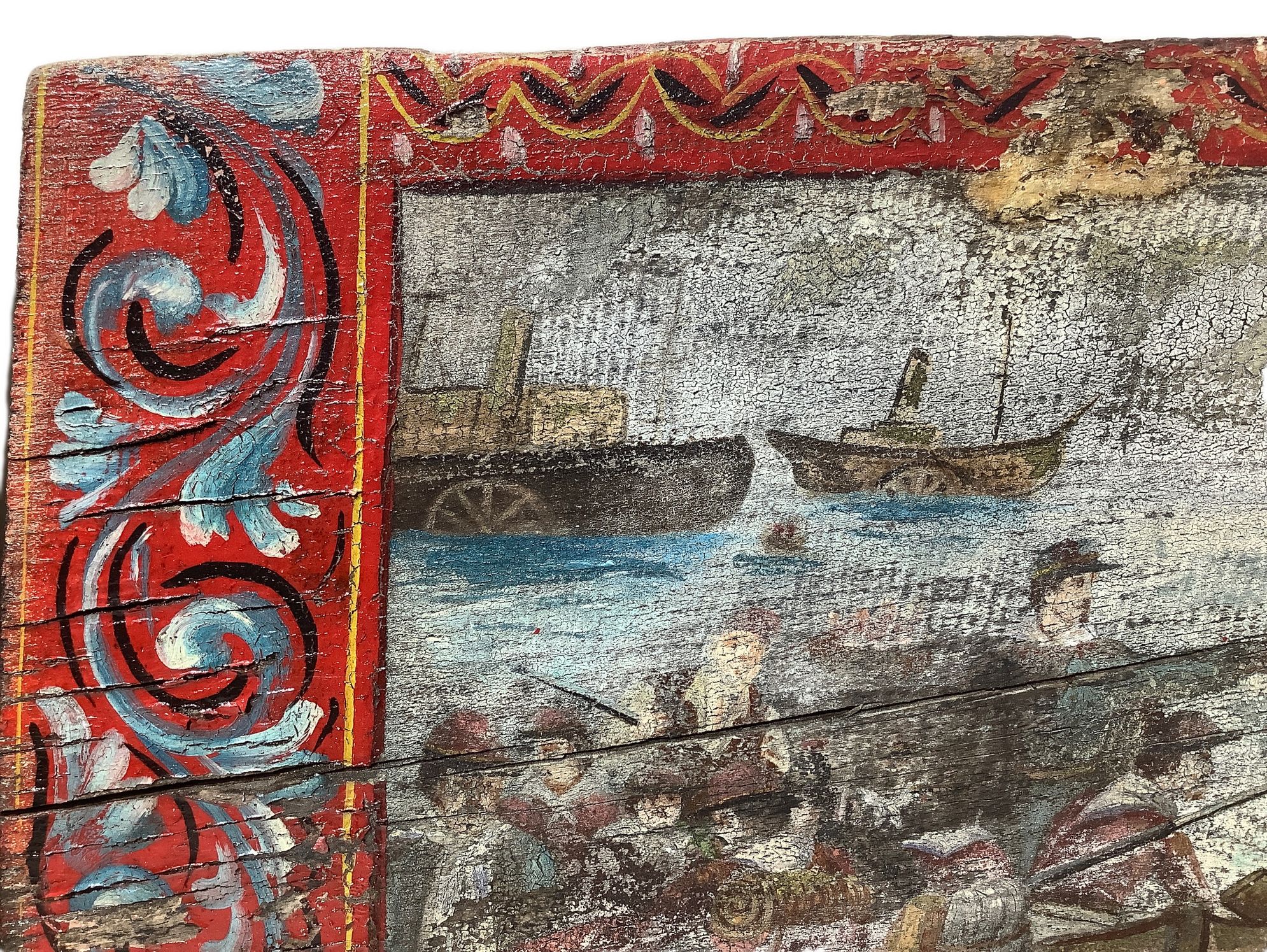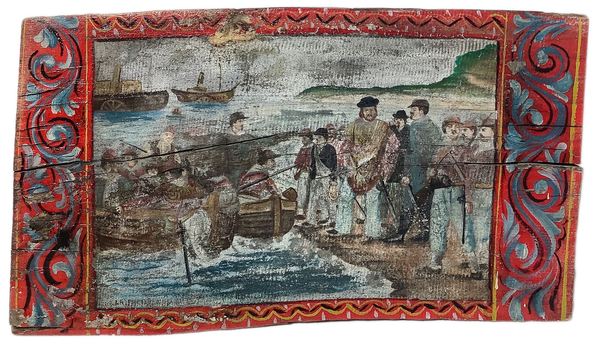 Tavola raffigurante sbarco di Garibaldi in Sicilia con i Mille, fine del XIX secolo, inizi XX secolo, Sicilia. Cm 41x66x6