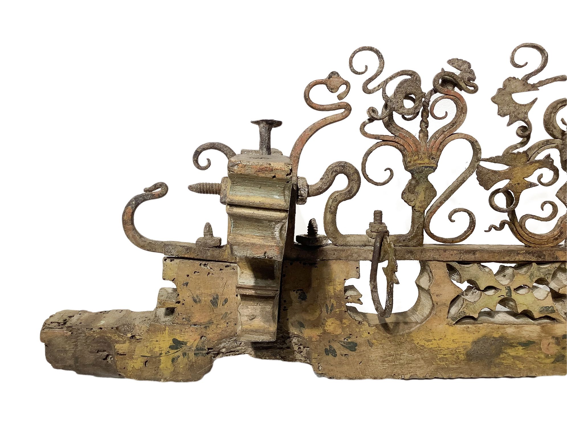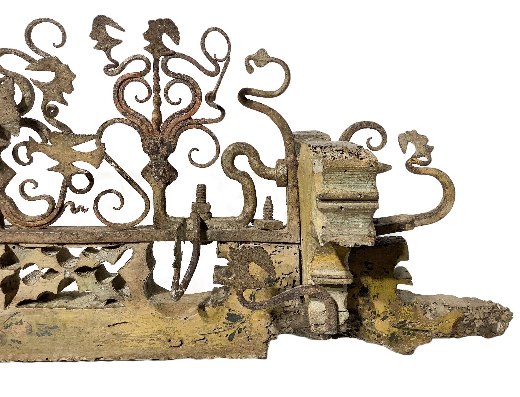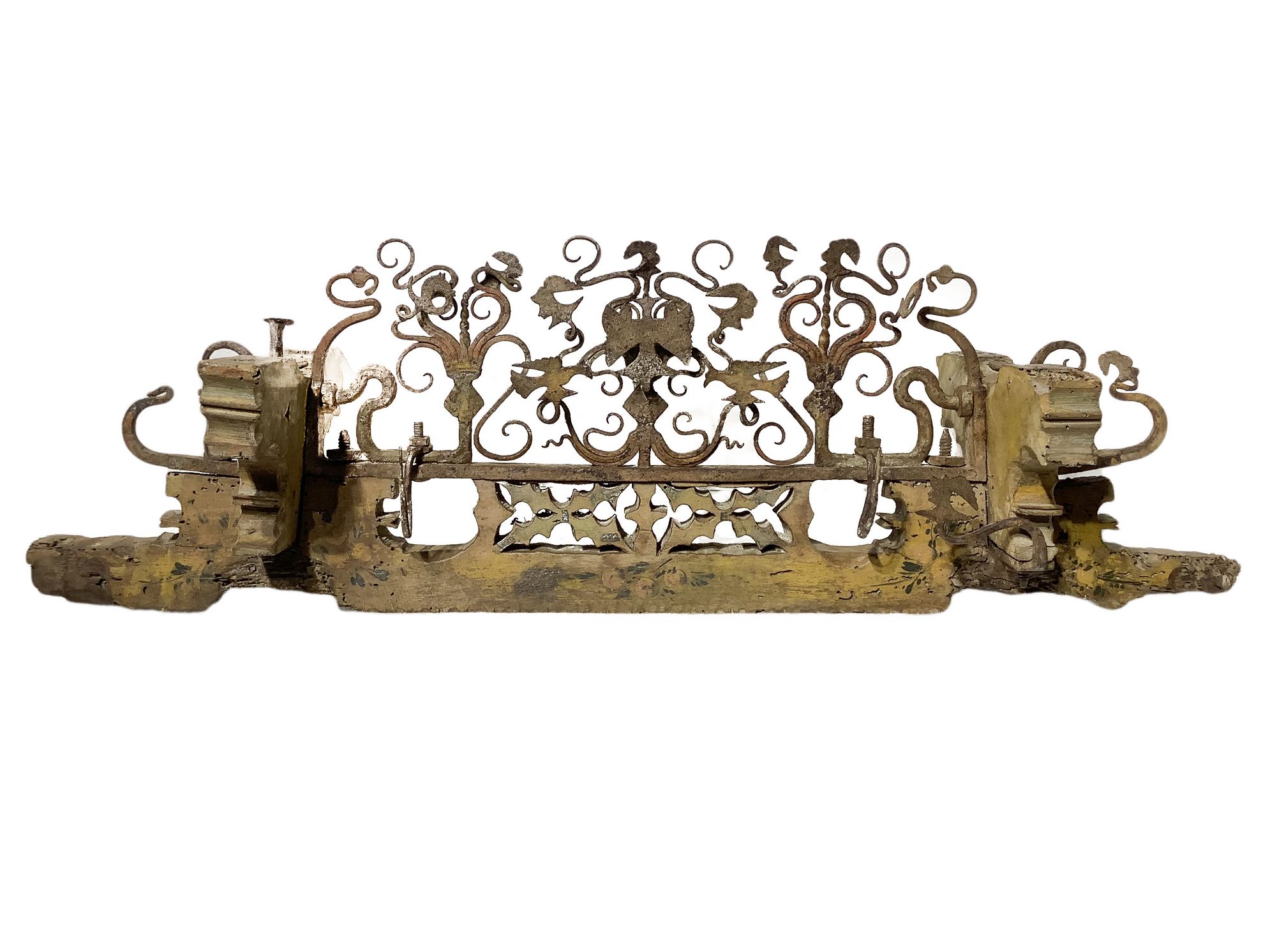 Cascia di fuso in legno e ferro scolpiti, ornamento del sottocassone del...