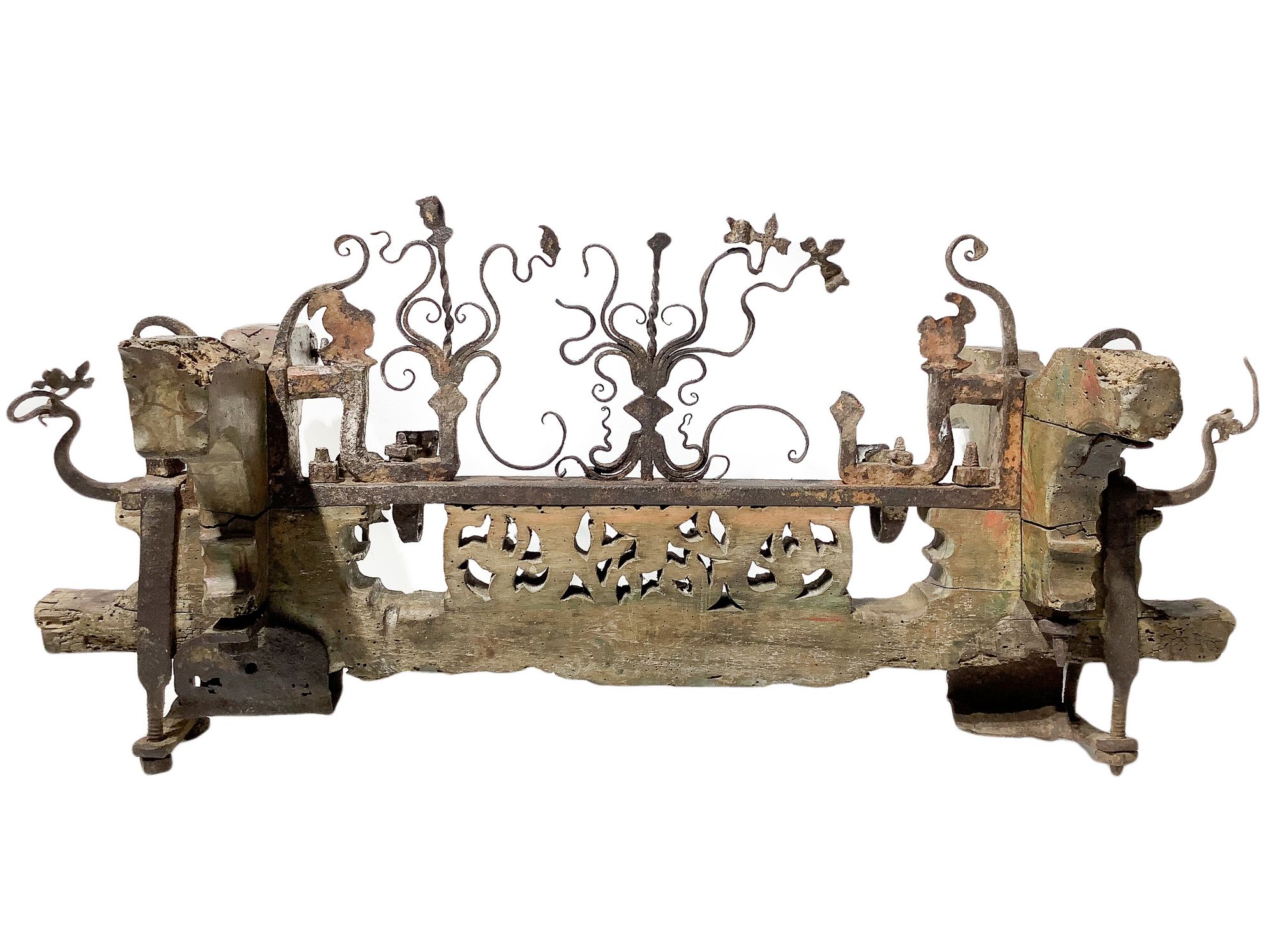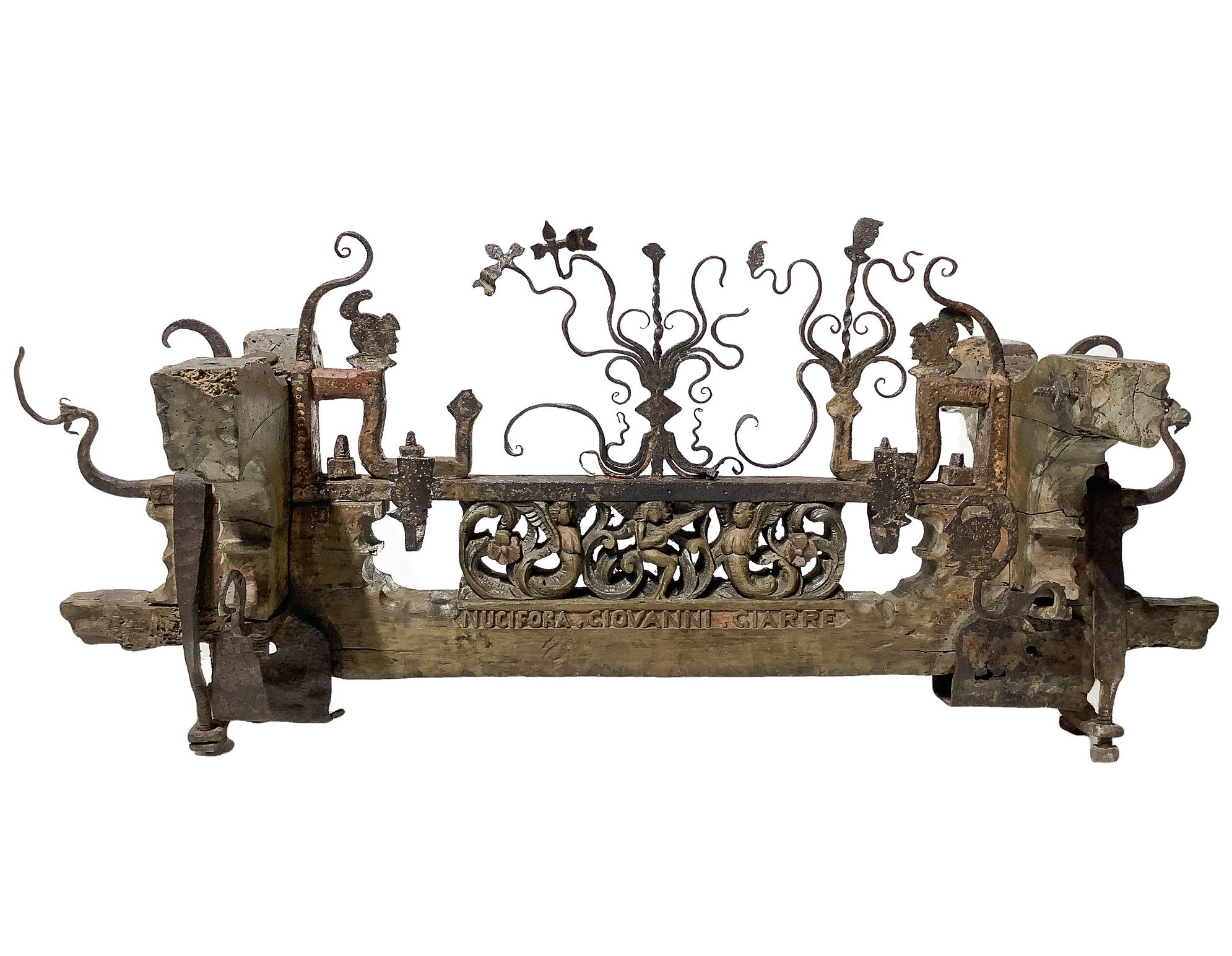 Cascia di fuso in legno e ferro scolpiti, ornamento del sottocassone del...