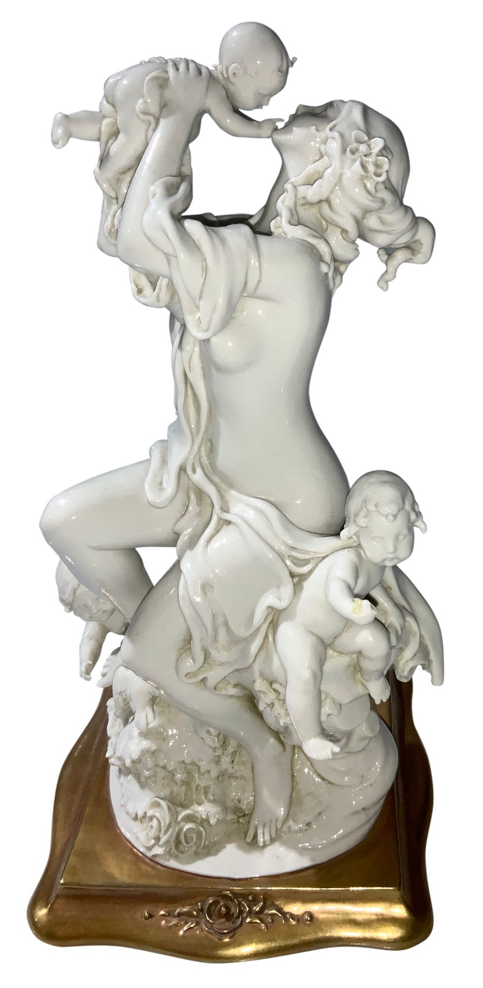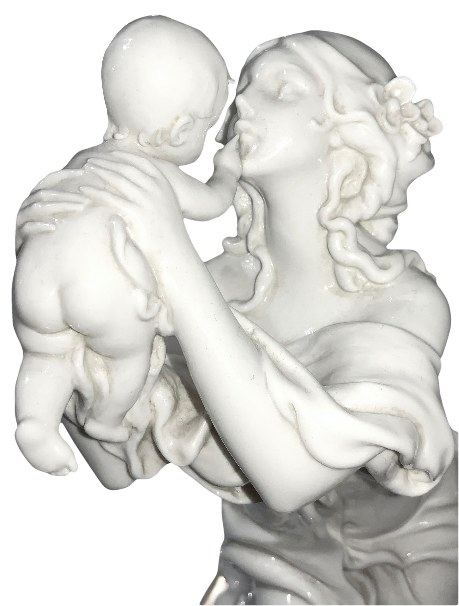 Statuetta in porcellana di colore bianco, base in colore oro, Maternità. H Cm...