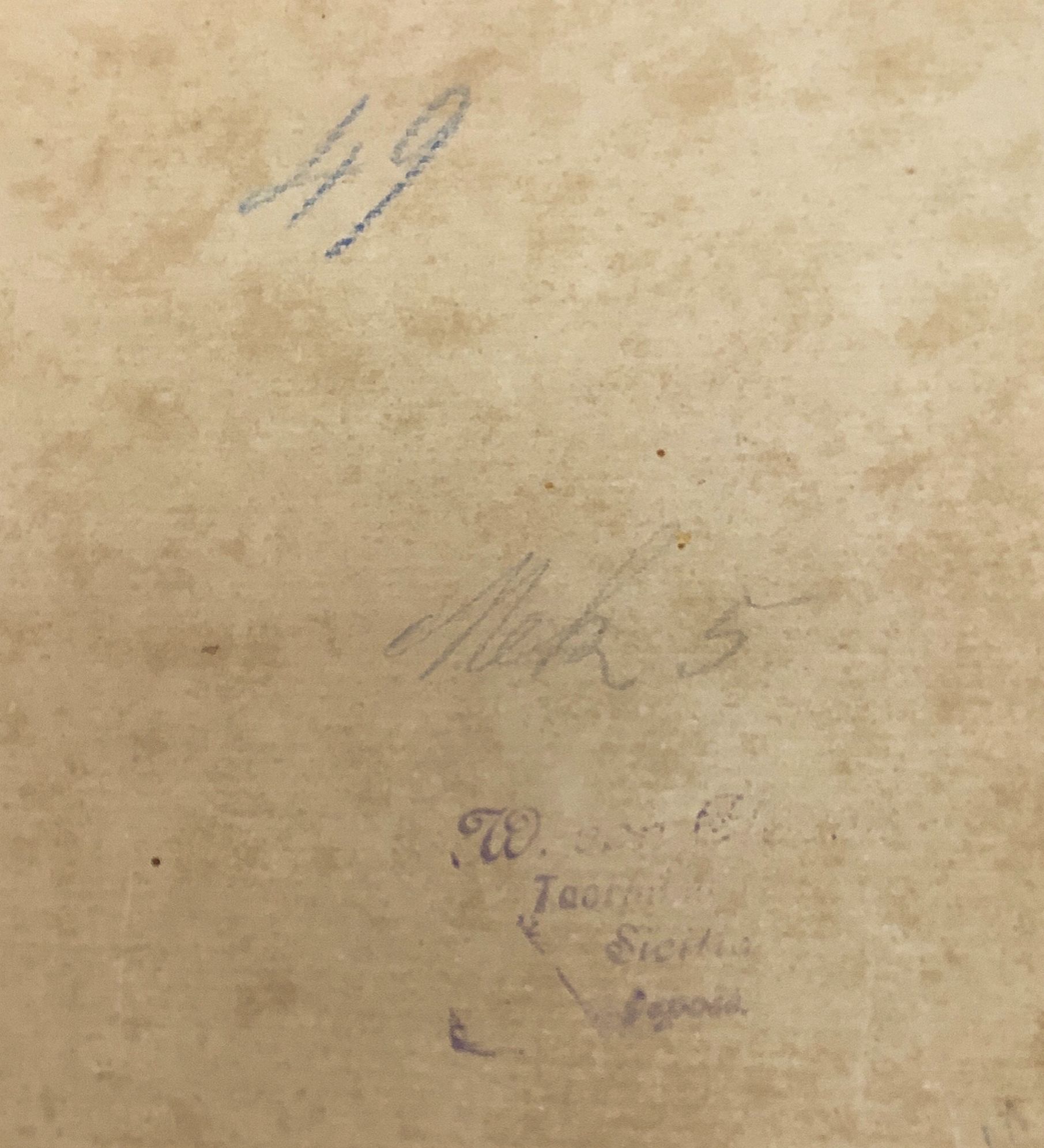 Numerata “49” e timbrata al verso. Macchie di foxing al verso, Cm 39 x 26.