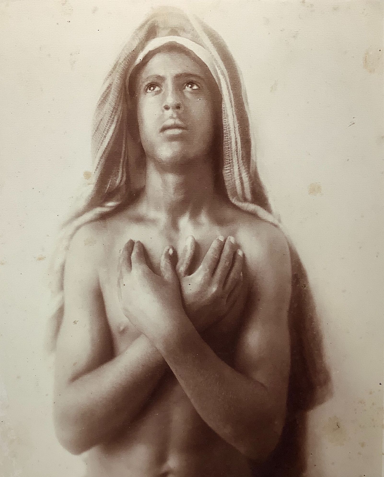 Wilhelm von Gloeden (1856-1931), fotoincisione su carta giapponese montata su cartoncino raffigurante “Elegie” c. 1900