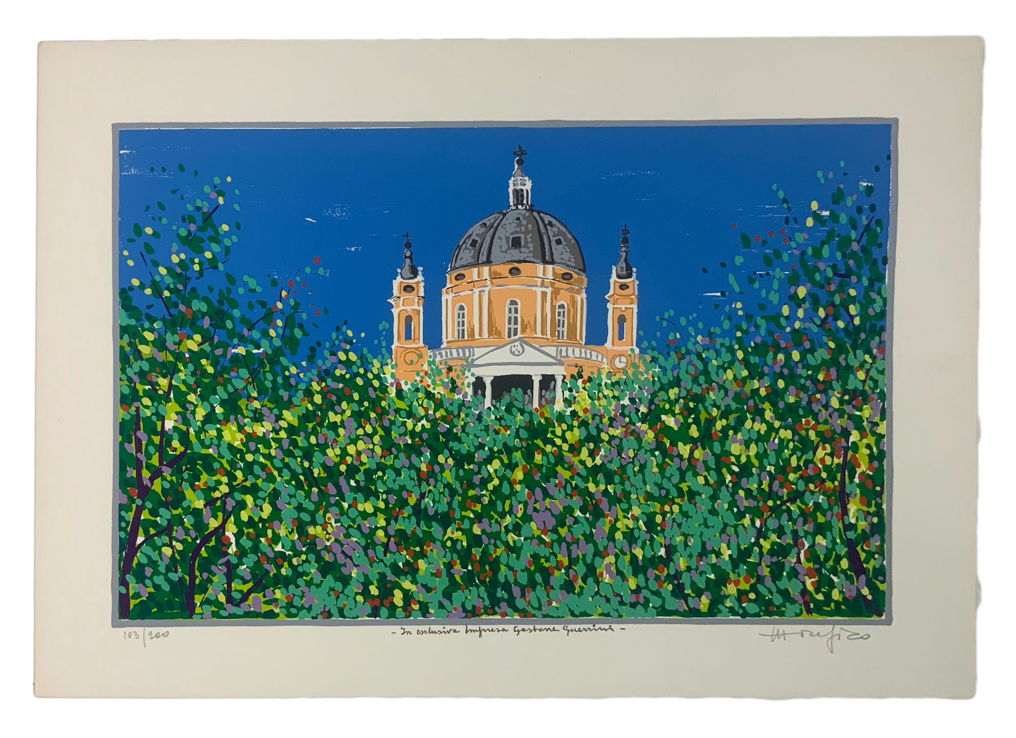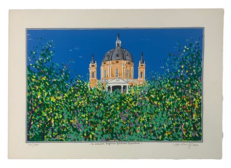 Serigrafia della Basilica di Superga di Ettore Fico (1917). A 15 colori, firmata a mano. Cm 50x70