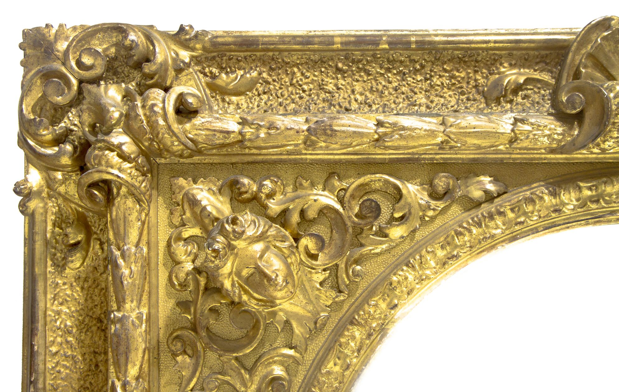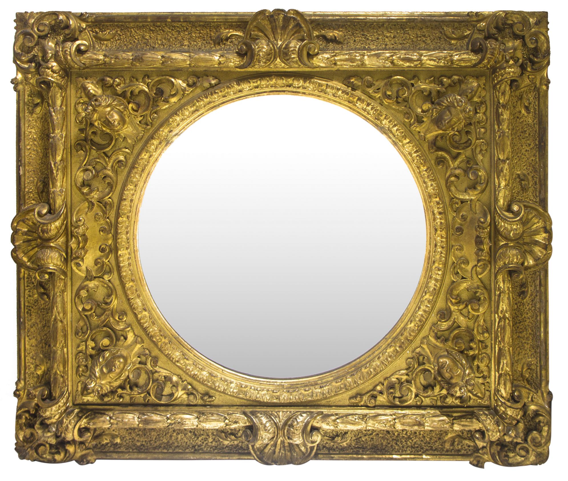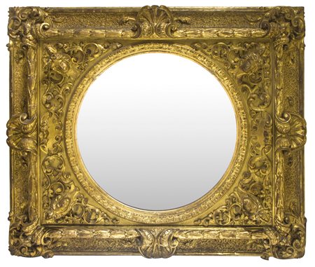 Specchiera con cornice dorata del XIX Secolo. Doratura a foglia oro. Cm 114x135