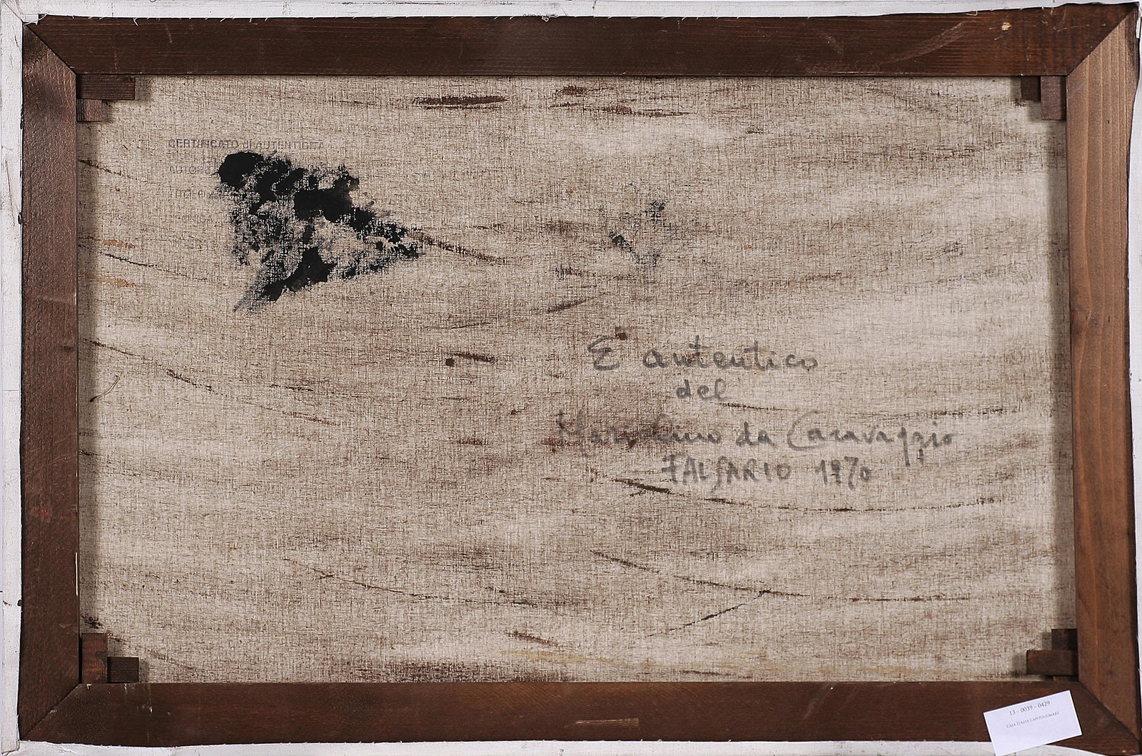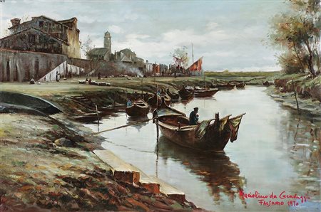 DA CARAVAGGIO MARIOLINO DETTO IL FALSARIO (1924 - 1992) Senza titolo. 1970. Olio su tela. Cm 90,00 x 60,00 x 2,00. Firma e data in basso a destra. Al retro firma per autentica e data.