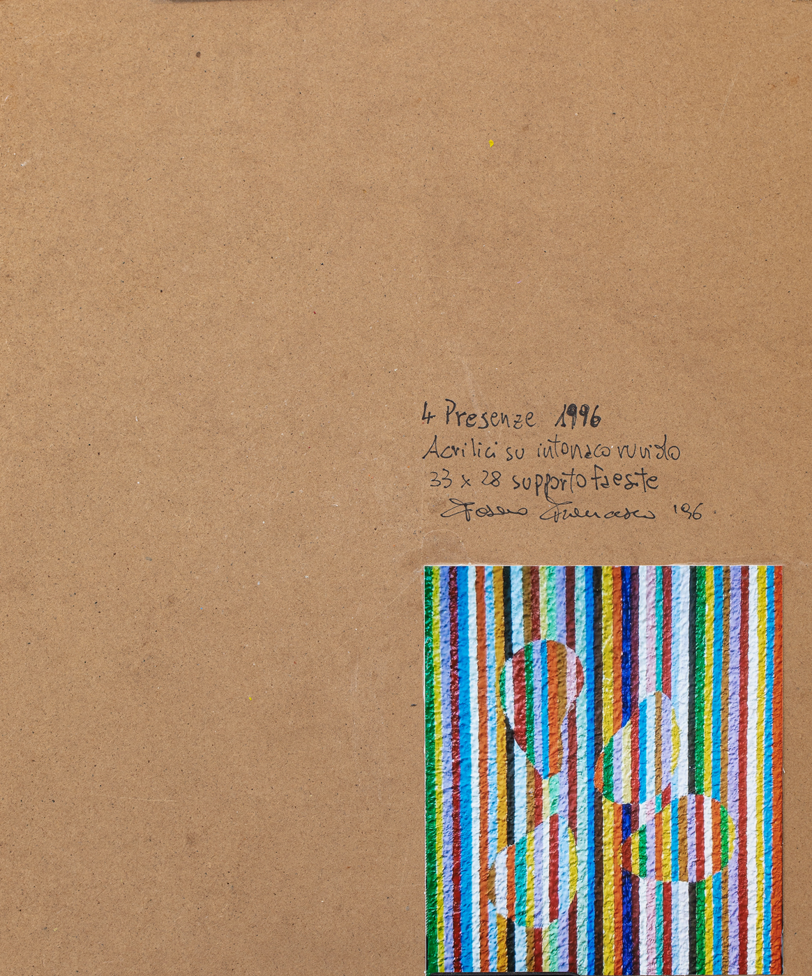 Firma, titolo, tecnica, datazione e misure al retro