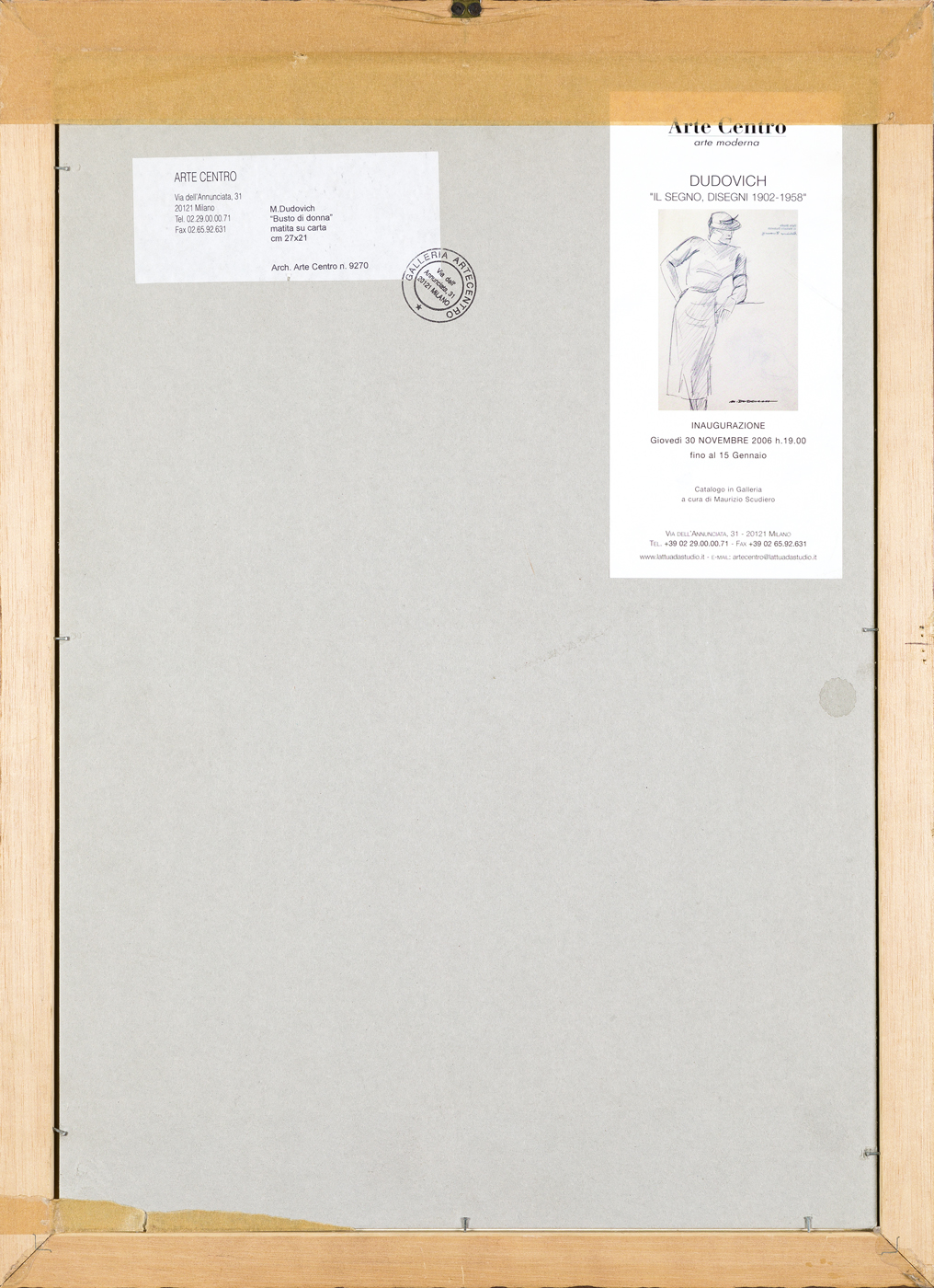 Etichetta e timbro della Galleria Arte Centro (MI) al retro