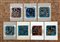 Lotto unico di 7 tecniche miste su tela non intelaiata, una delle quali recante firma al fronte