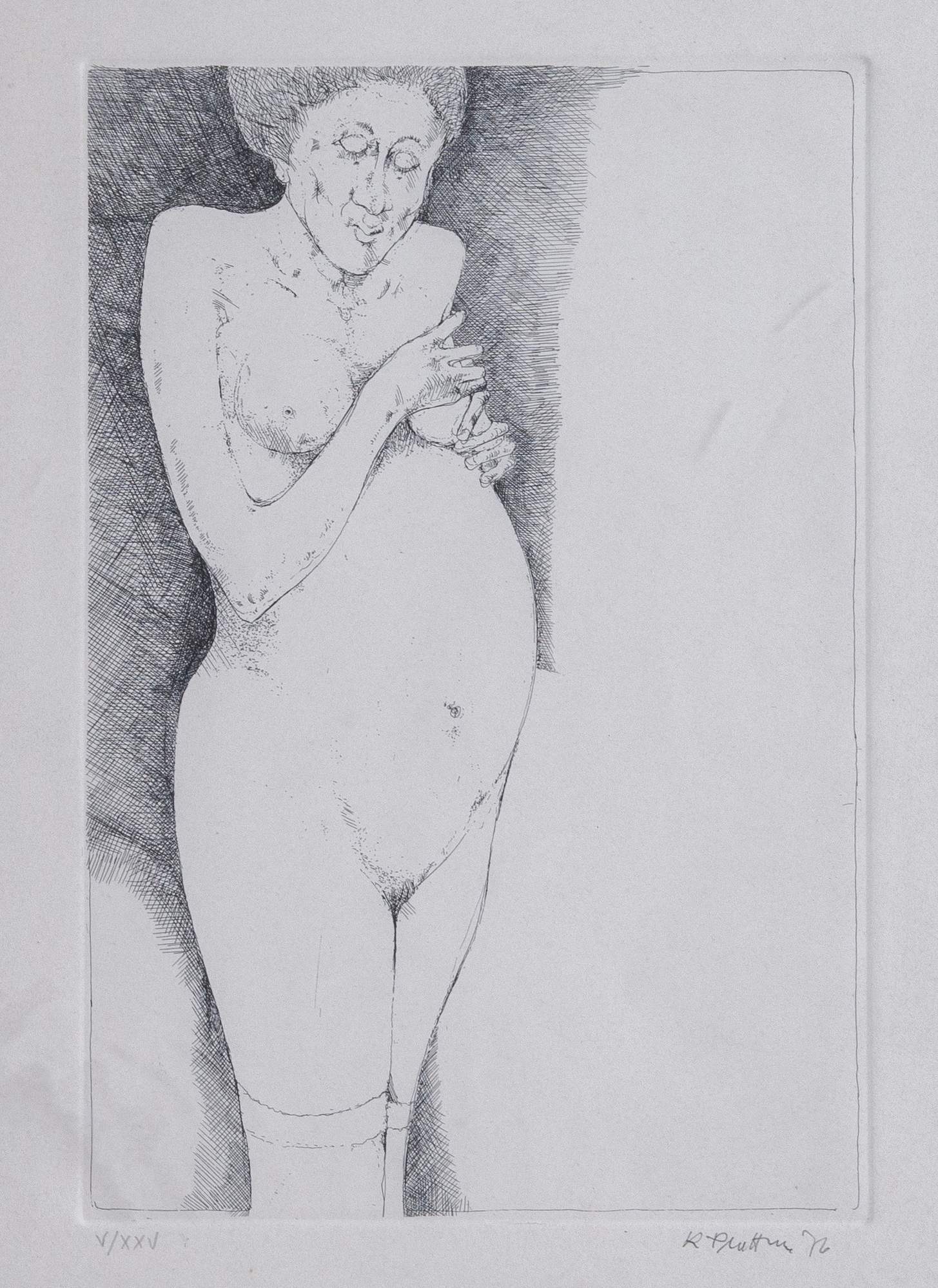 KARL PLATTNER (Malles Venosta 1919 – Milano 1986) “Figura”, 1976. Incisione ad acquaforte su carta. Lastra: cm 29x19. Foglio: cm 50x35. Opera firmata e datata in basso a destra K. Plattner '76. Reca numeri di tiratura in basso a sinistra V/XXV.