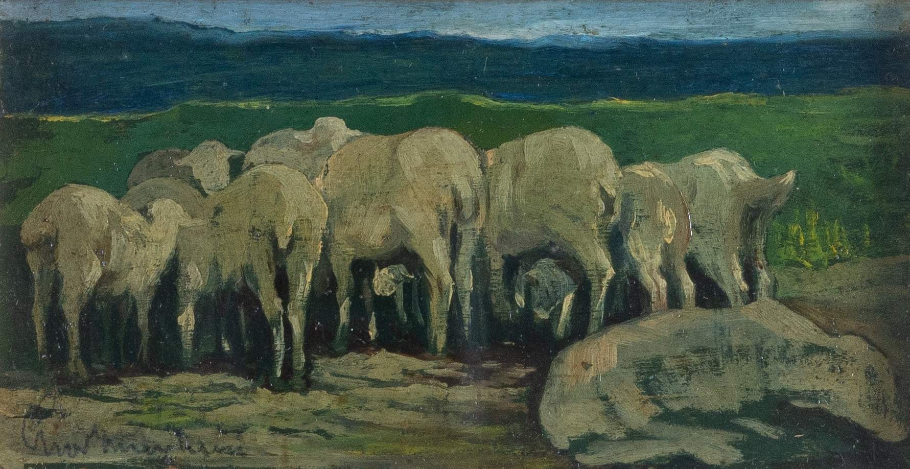 Lotto 37 | GIOVANNI MARCHINI (Forlì 1877 – 1946) “Studio di pecore”, 1903. Olio su...